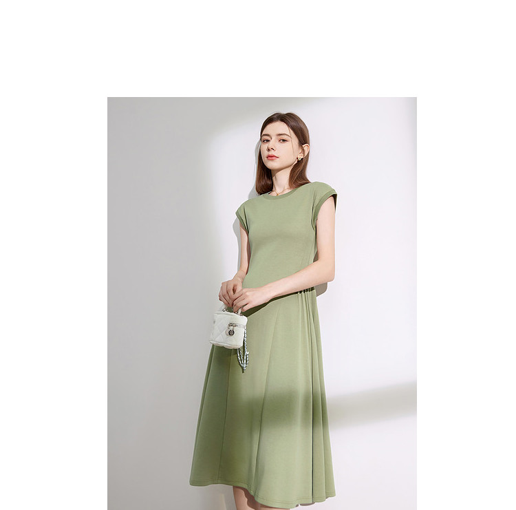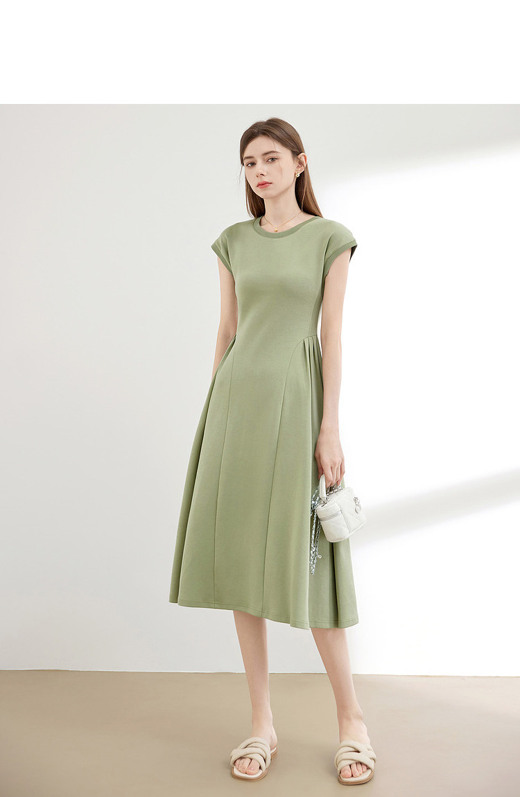 【2024夏季】气质通勤薄款针织连衣T恤裙女圆领收腰裙子 963604