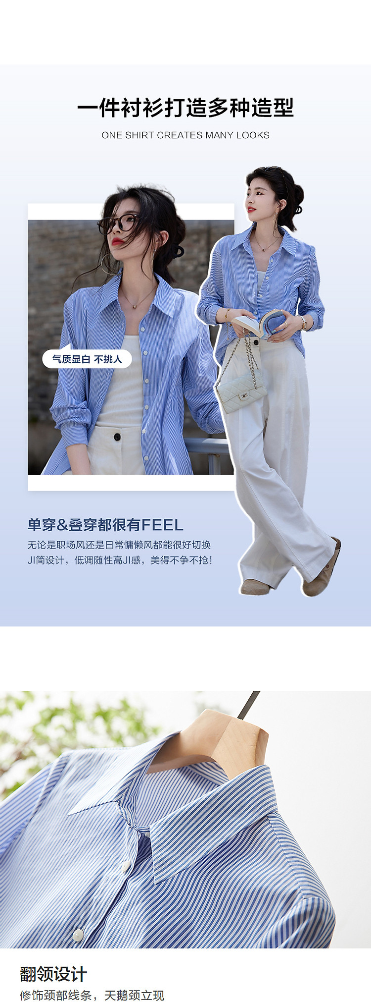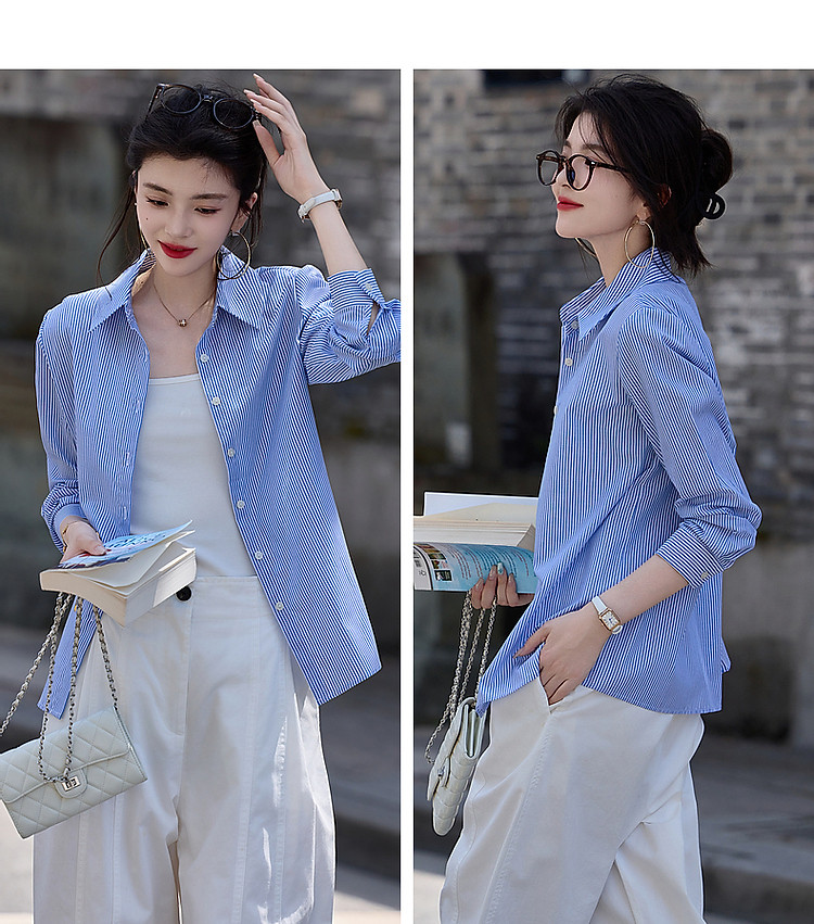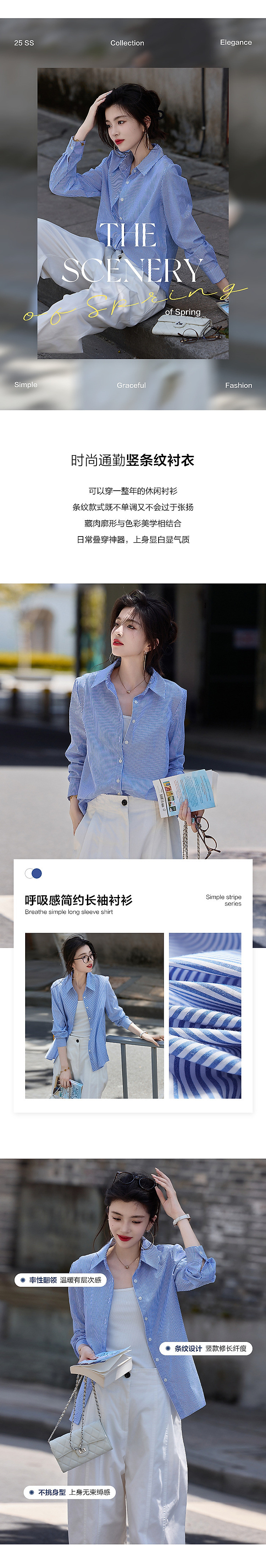 商品名称:【职场艺术收藏家】春秋呼吸感简约翻领衬衫长袖合体衬衣女装上衣 585089