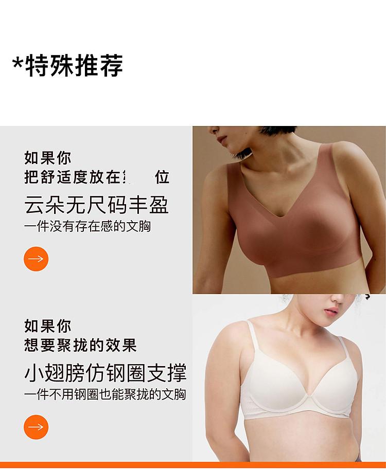 商品名称:NEIWAI内外橙标|零敏丰盈文胸轻薄支撑细肩带内衣舒适贴合 463562