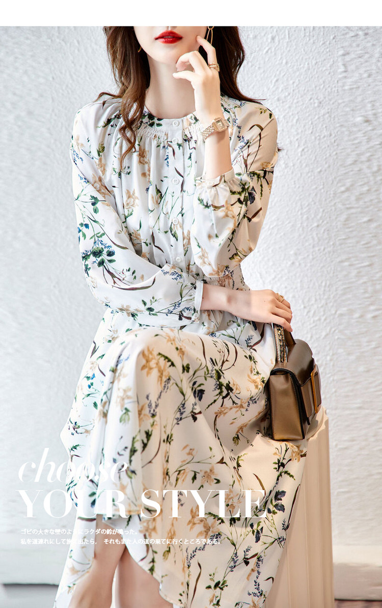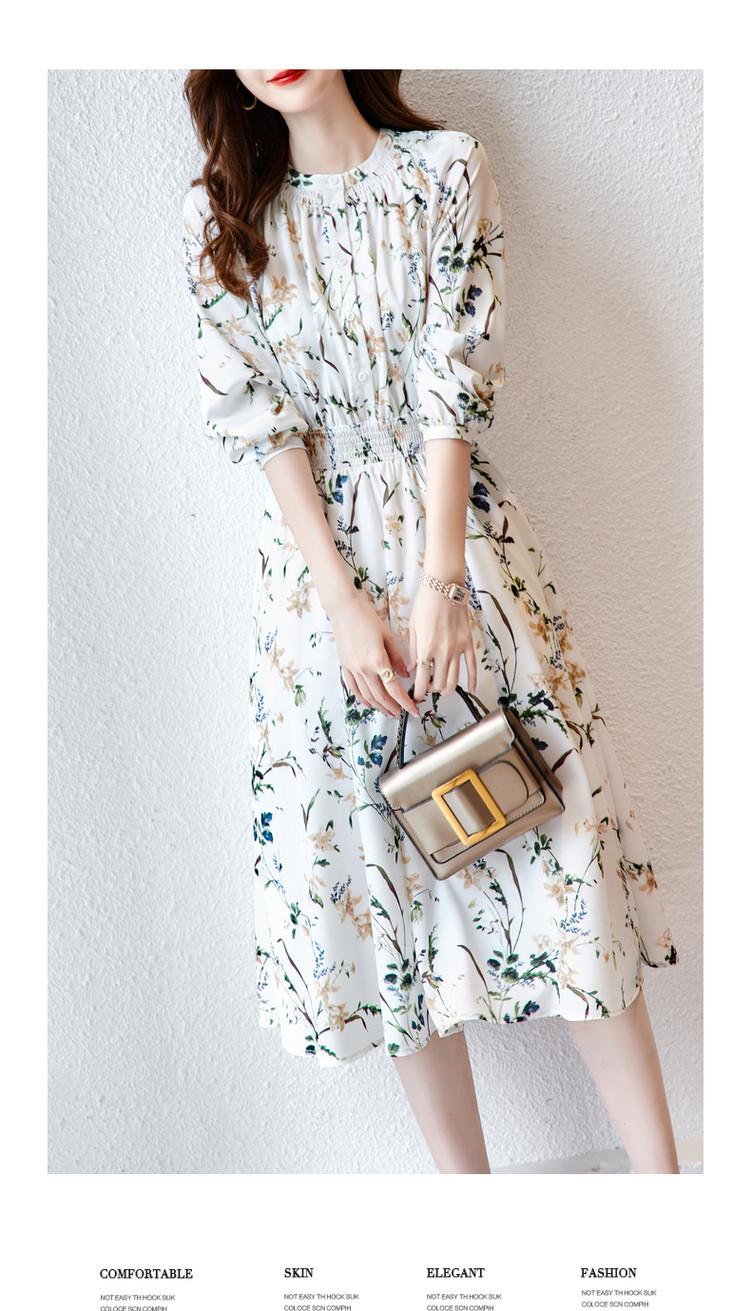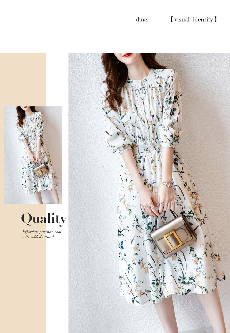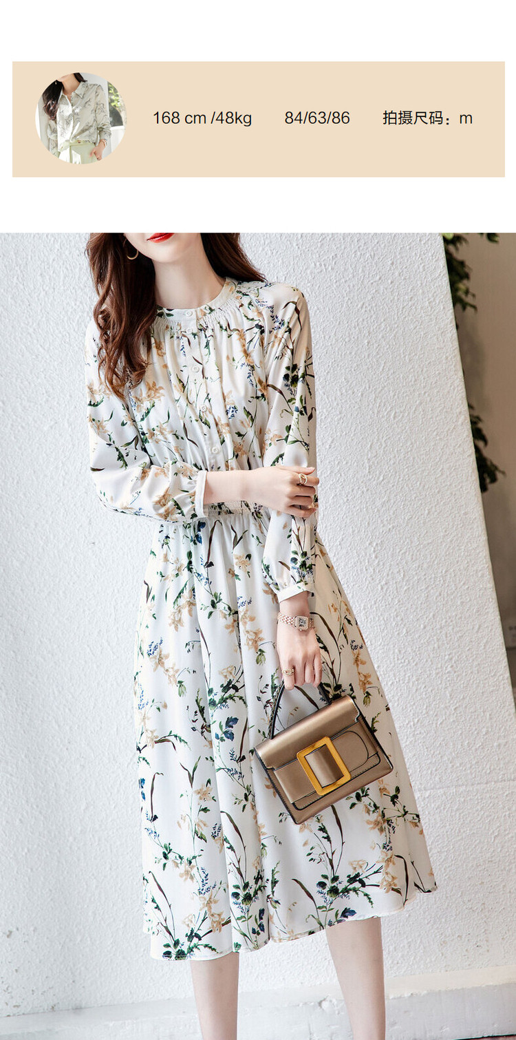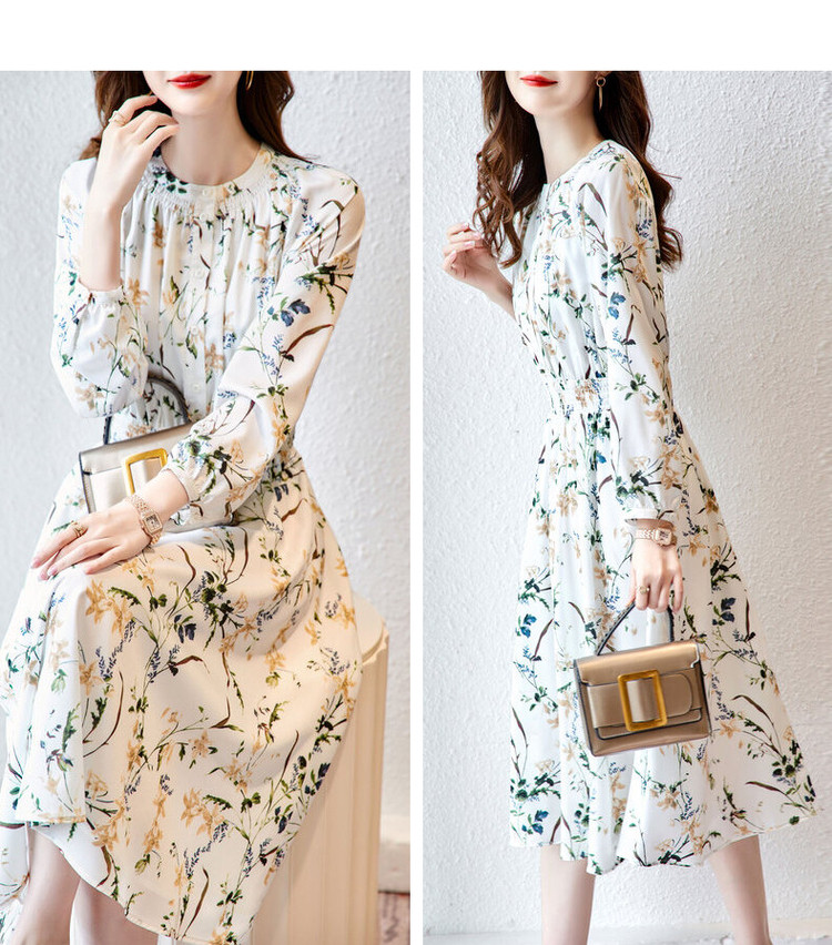 商品名称:【印花连衣裙】春秋圆领收腰长袖印花连衣裙女春秋 797441
