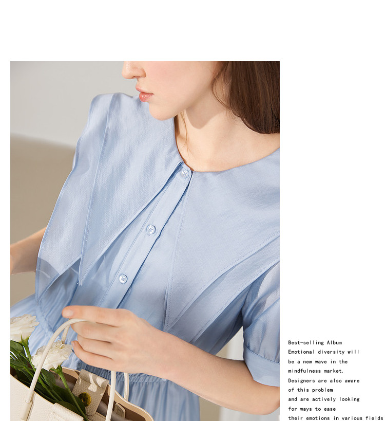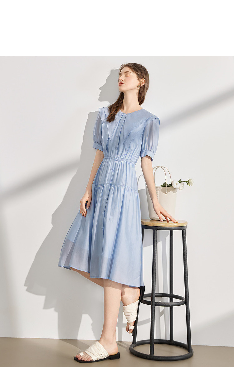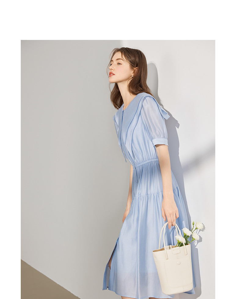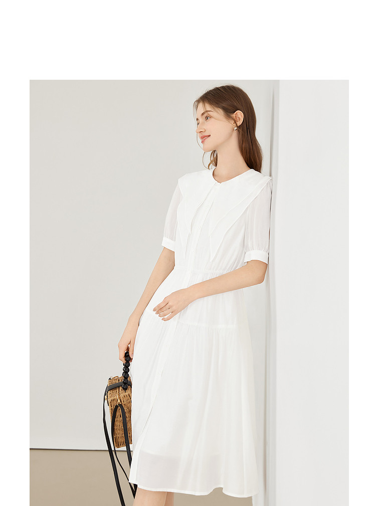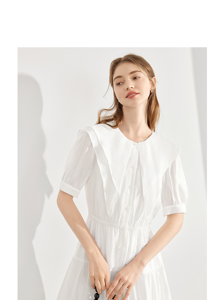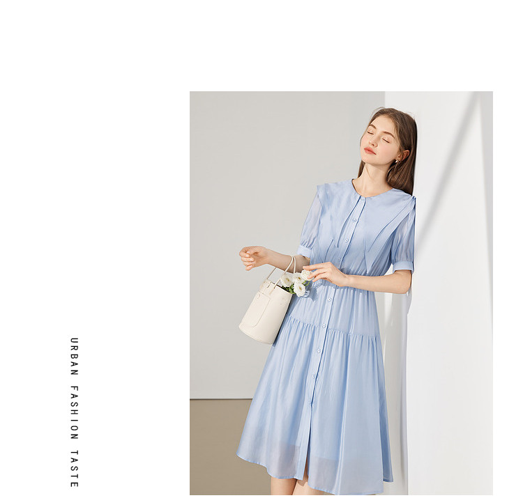 商品名称:【2024夏季】简约大翻领气质通勤收腰短袖连衣裙纽扣裙子女 866836