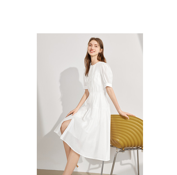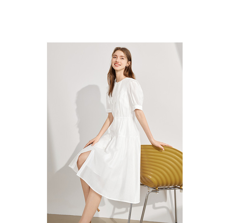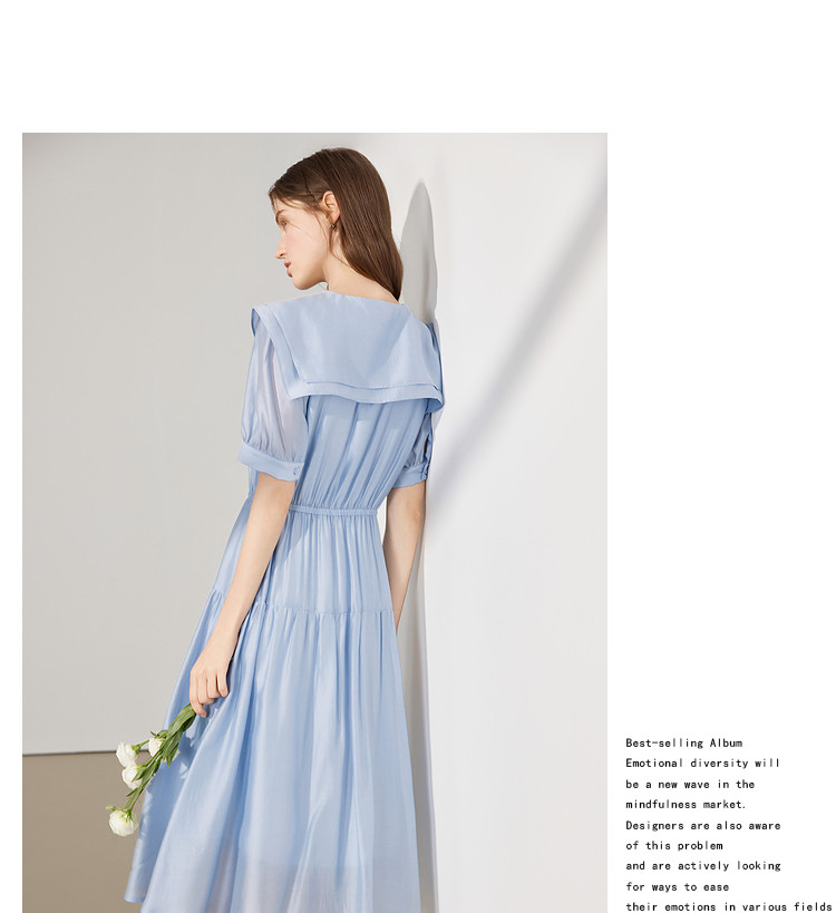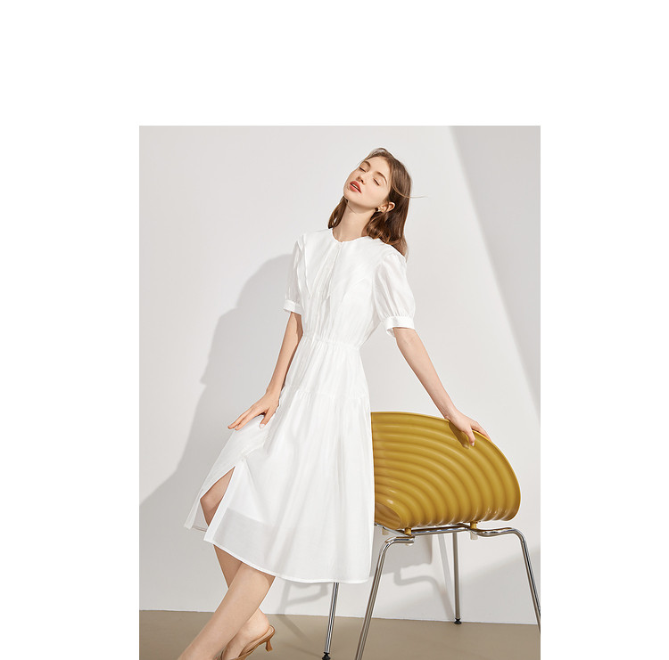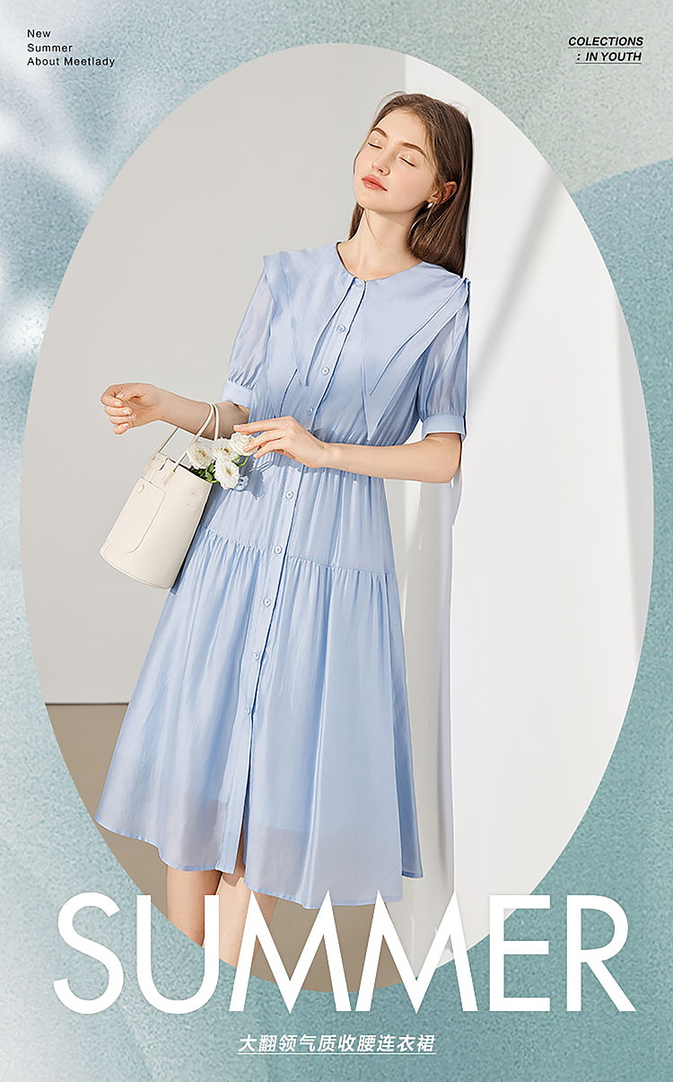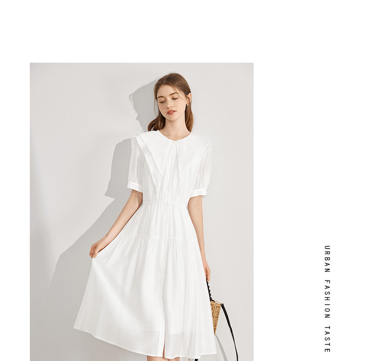 商品名称:【2024夏季】简约大翻领气质通勤收腰短袖连衣裙纽扣裙子女 866836