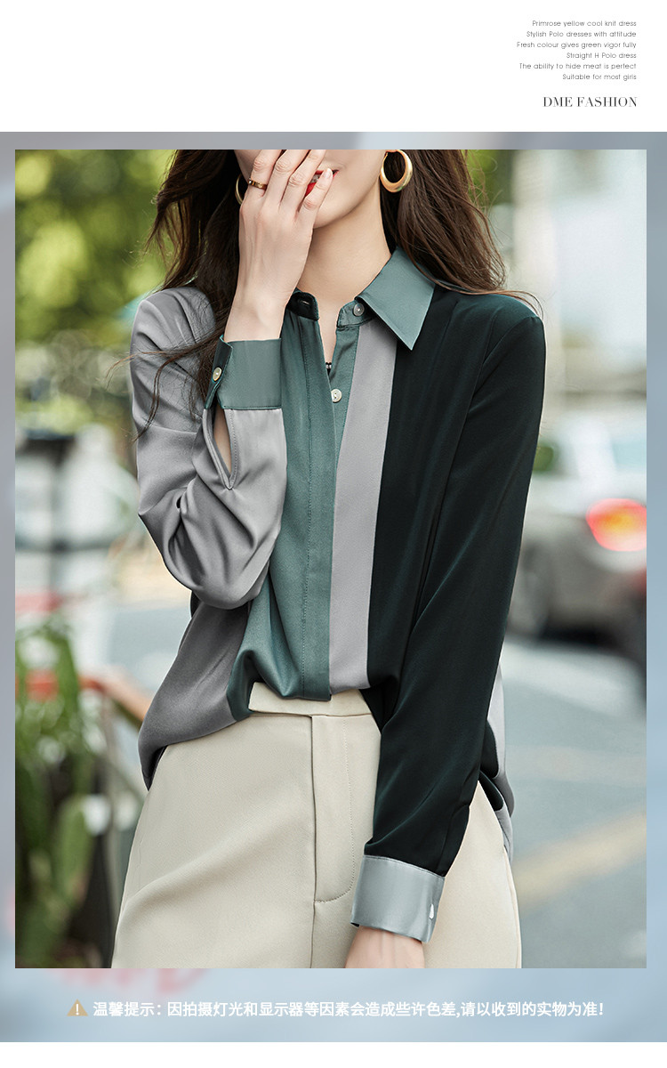 商品名称:【缎面雪纺衬衫】秋款直筒长袖几何印花拼色衬衣女装上衣 057217