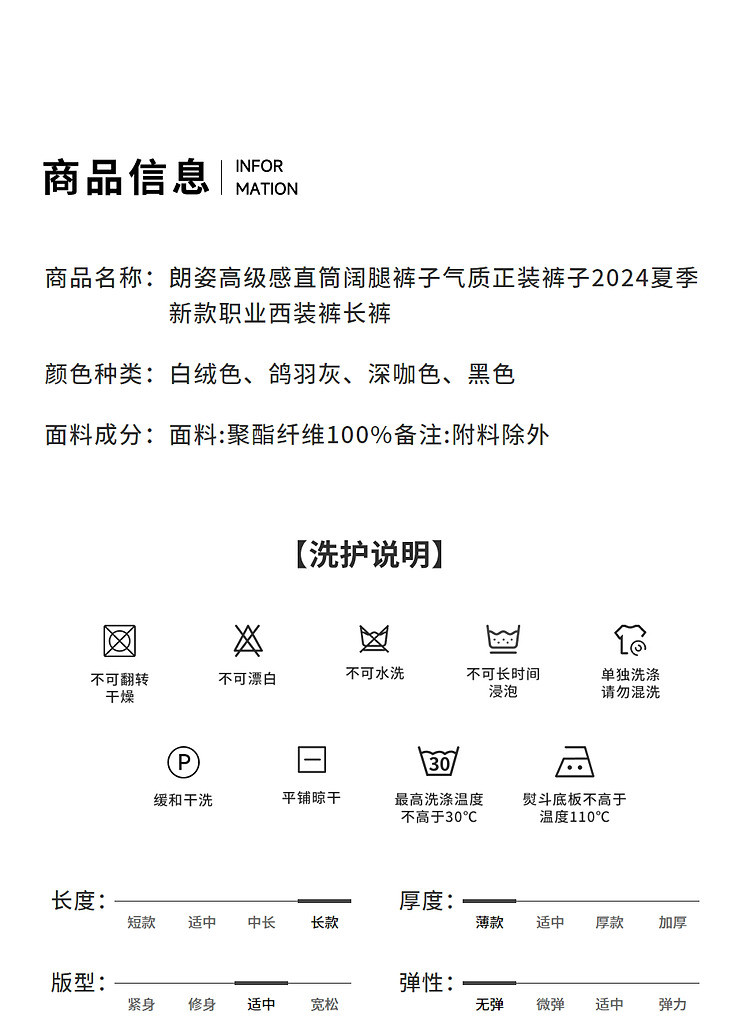 商品名称:高级感直筒阔腿裤子气质正装裤子夏季职业西装裤 111449