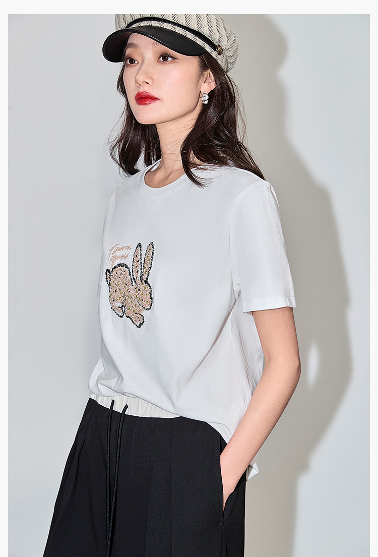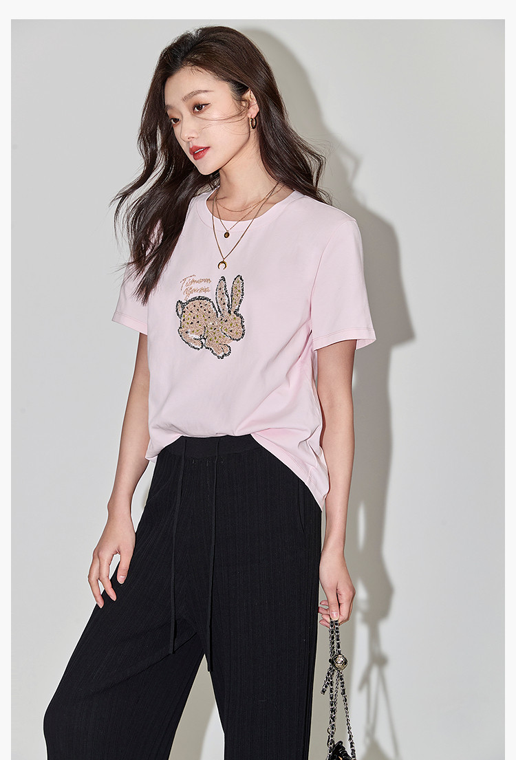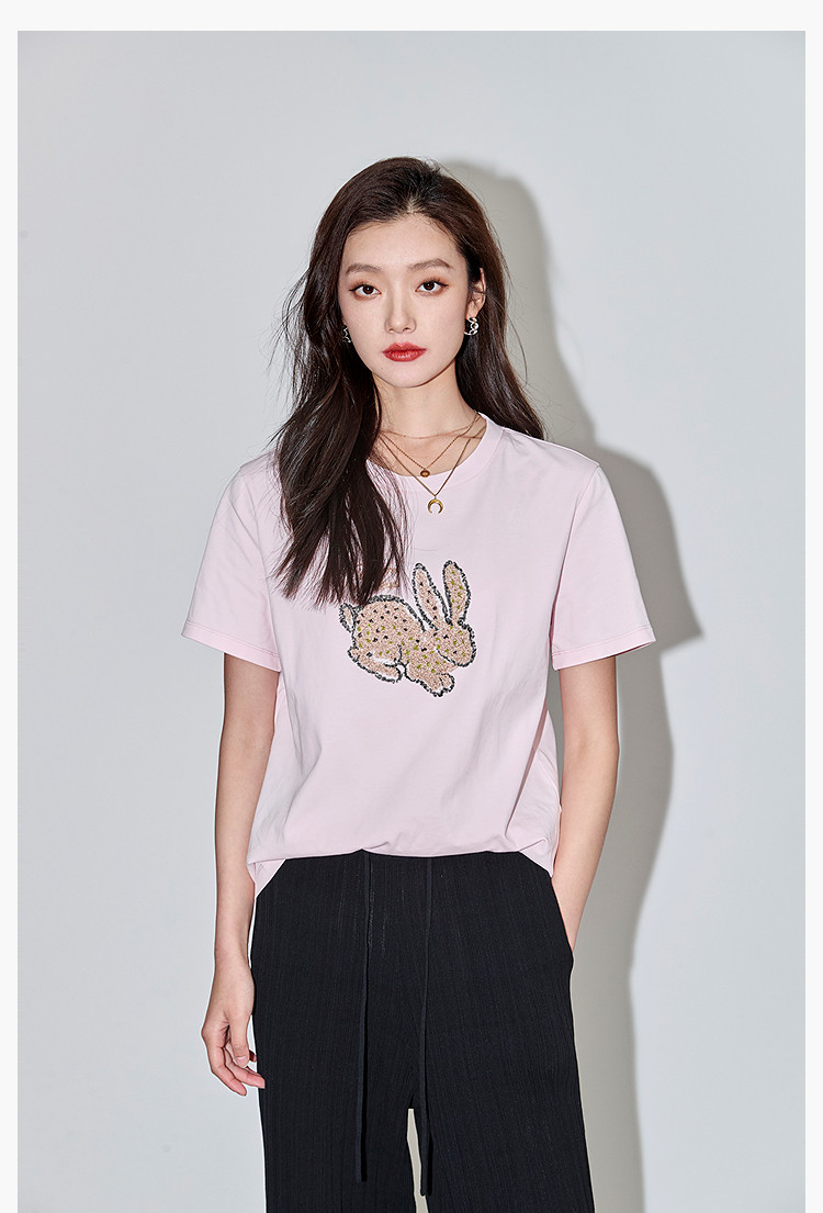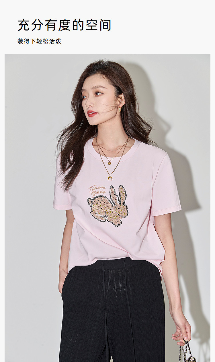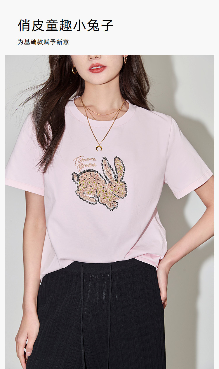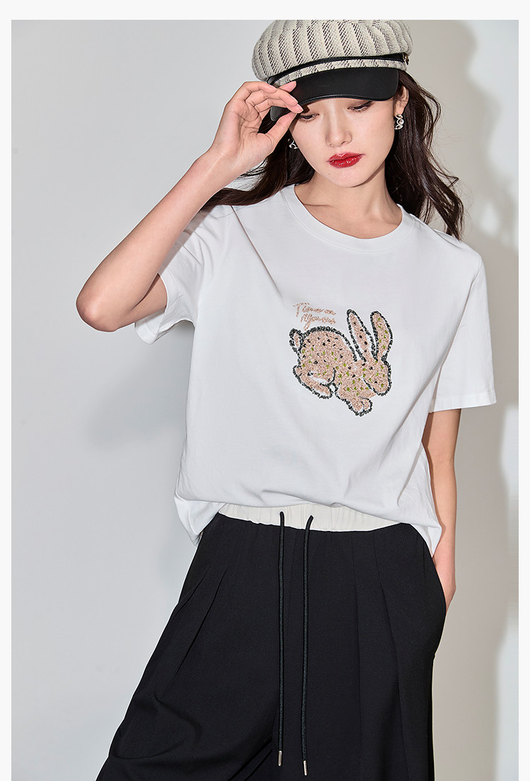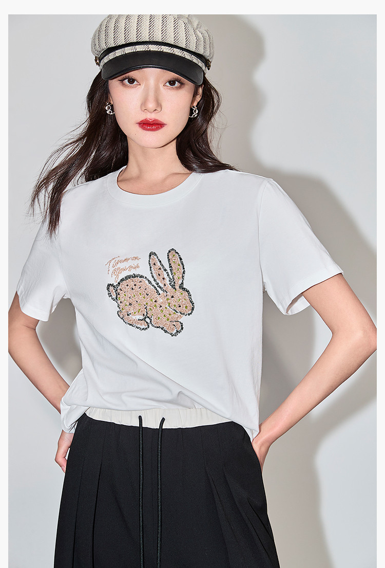 商品名称:夏款趣味萌兔时髦运动风休闲百搭舒适全棉宽松短袖t恤上衣女 620507