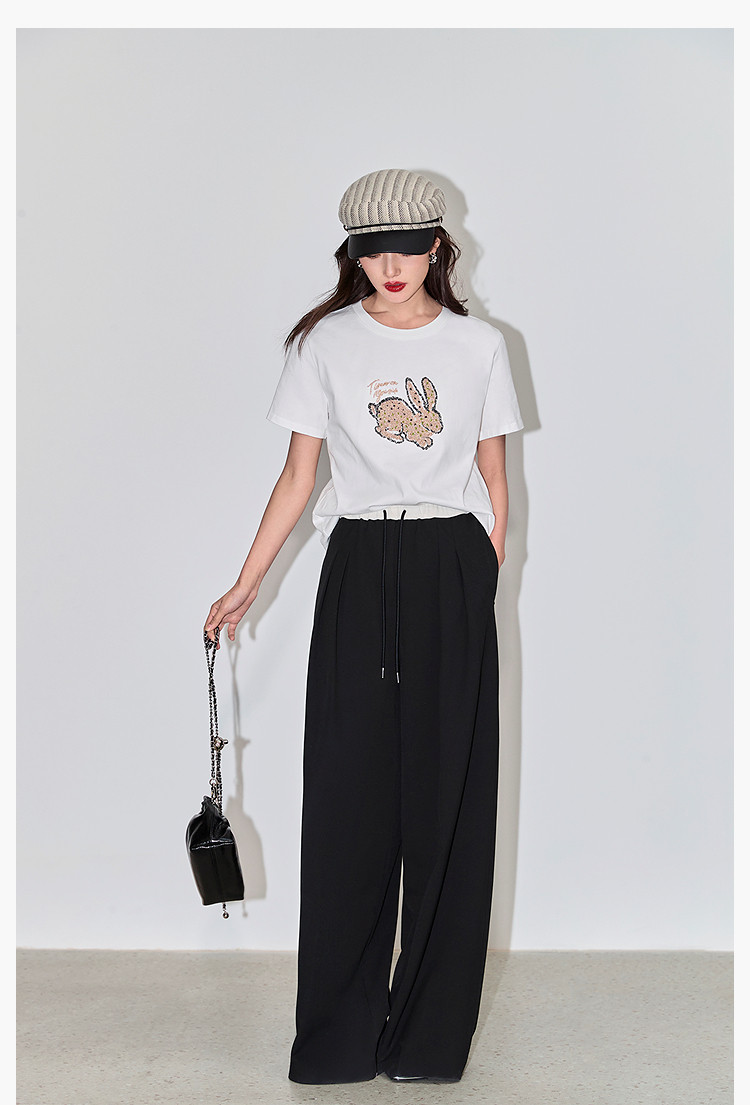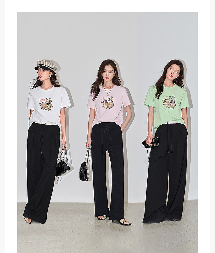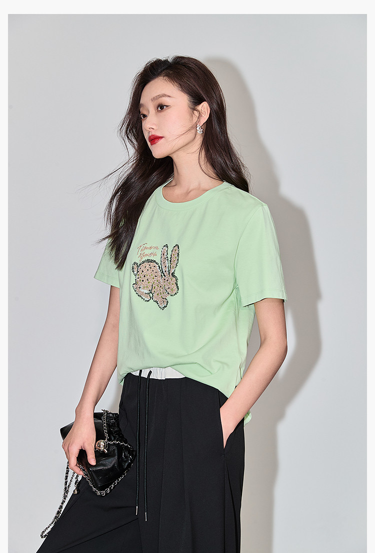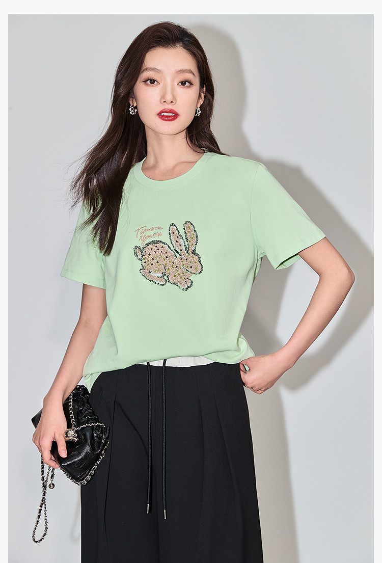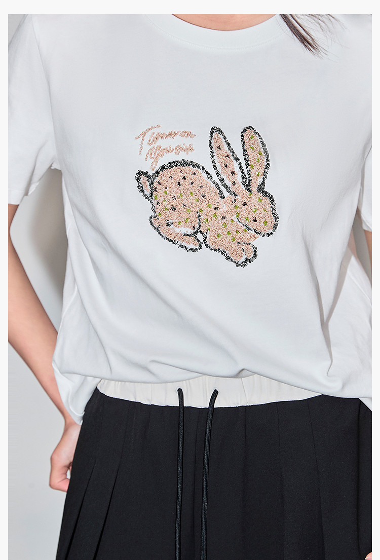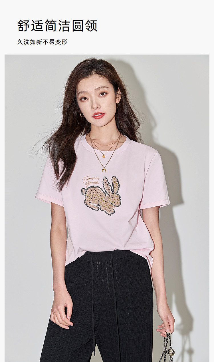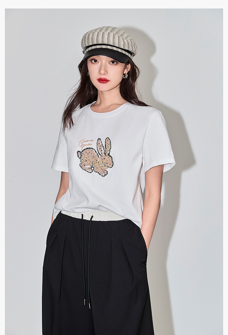 商品名称:夏款趣味萌兔时髦运动风休闲百搭舒适全棉宽松短袖t恤上衣女 620507