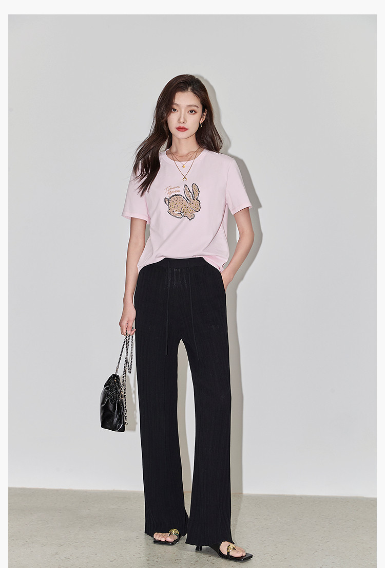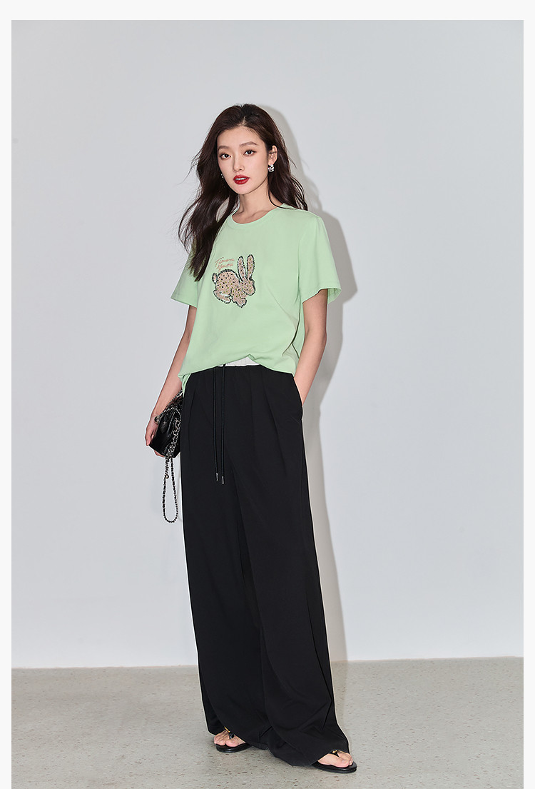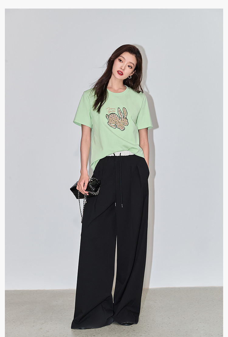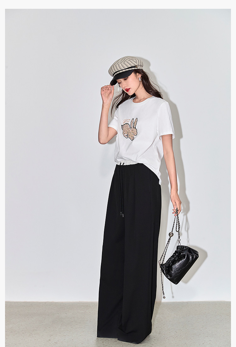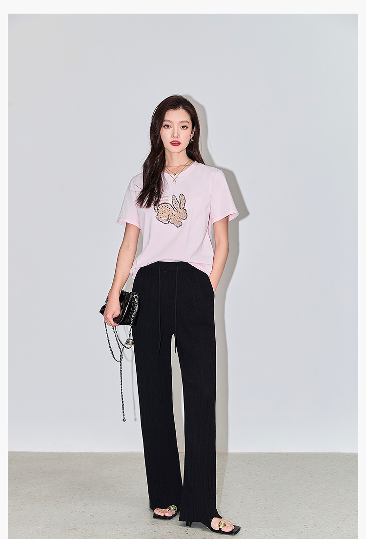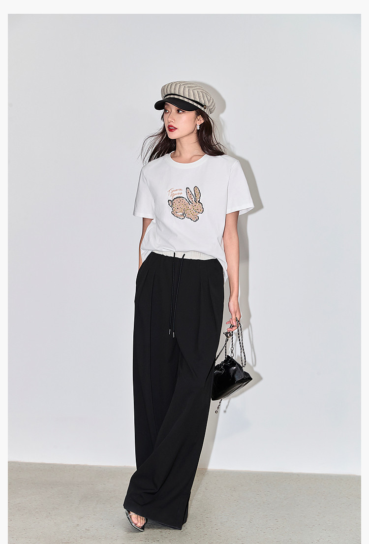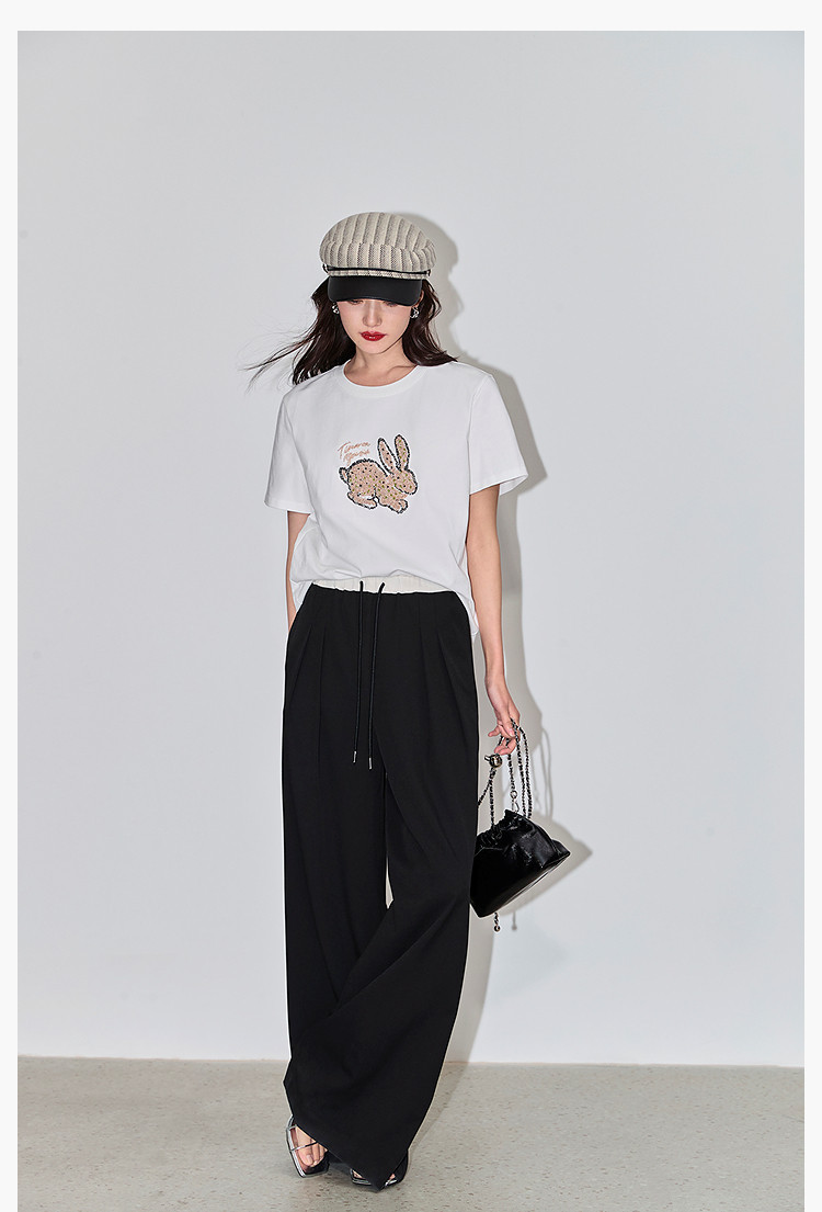 商品名称:夏款趣味萌兔时髦运动风休闲百搭舒适全棉宽松短袖t恤上衣女 620507