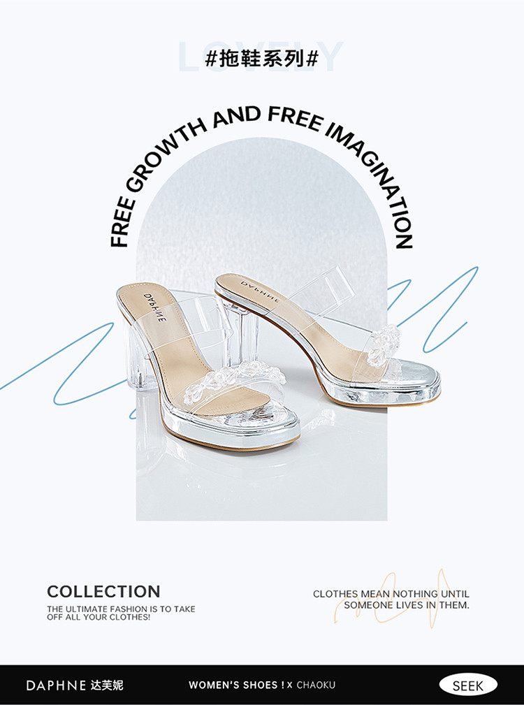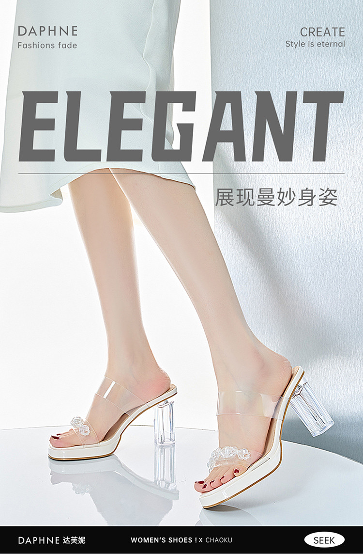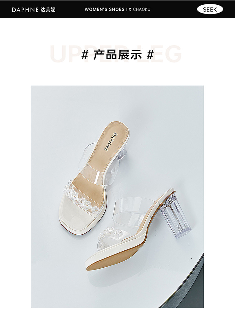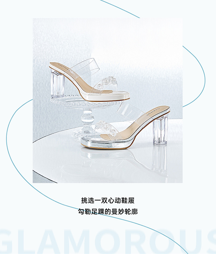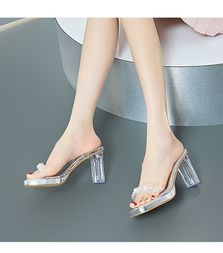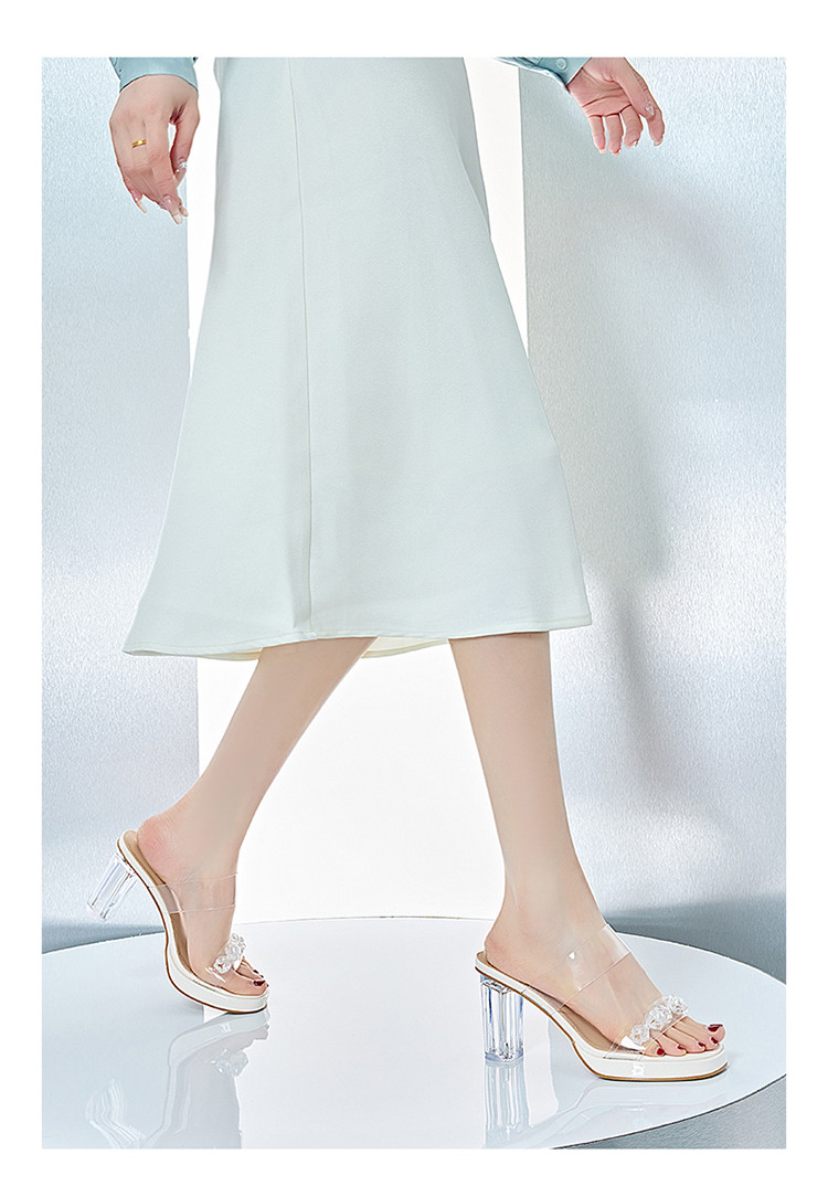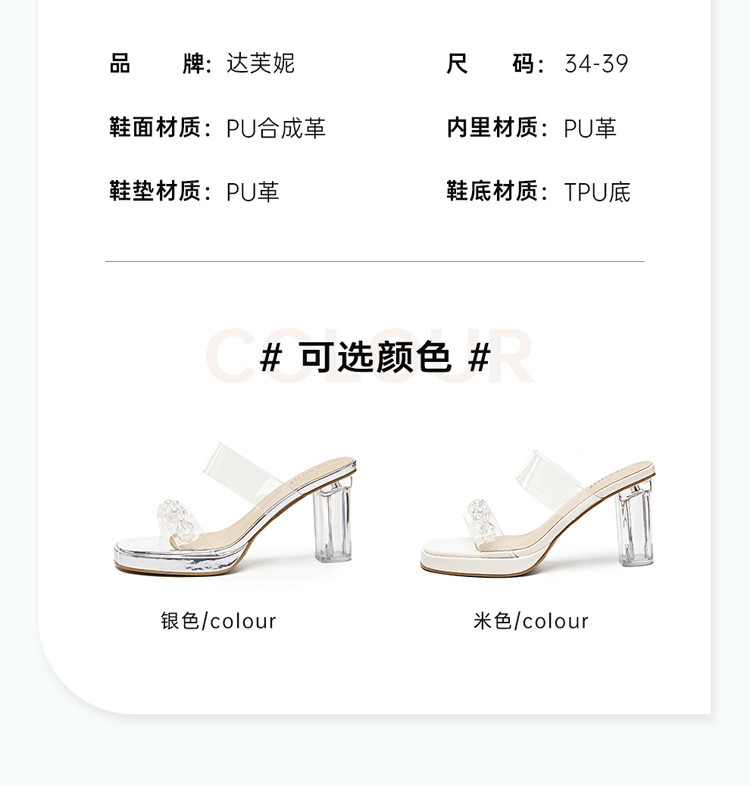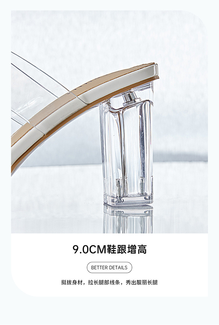 商品名称:【透明鞋跟】夏季粗跟凉鞋百搭一字带拖鞋法式舒适女士凉鞋女鞋 044314