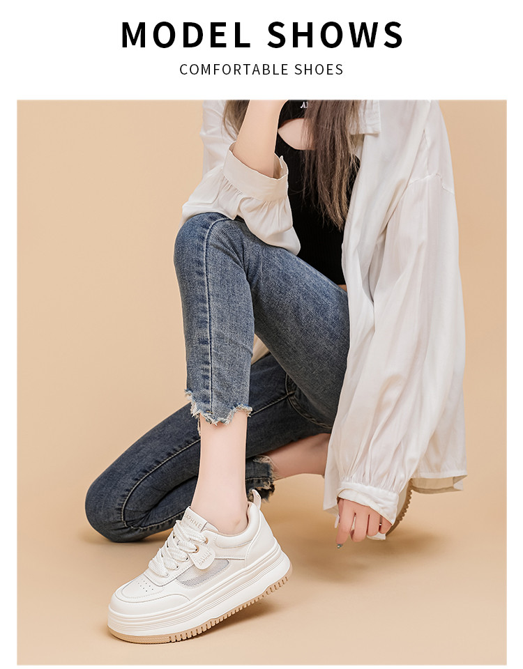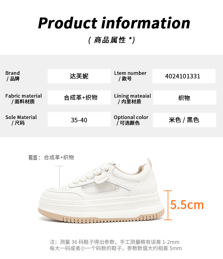 商品名称:轻便透气小白鞋女春夏百搭厚底板鞋小个子学生增高鞋运动休闲鞋 213015