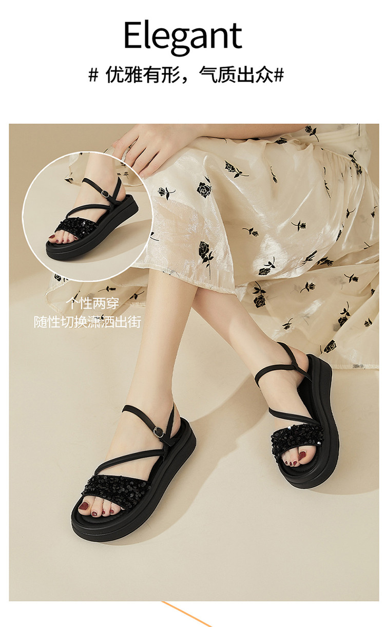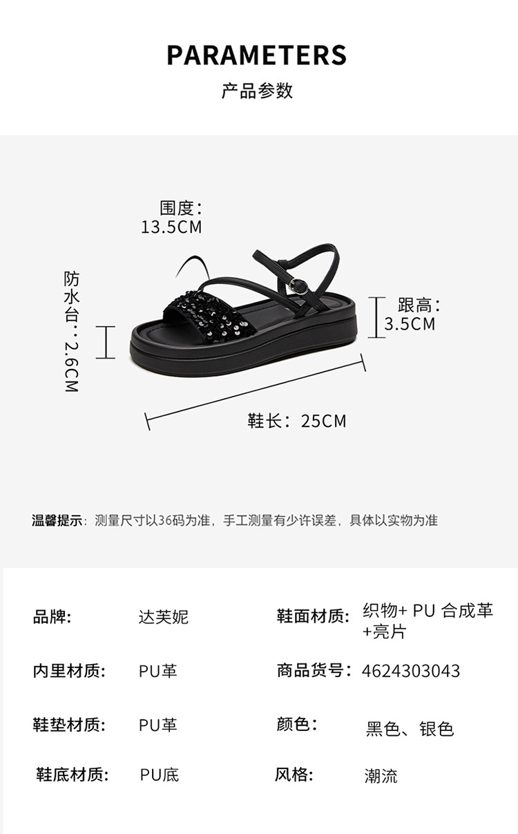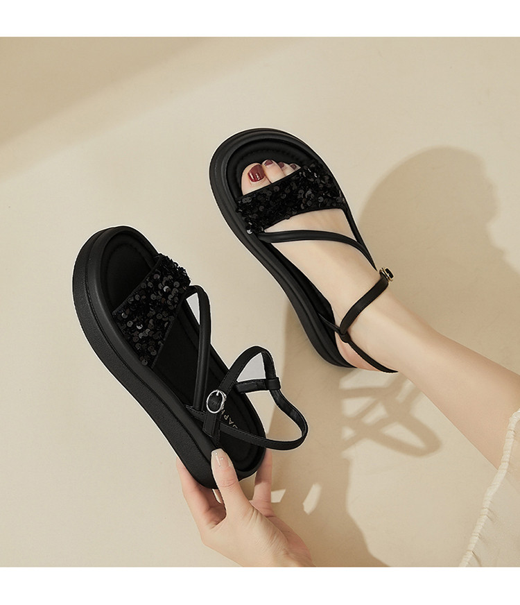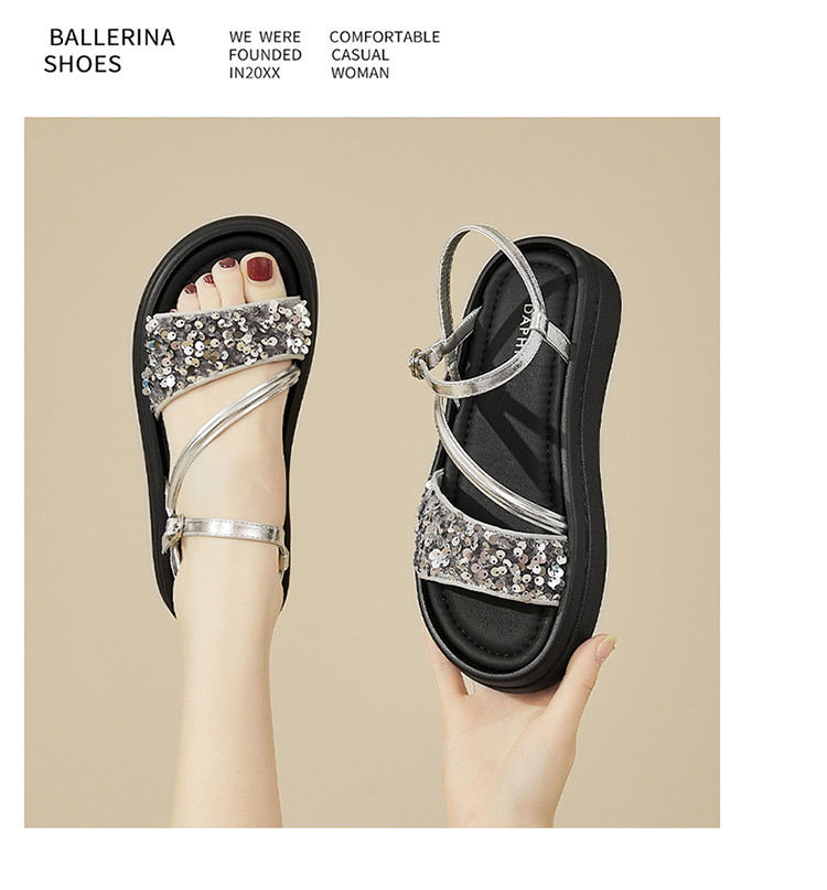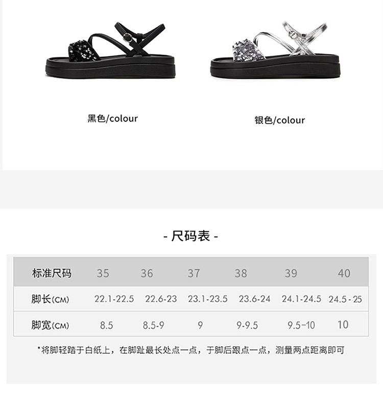 商品名称:【厚底增高】爆款夏季运动凉鞋女厚底沙滩凉鞋亮片一字带凉拖鞋 189975