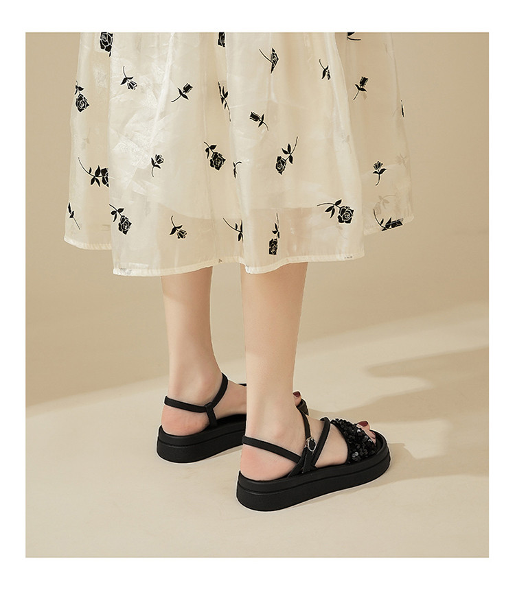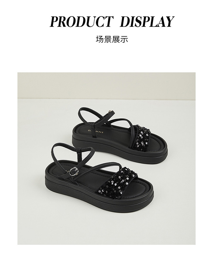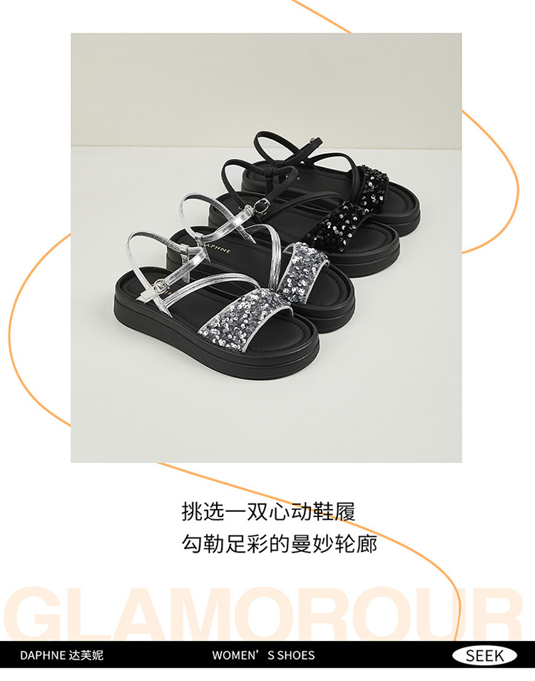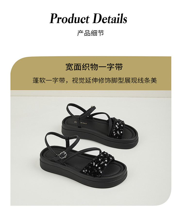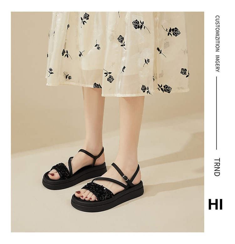 商品名称:【厚底增高】爆款夏季运动凉鞋女厚底沙滩凉鞋亮片一字带凉拖鞋 189975