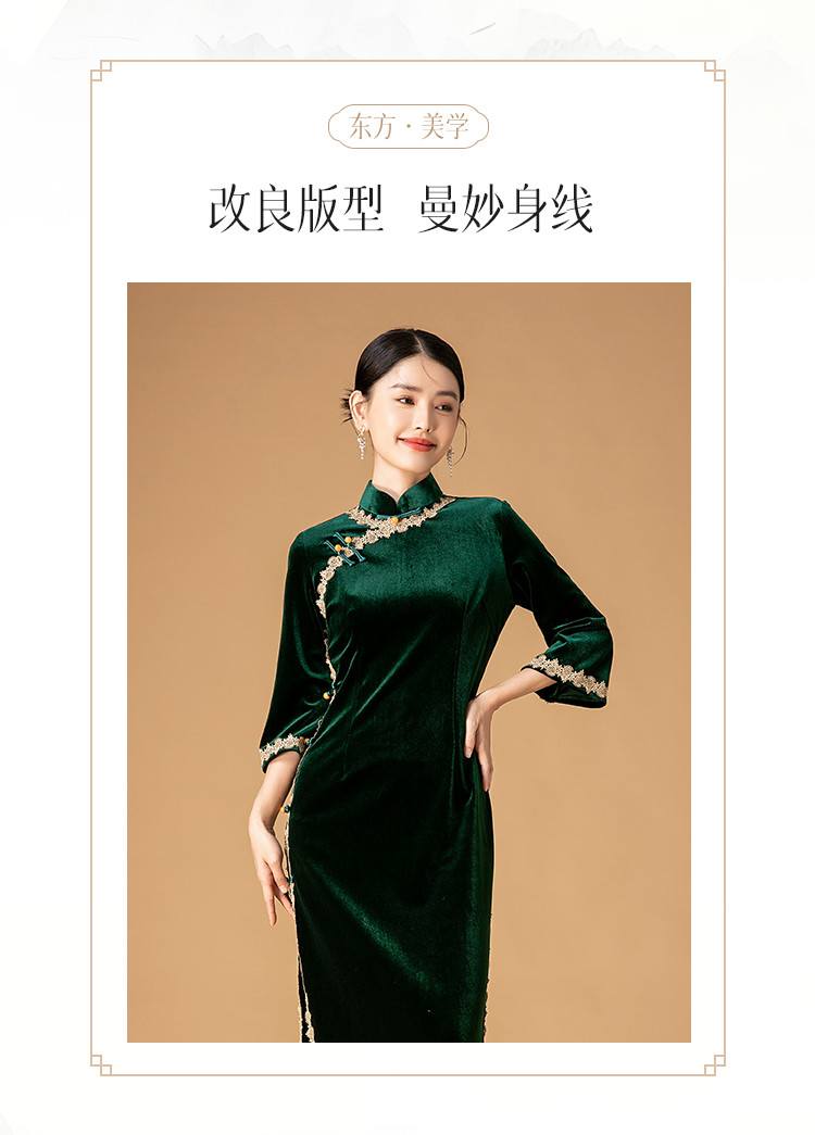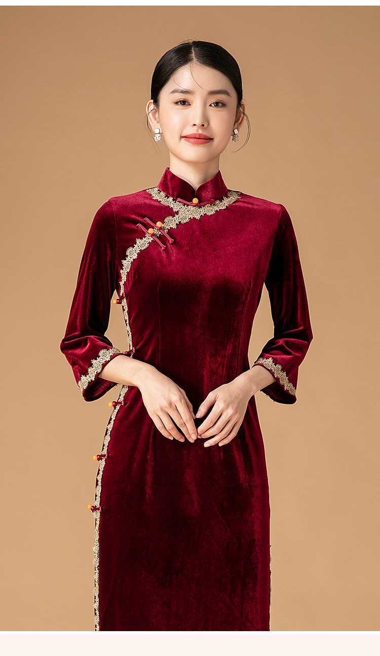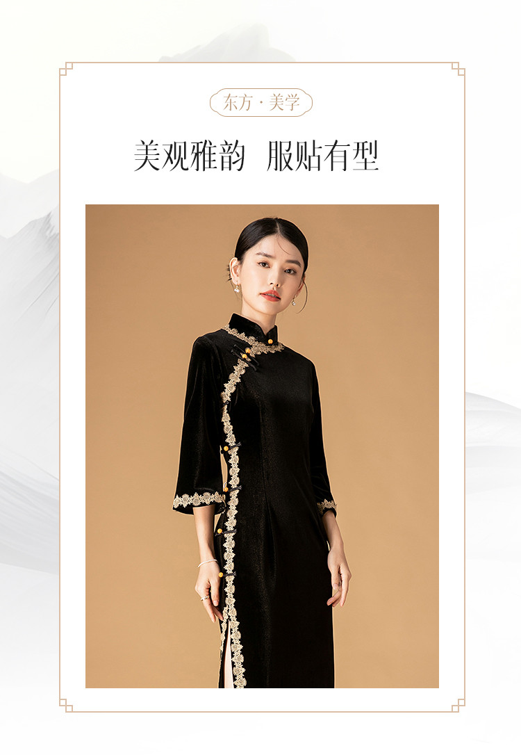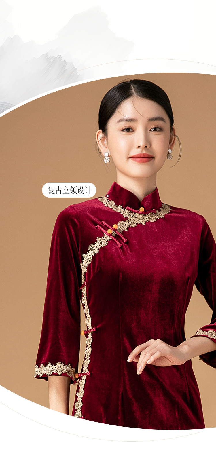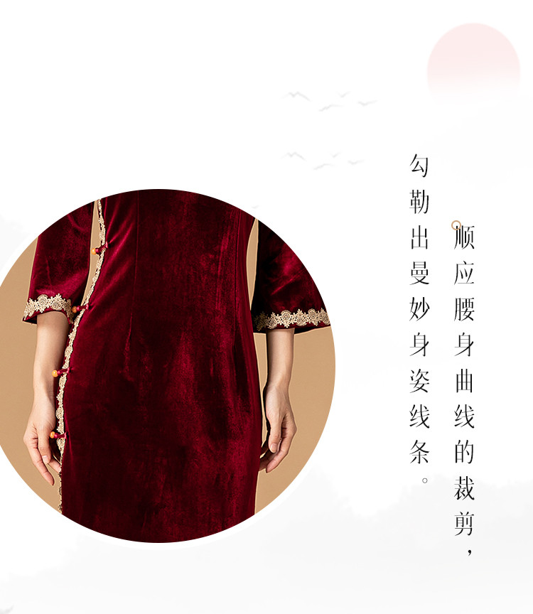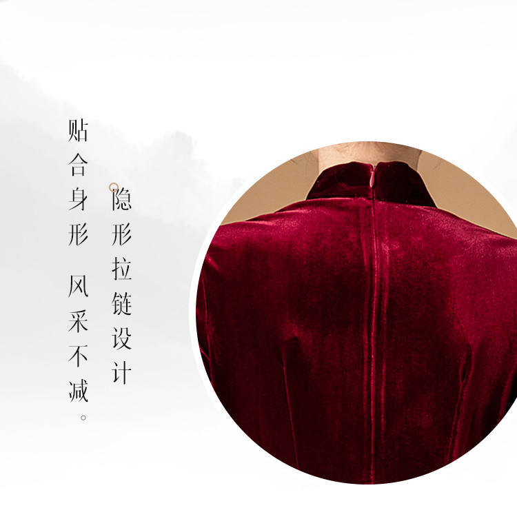 商品名称:新中式喜庆极简立领旗袍连衣裙优雅高端旗袍女 525023