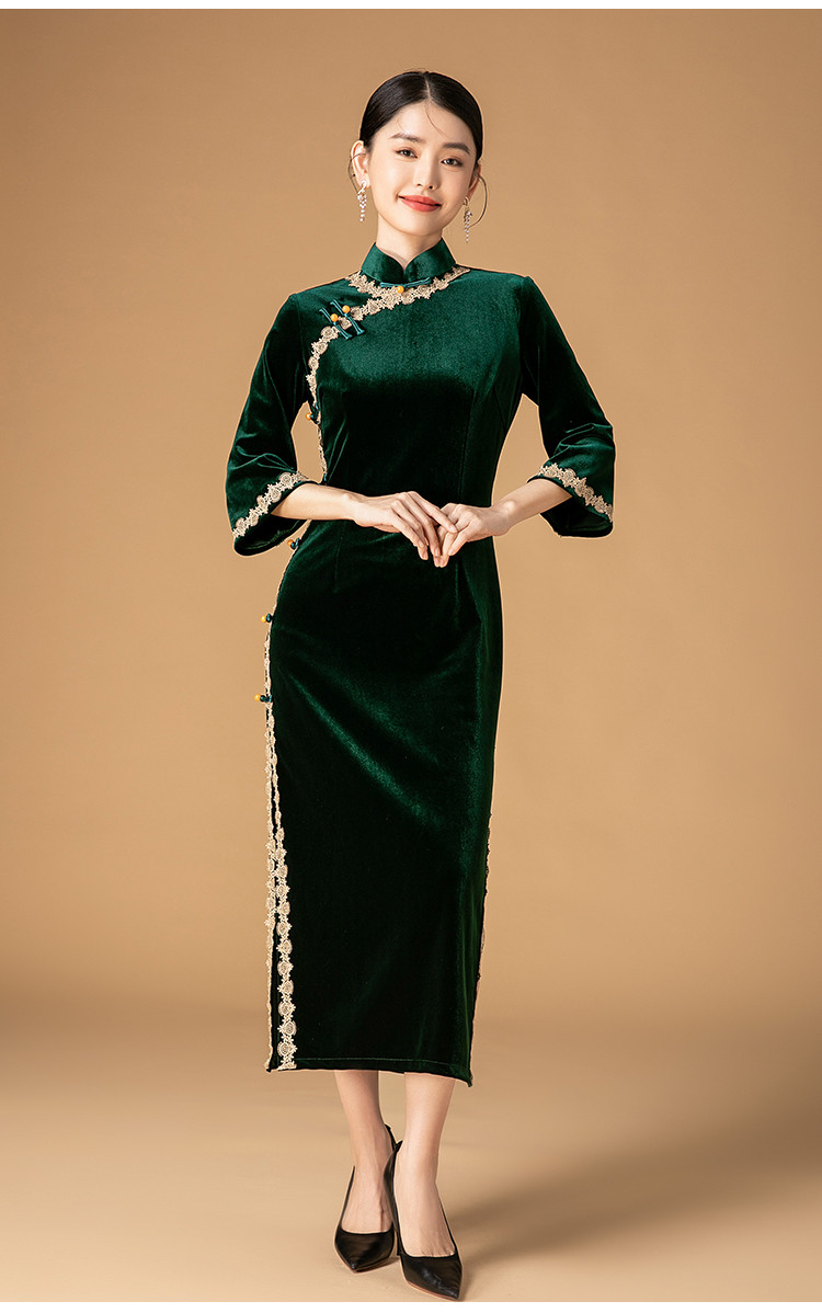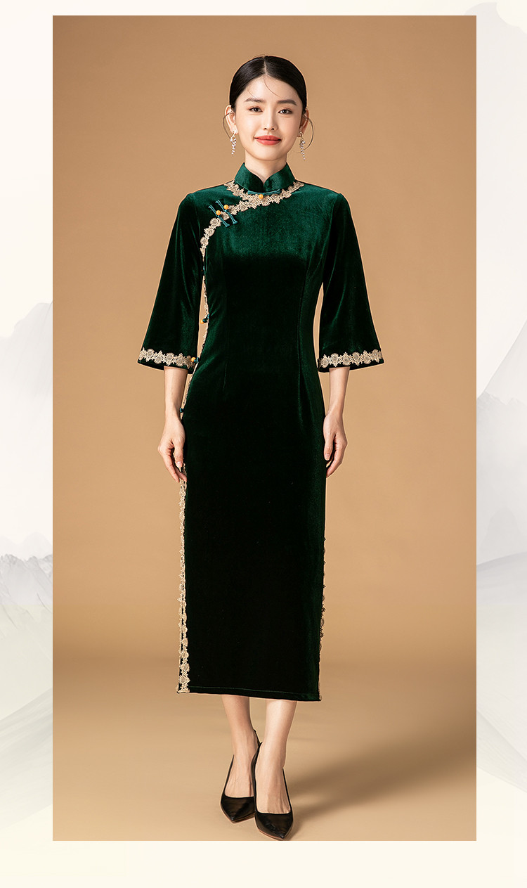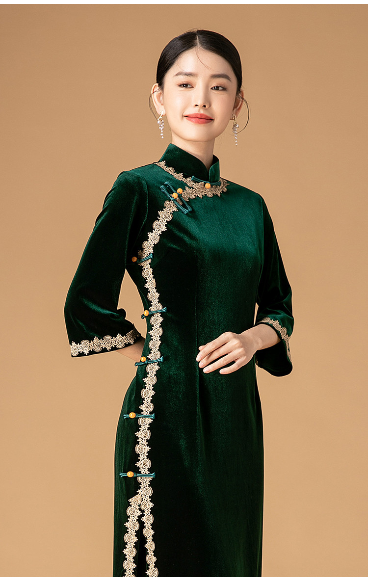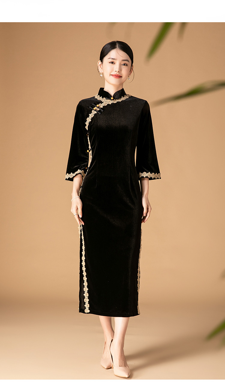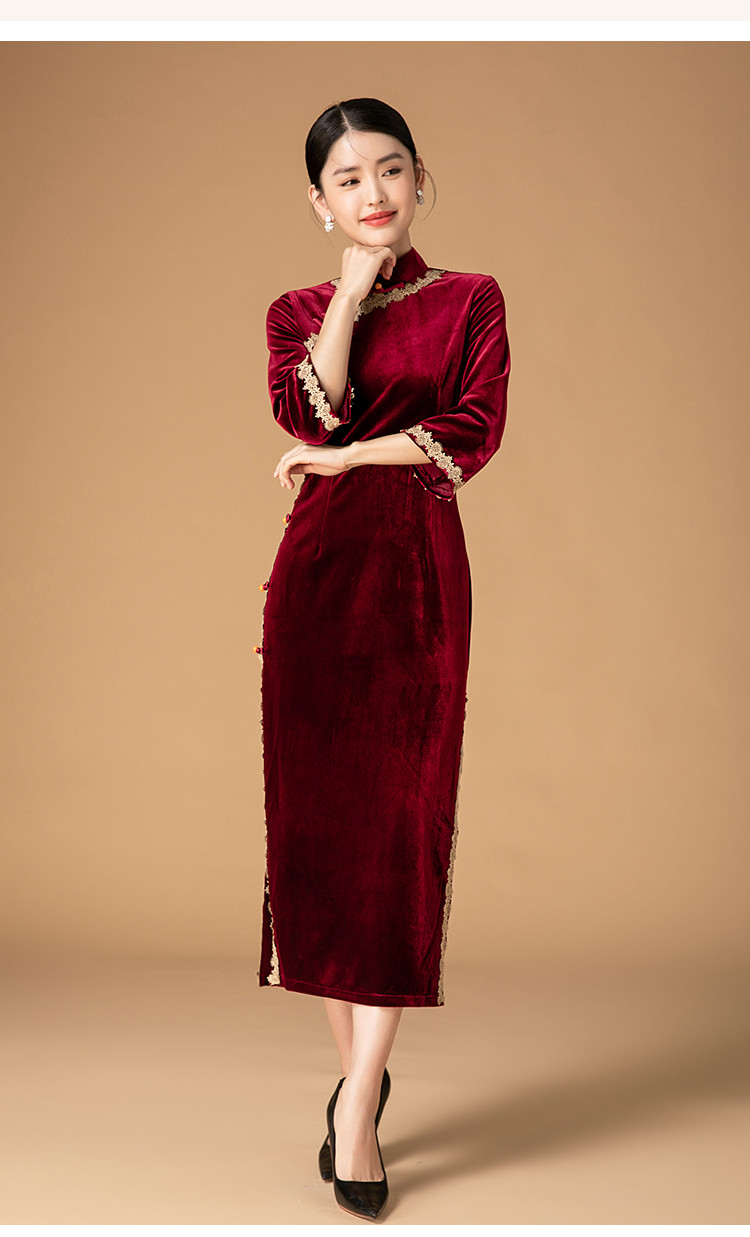 商品名称:新中式喜庆极简立领旗袍连衣裙优雅高端旗袍女 525023