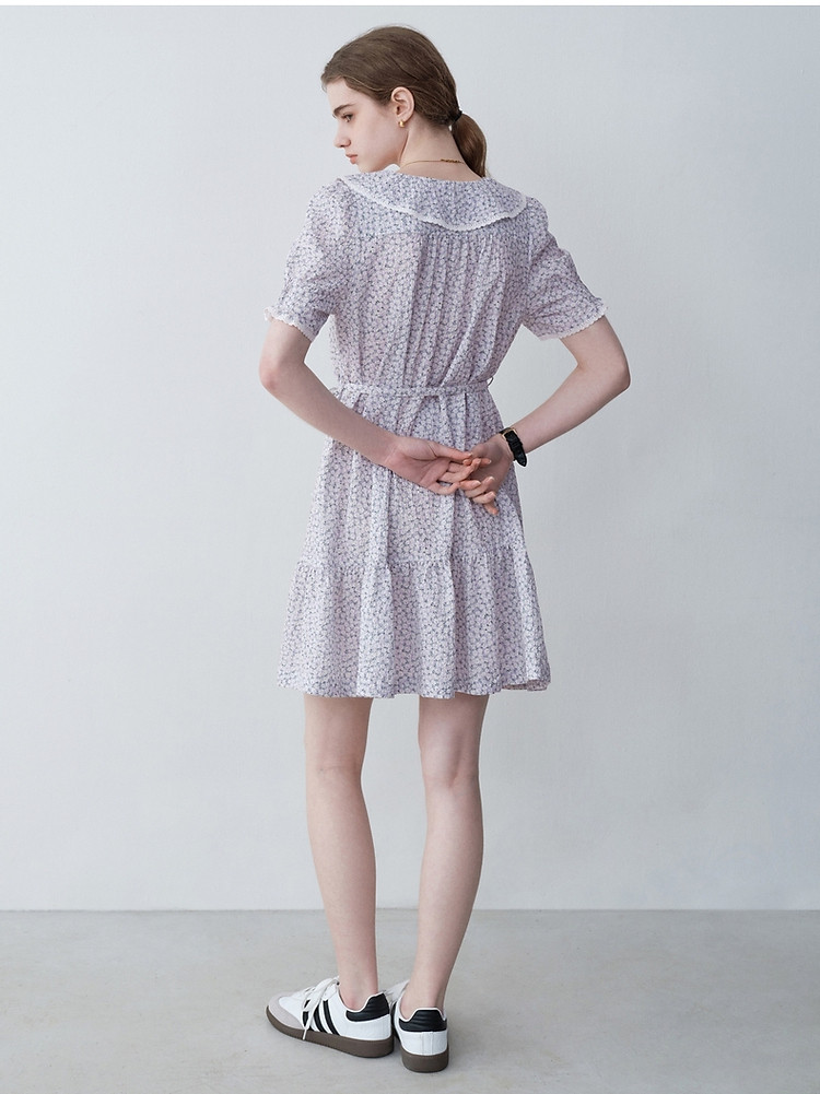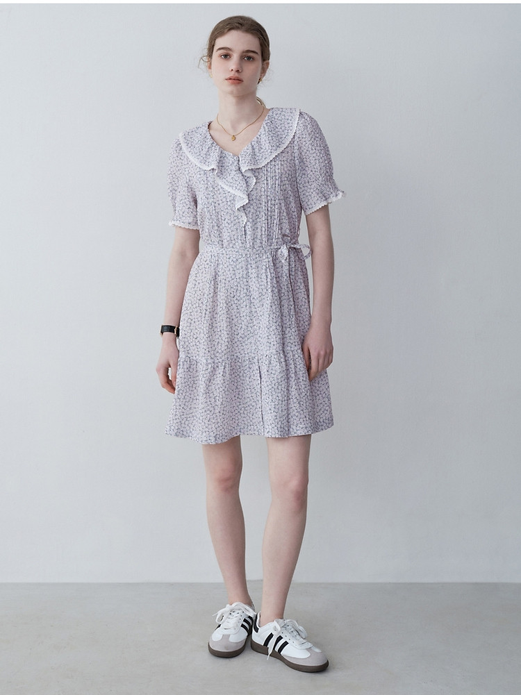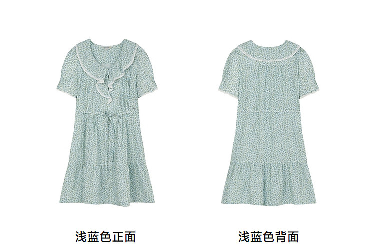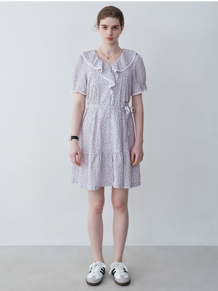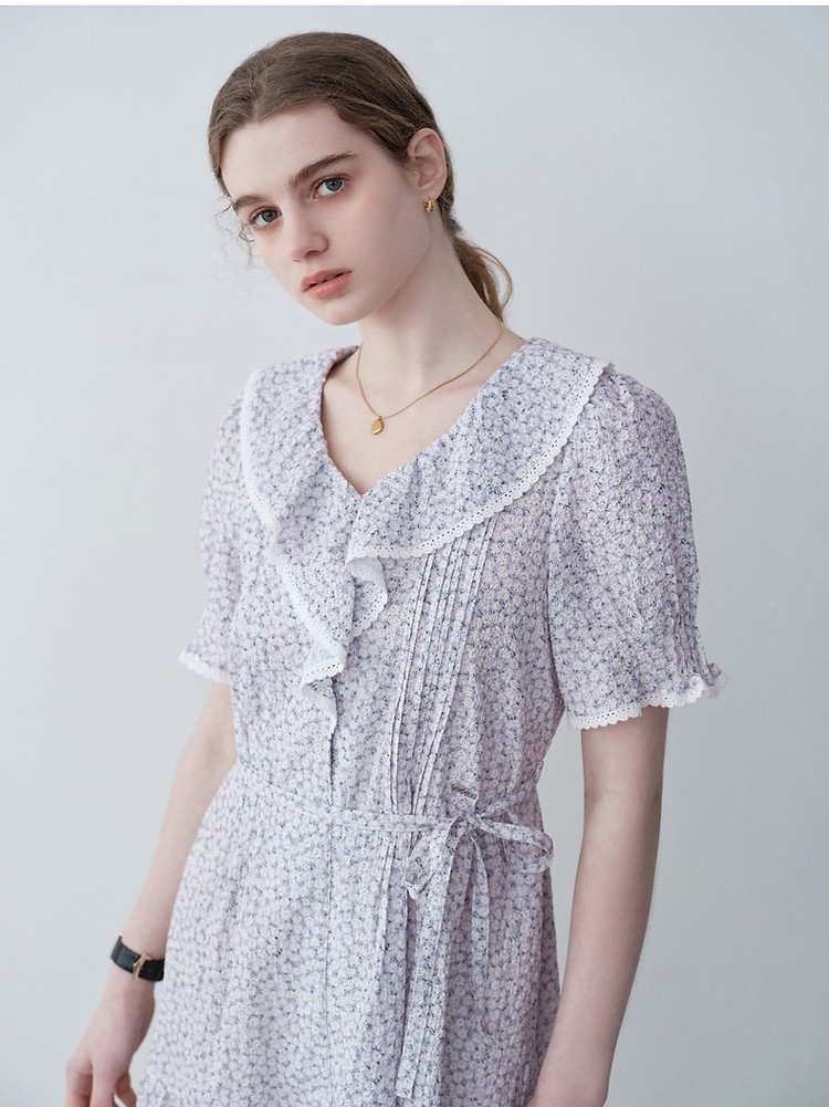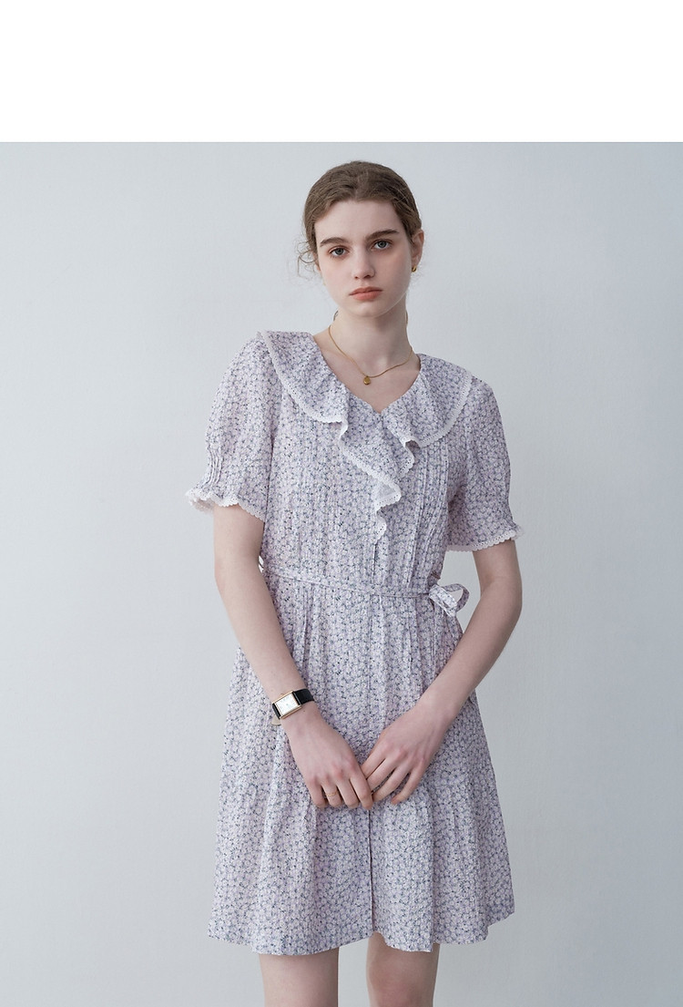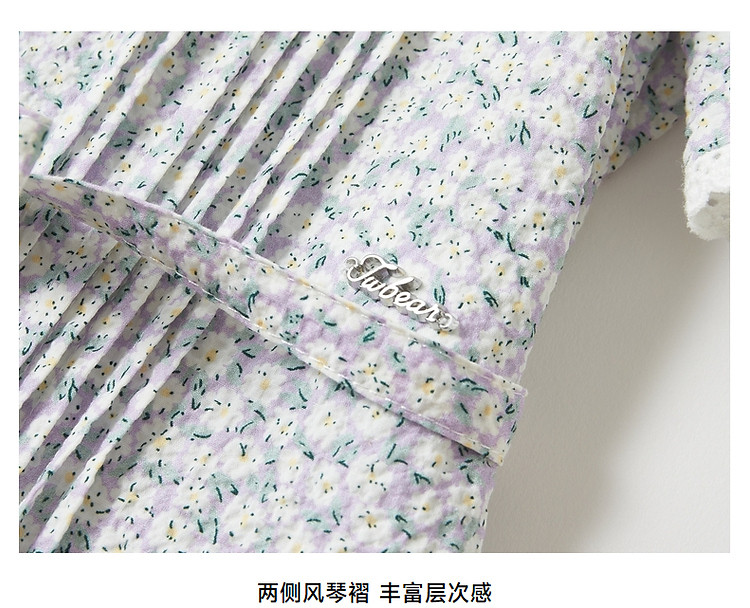 商品名称:小熊荷叶边法式田园碎花连衣裙夏装收腰茶歇裙紫色女 352257
