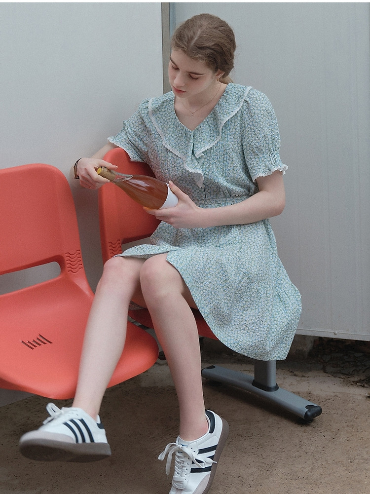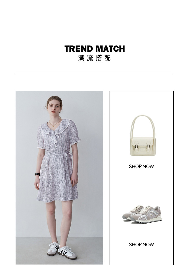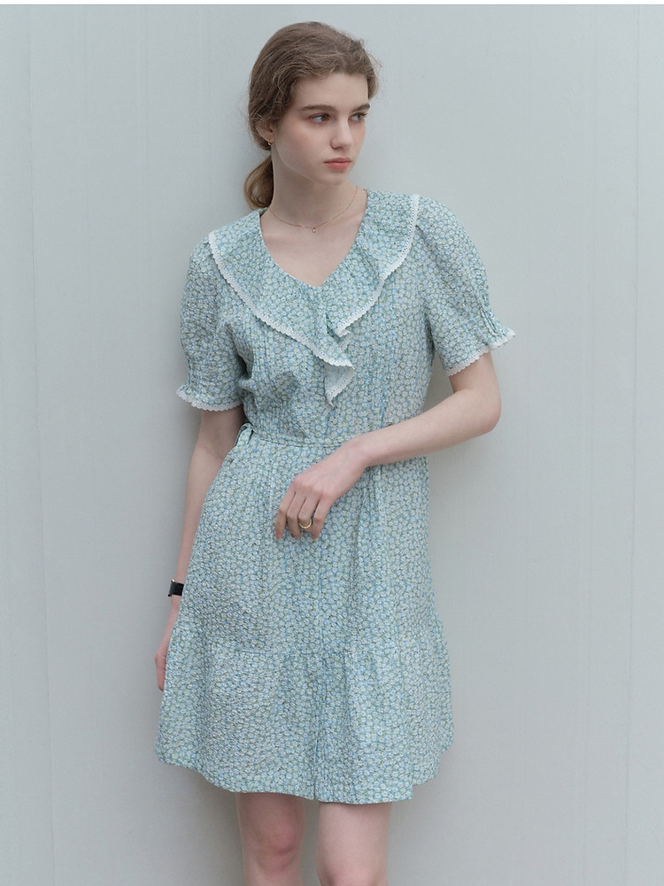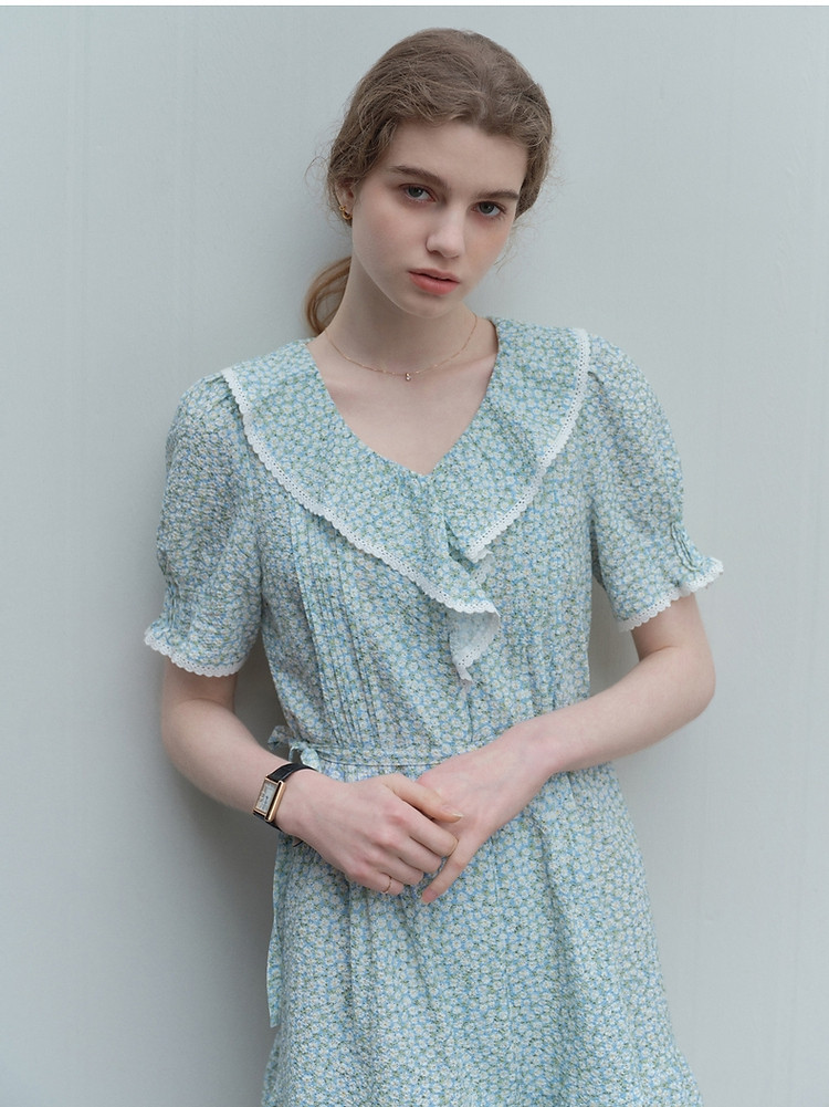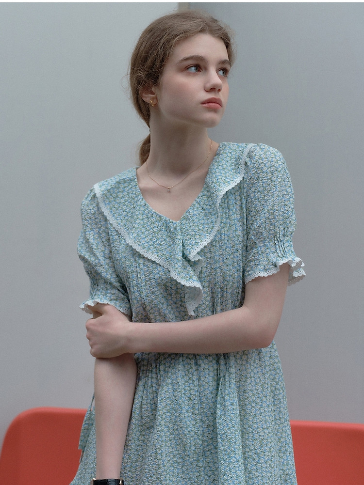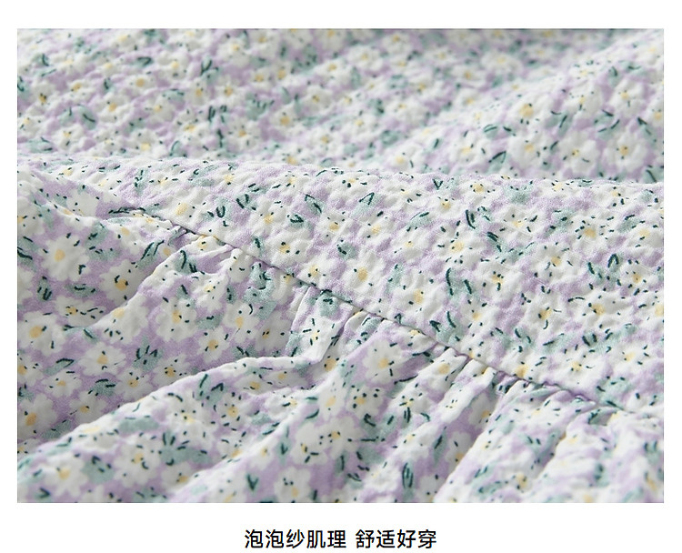 商品名称:小熊荷叶边法式田园碎花连衣裙夏装收腰茶歇裙紫色女 352257