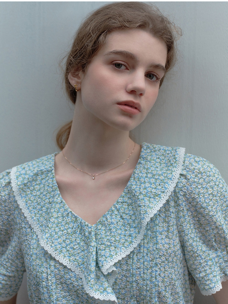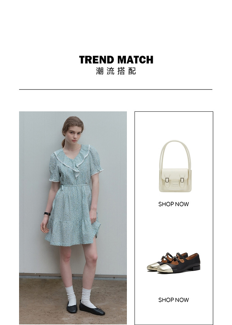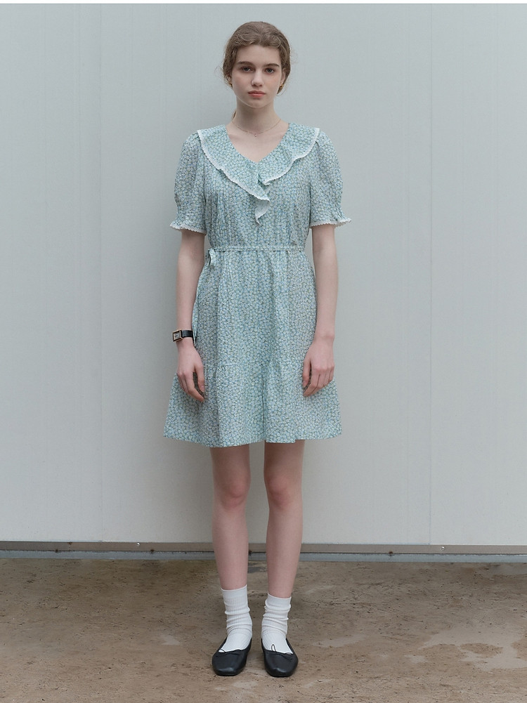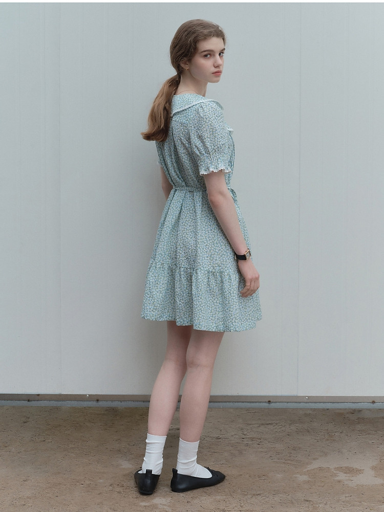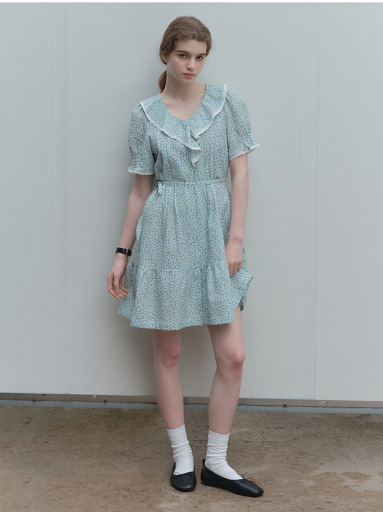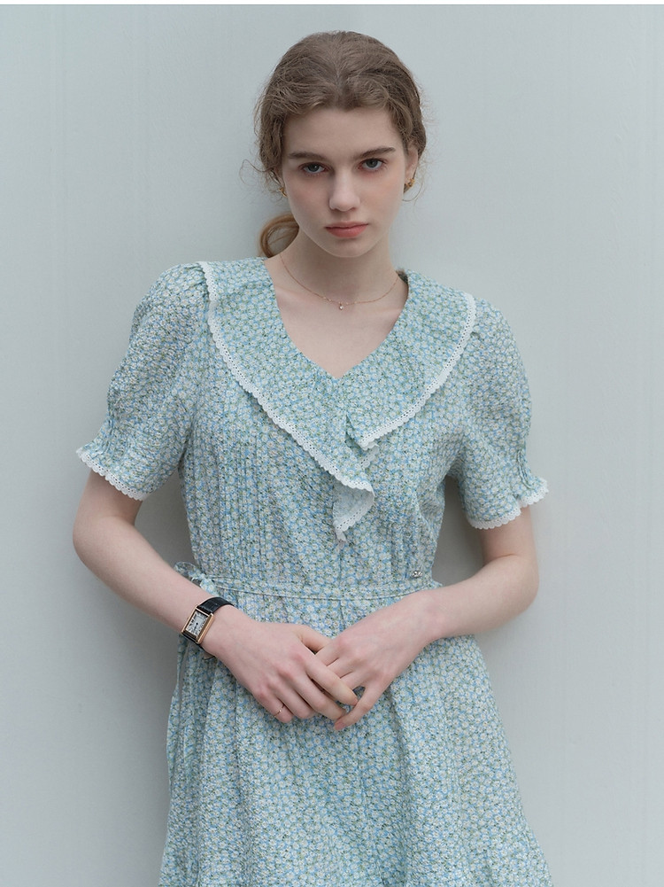 商品名称:小熊荷叶边法式田园碎花连衣裙夏装收腰茶歇裙紫色女 352257