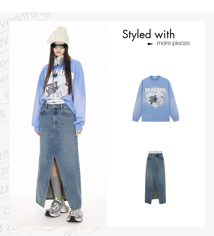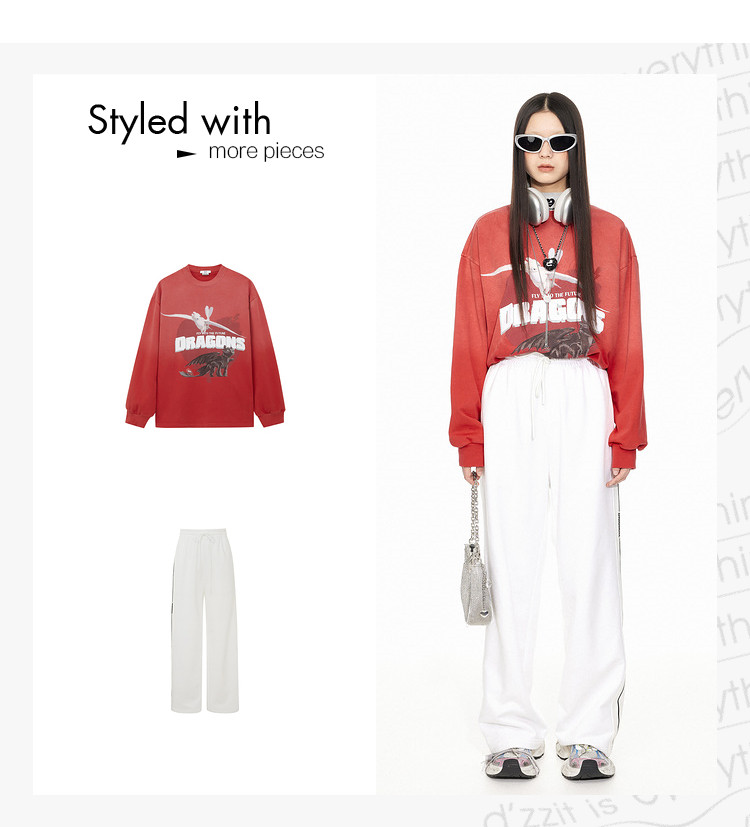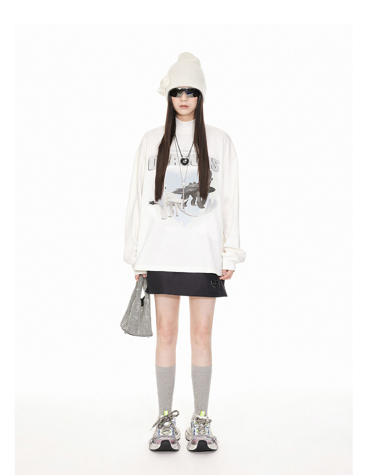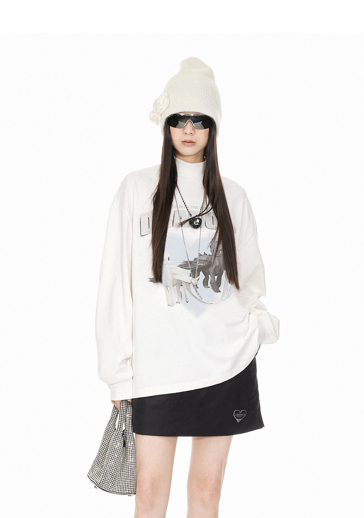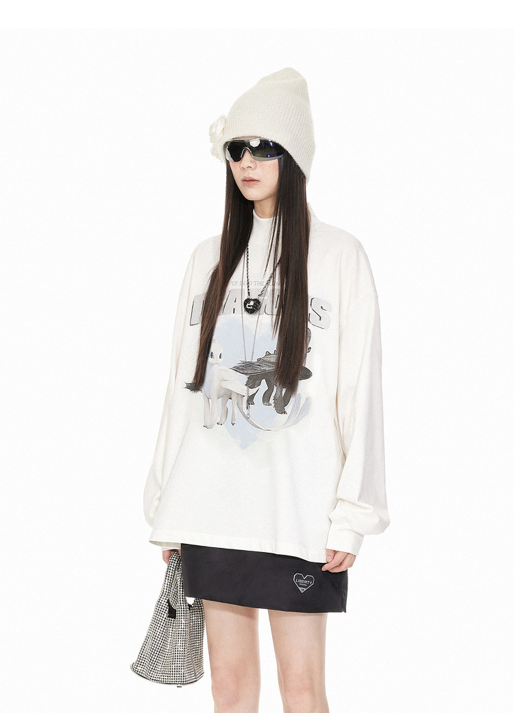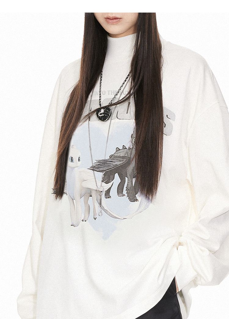 地素 驯龙高手联名 印花长袖T春趣味休闲圆领卫衣上衣 410059