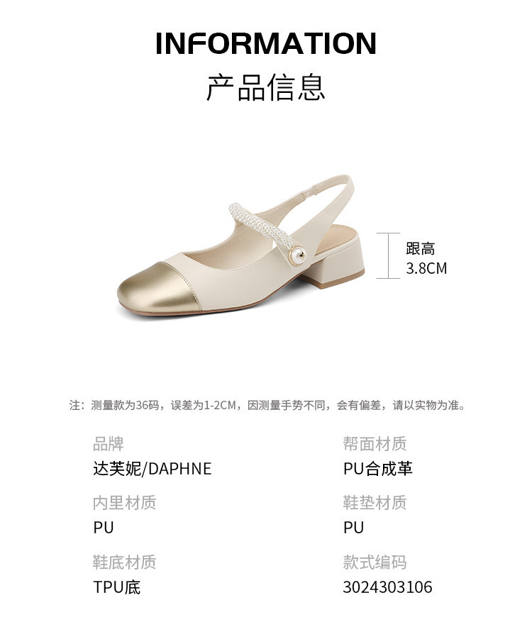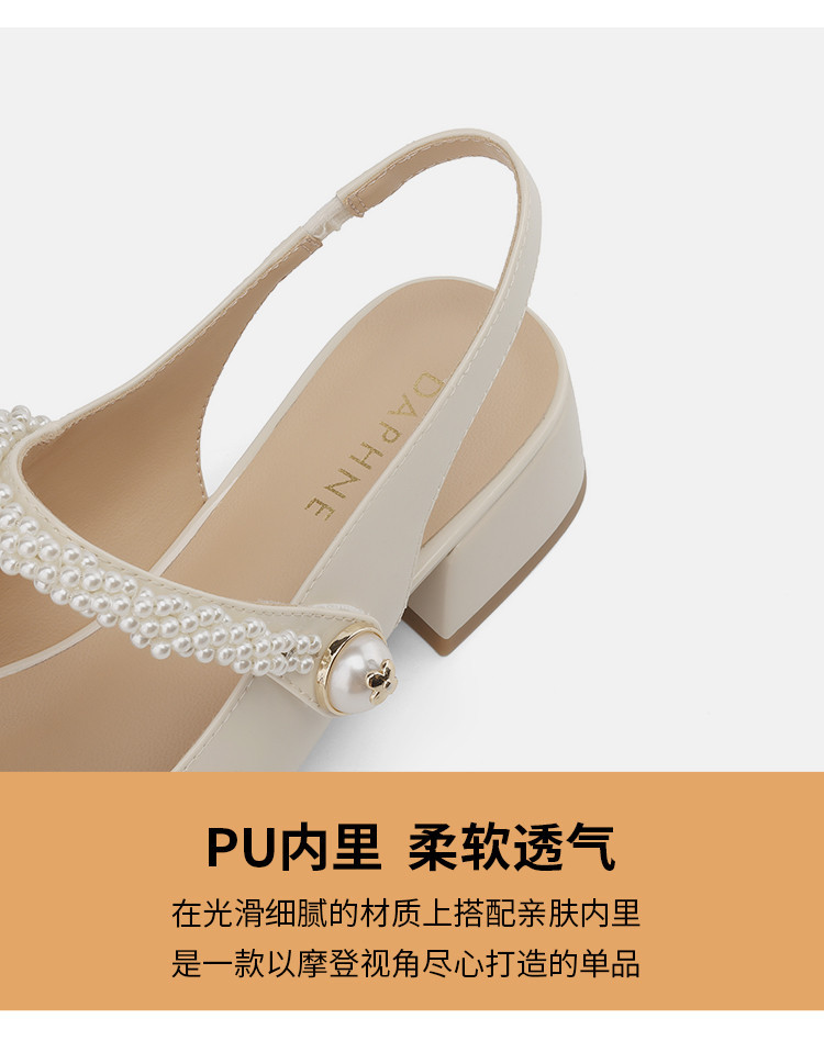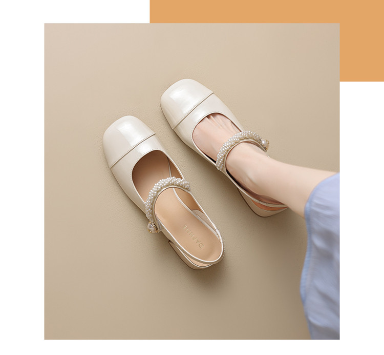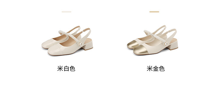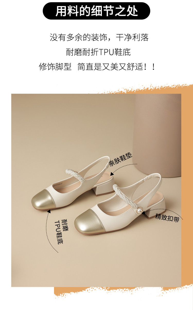 商品名称:金色包头凉鞋女夏季珍珠带外穿方头百搭粗跟法式女鞋夏 846682
