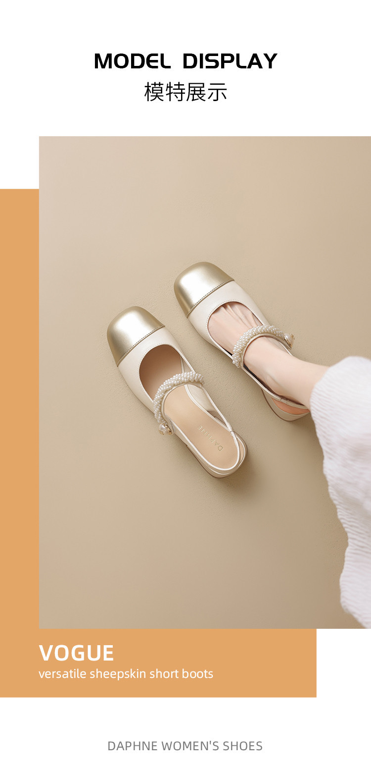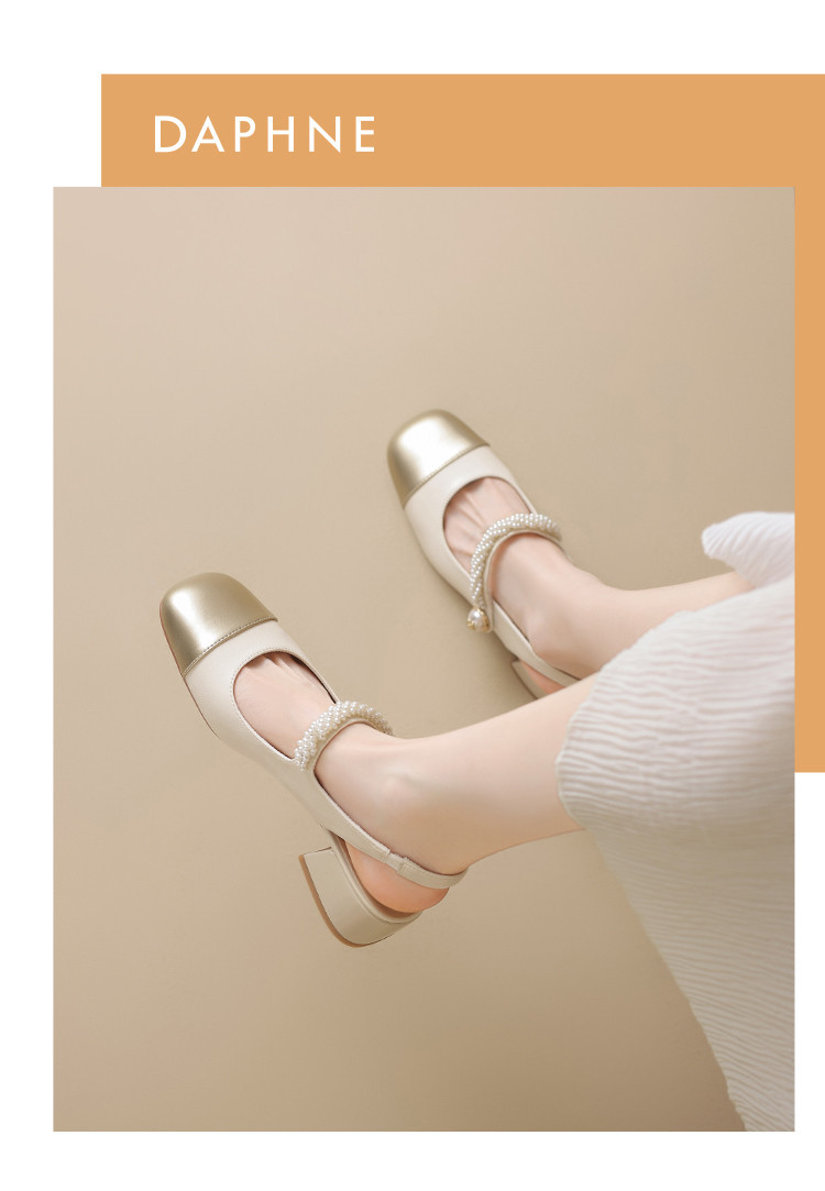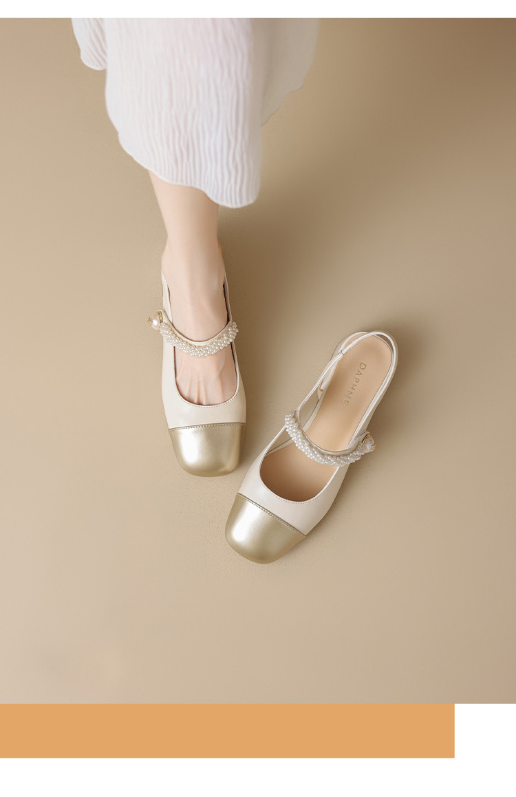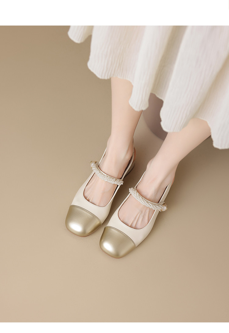 商品名称:金色包头凉鞋女夏季珍珠带外穿方头百搭粗跟法式女鞋夏 846682