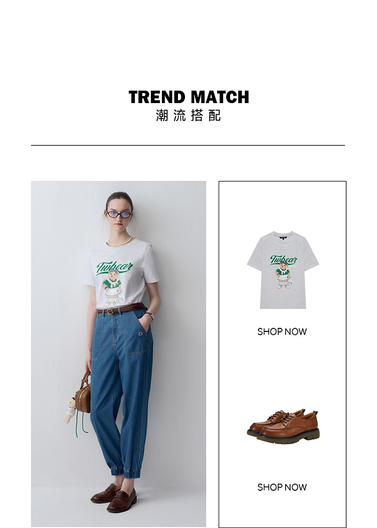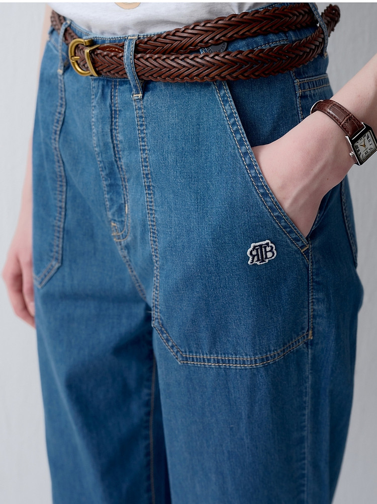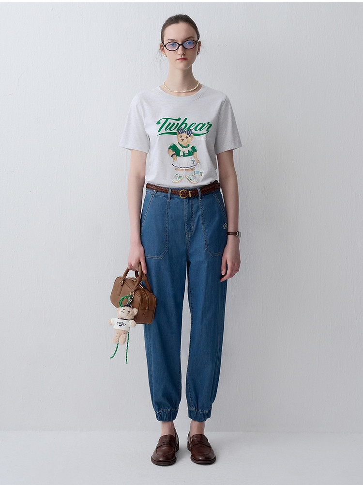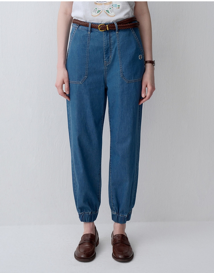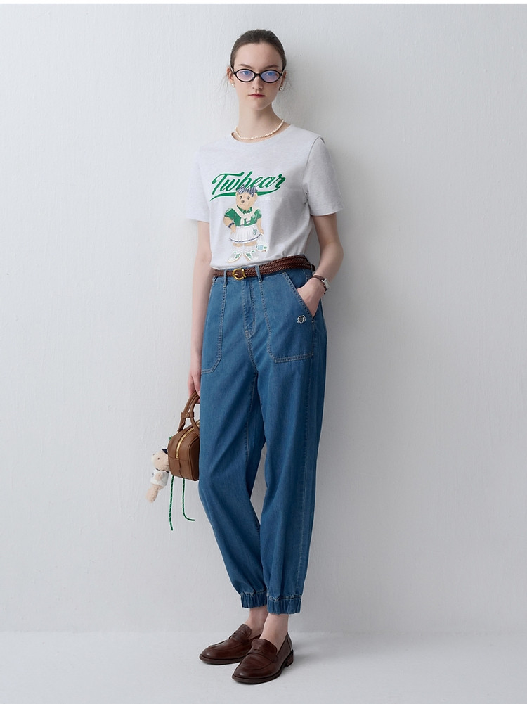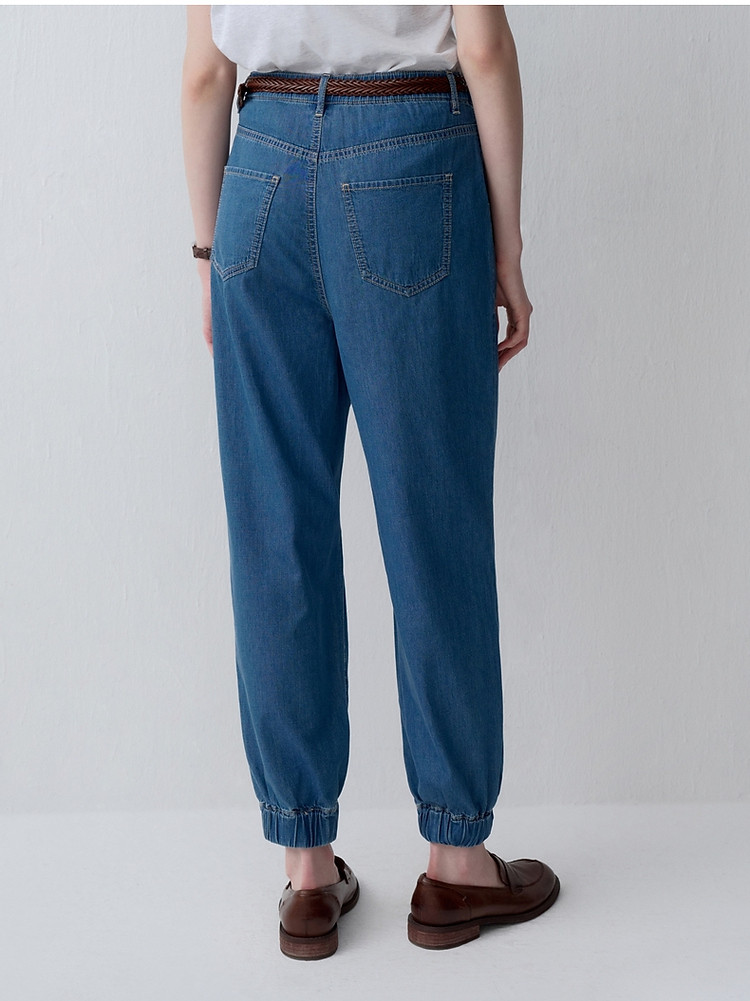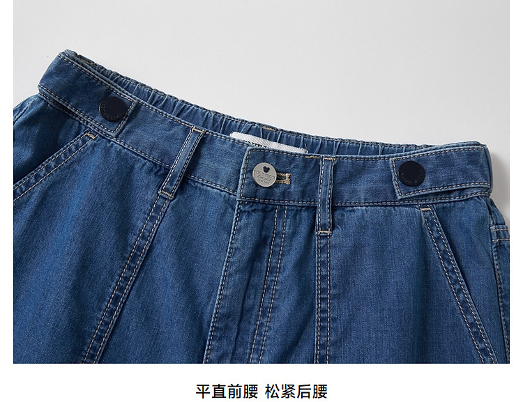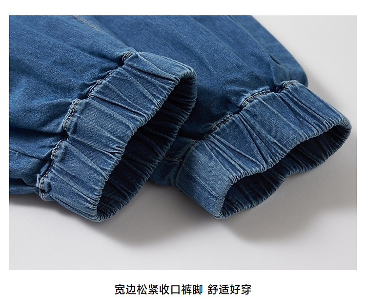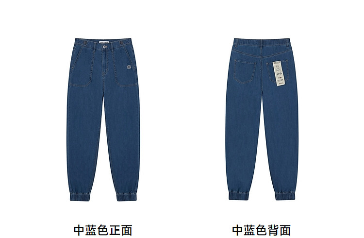 商品名称:小熊女装春秋款简约休闲高腰束脚牛仔裤长裤子 576705