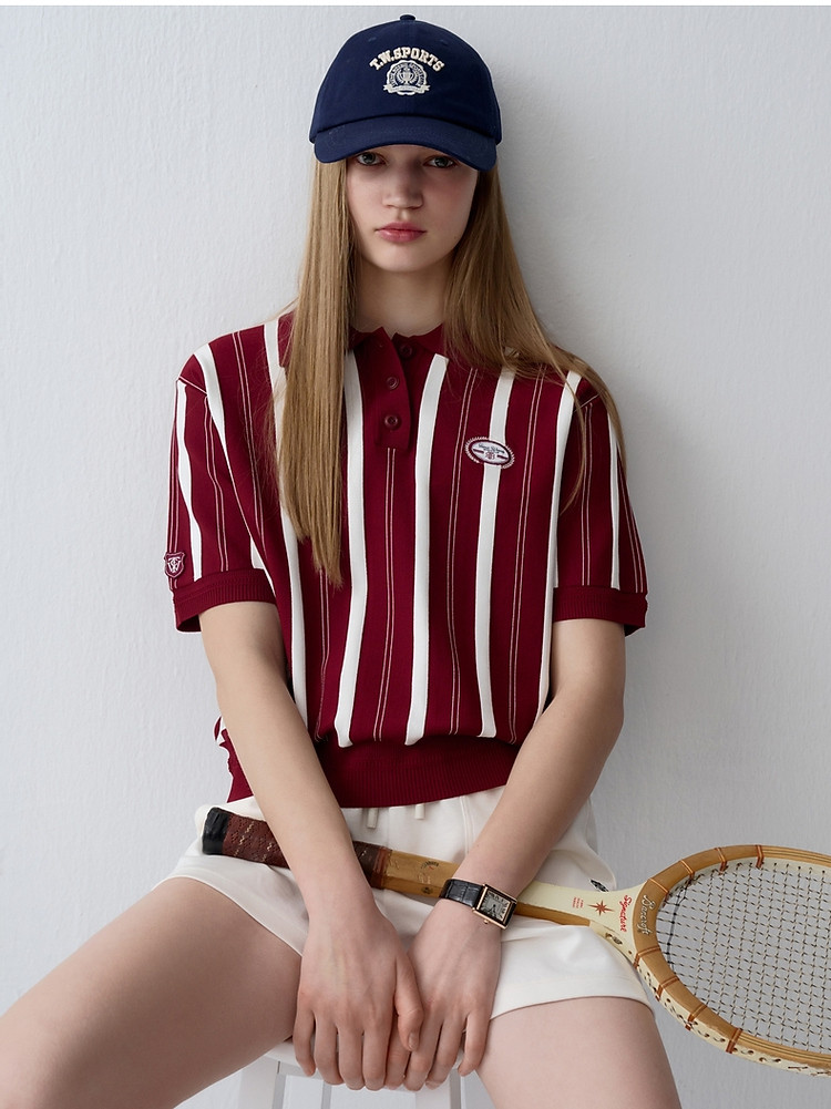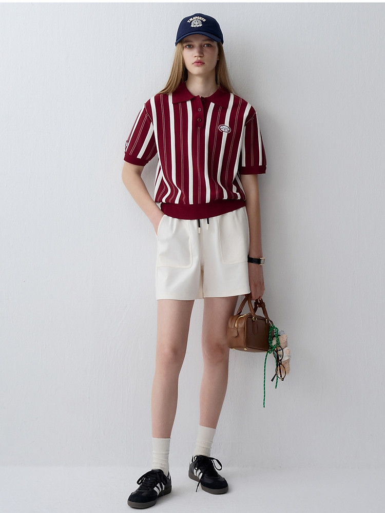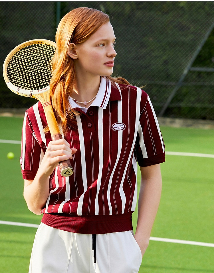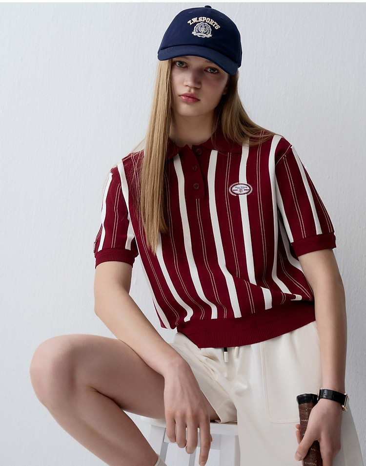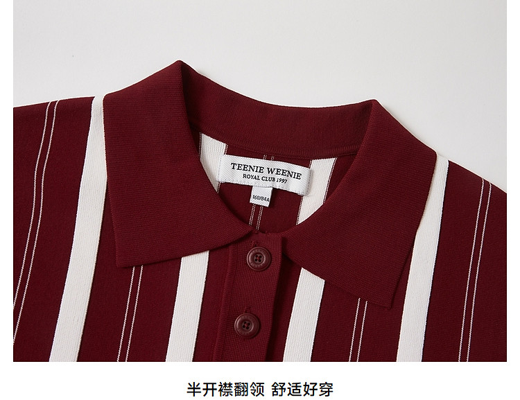 小熊款夏季学院风竖条纹针织POLO衫宽松毛衣女装 536385