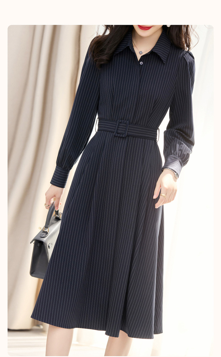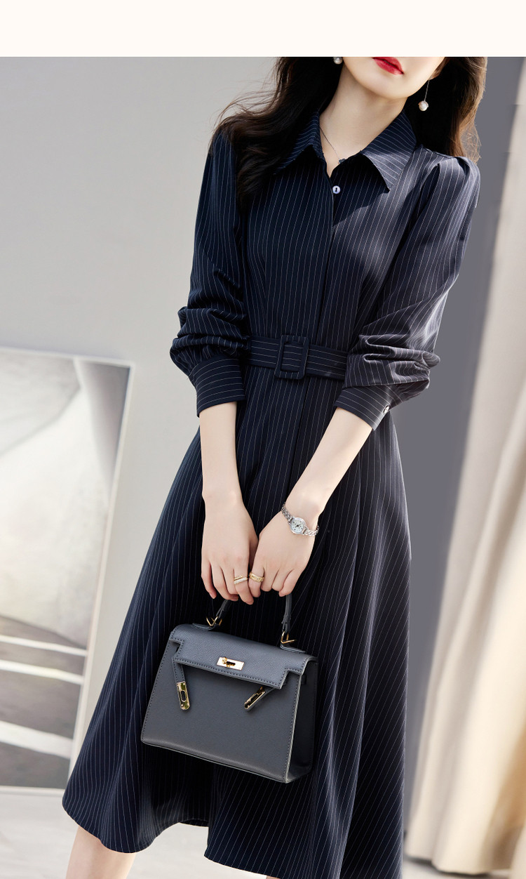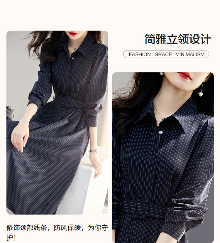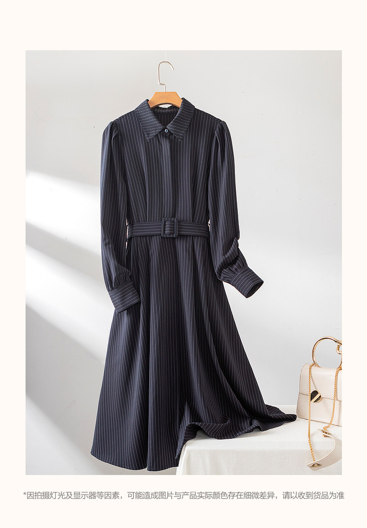 商品名称:【立领衬衫式连衣裙】秋收腰a字长袖系带连衣裙女中长款 891585