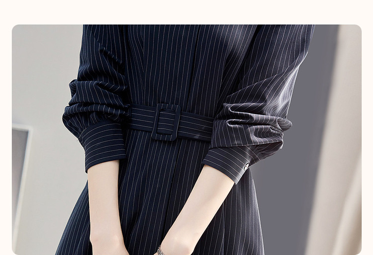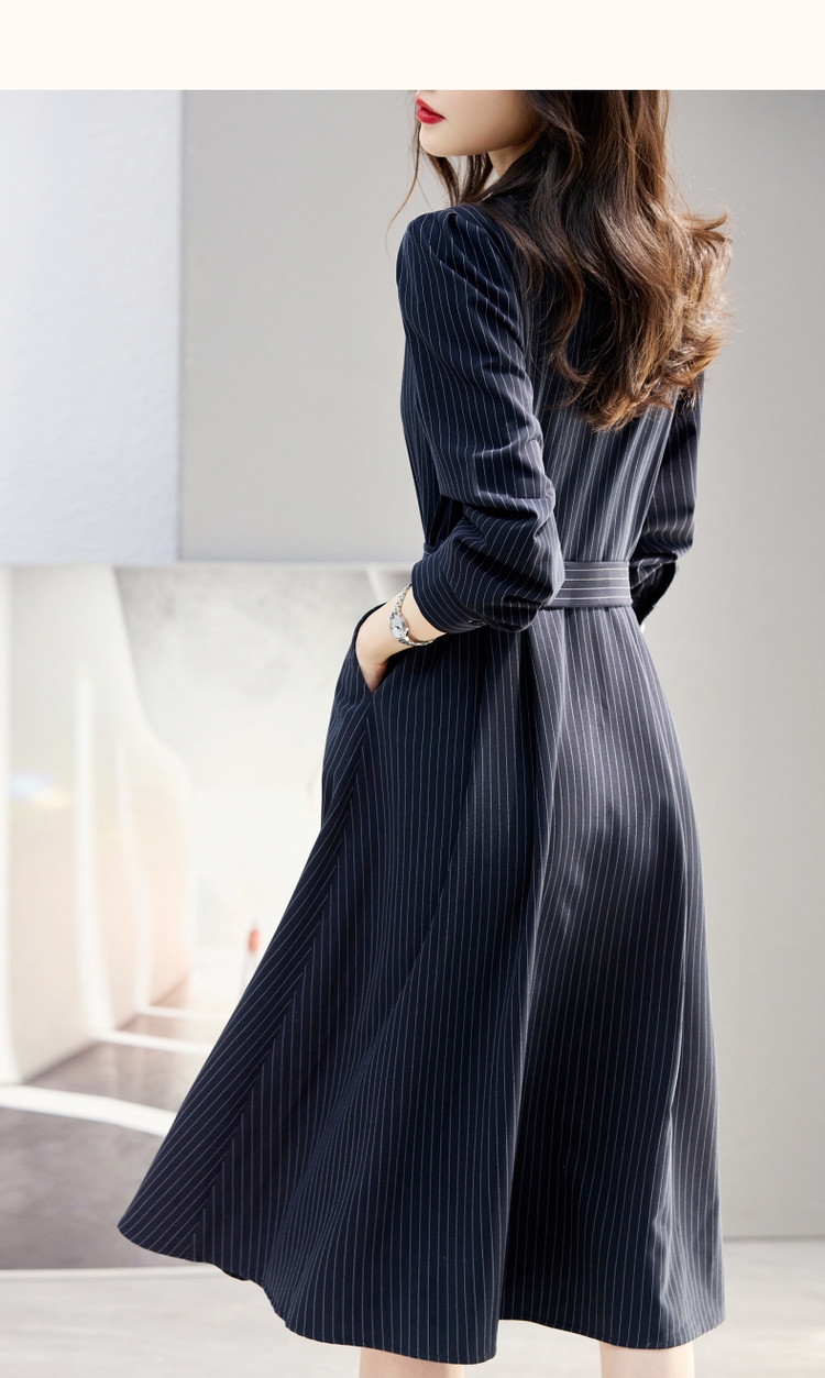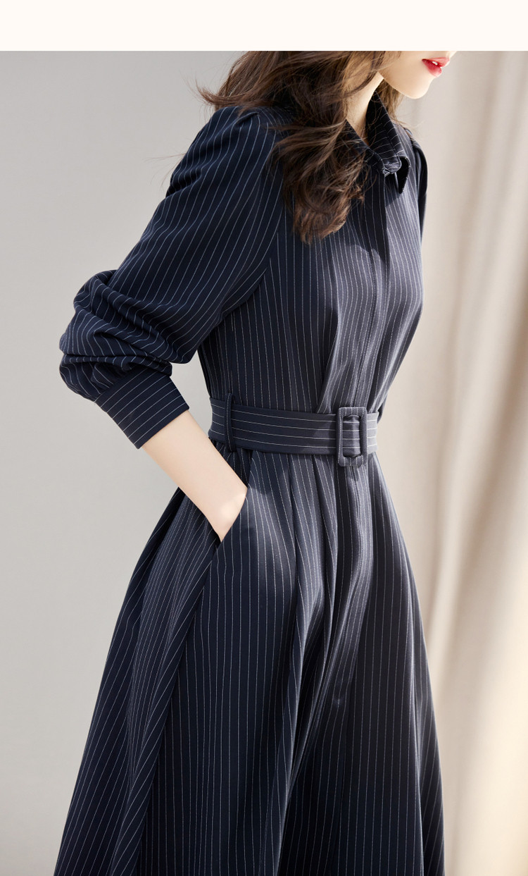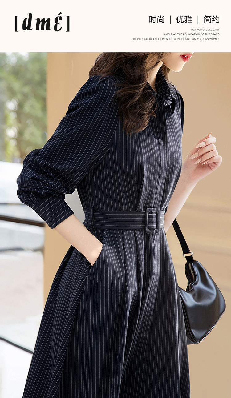 商品名称:【立领衬衫式连衣裙】秋收腰a字长袖系带连衣裙女中长款 891585