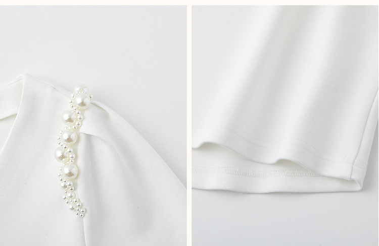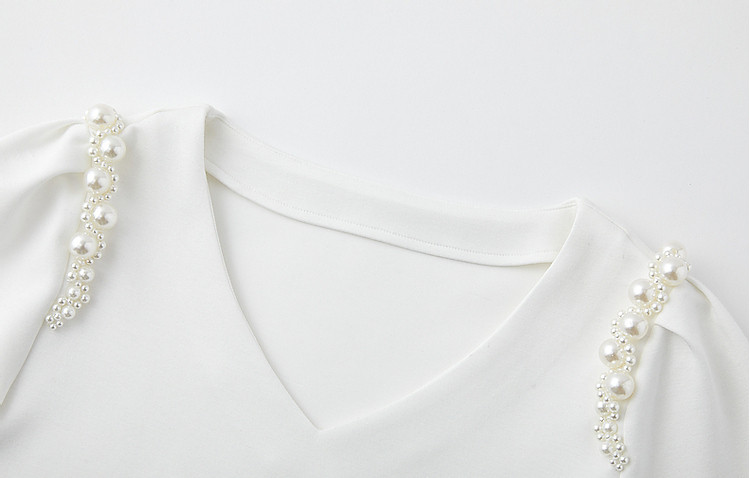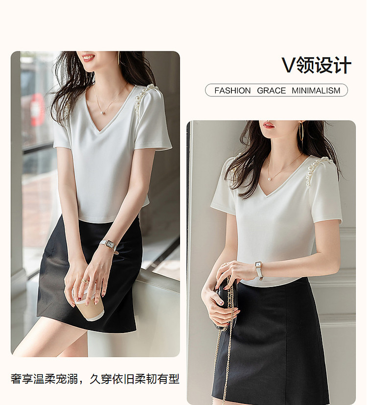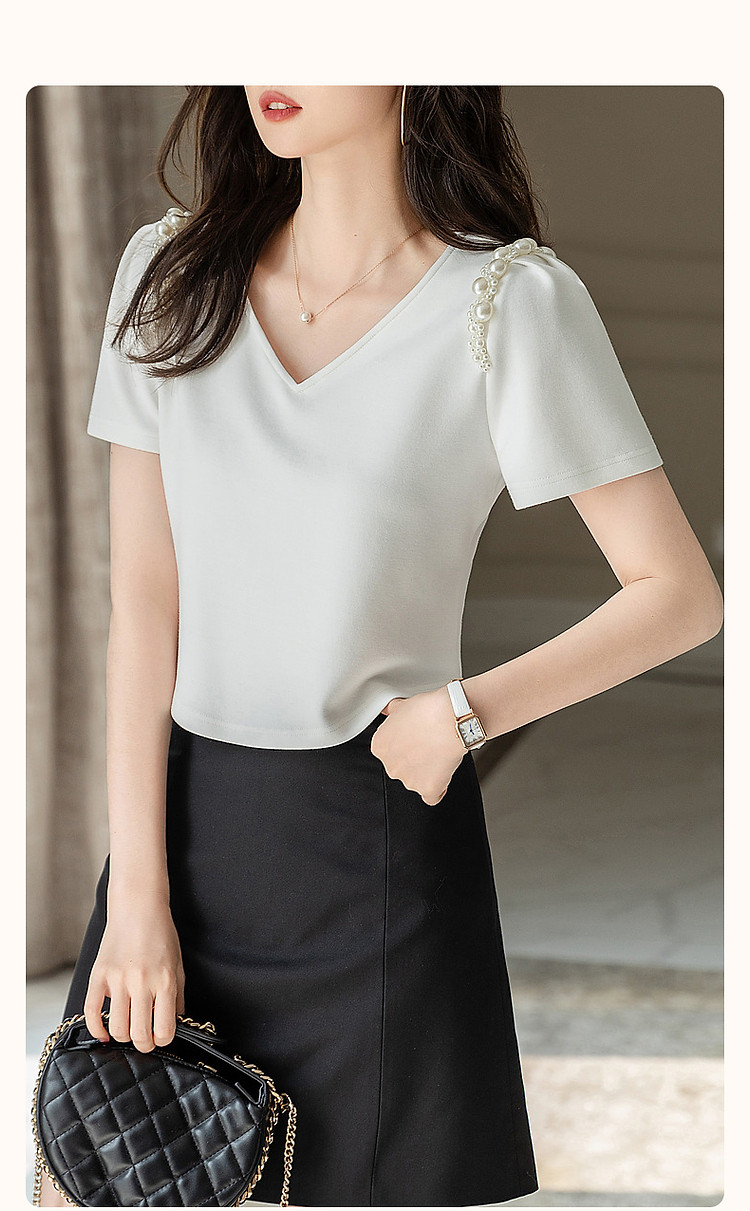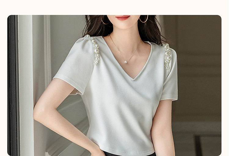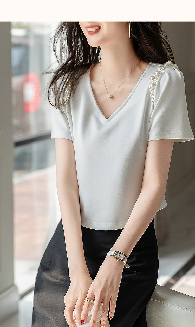 商品名称:【超短款辣妹装】夏V领简洁钉珠泡泡袖t恤女空气层休闲女式t恤 073985