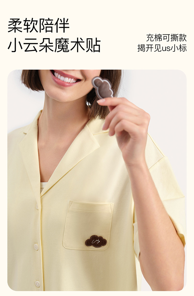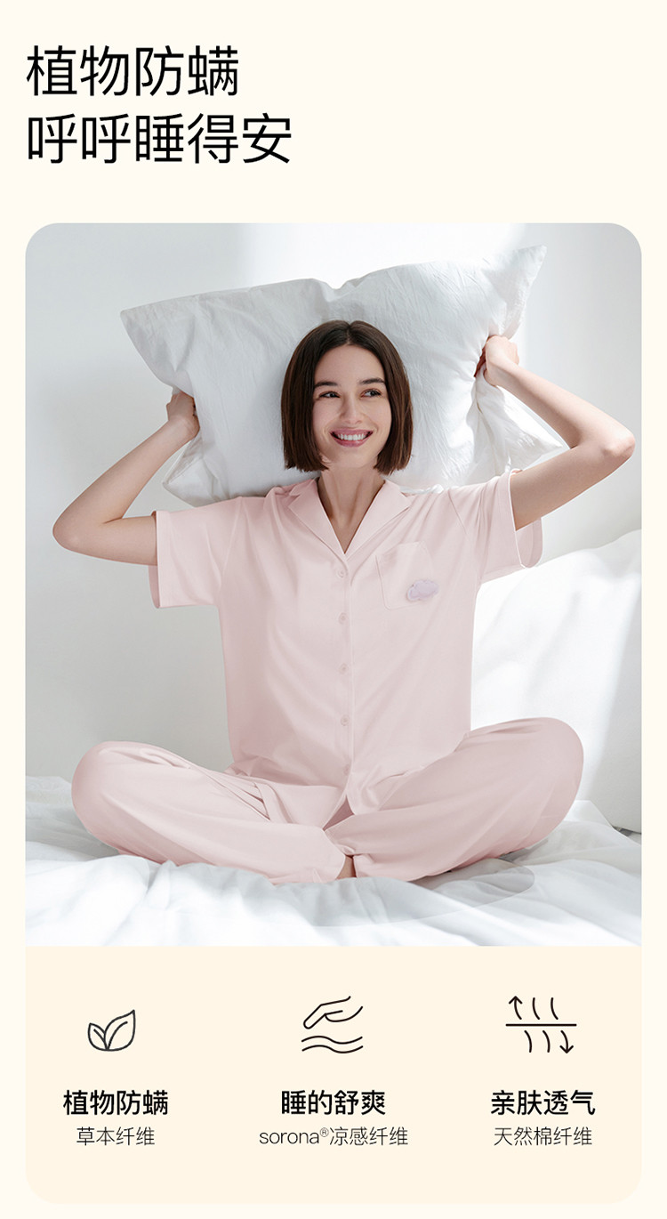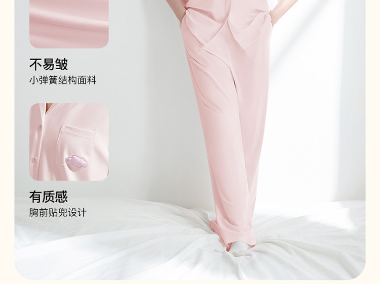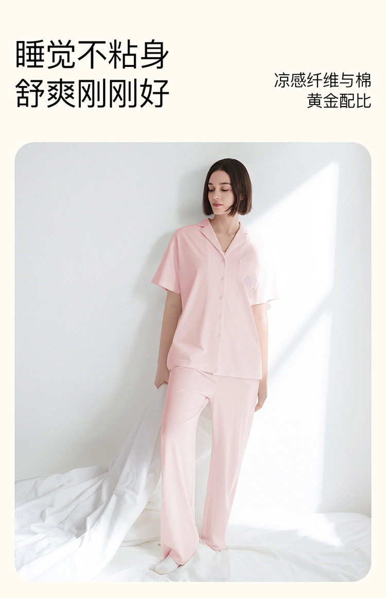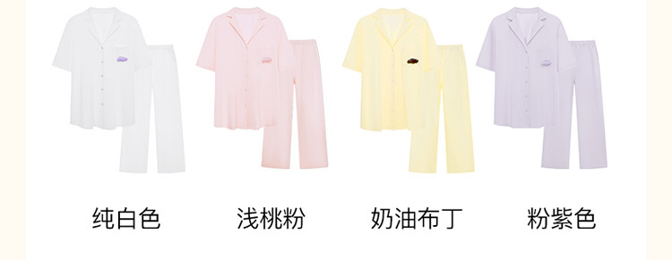 【柔软亲肤】云棉草本开襟翻领短袖长裤女士家居服套装睡衣夏 921664