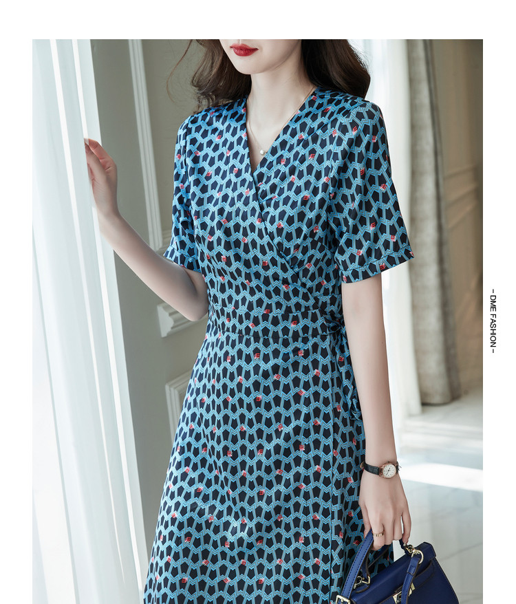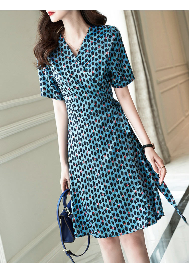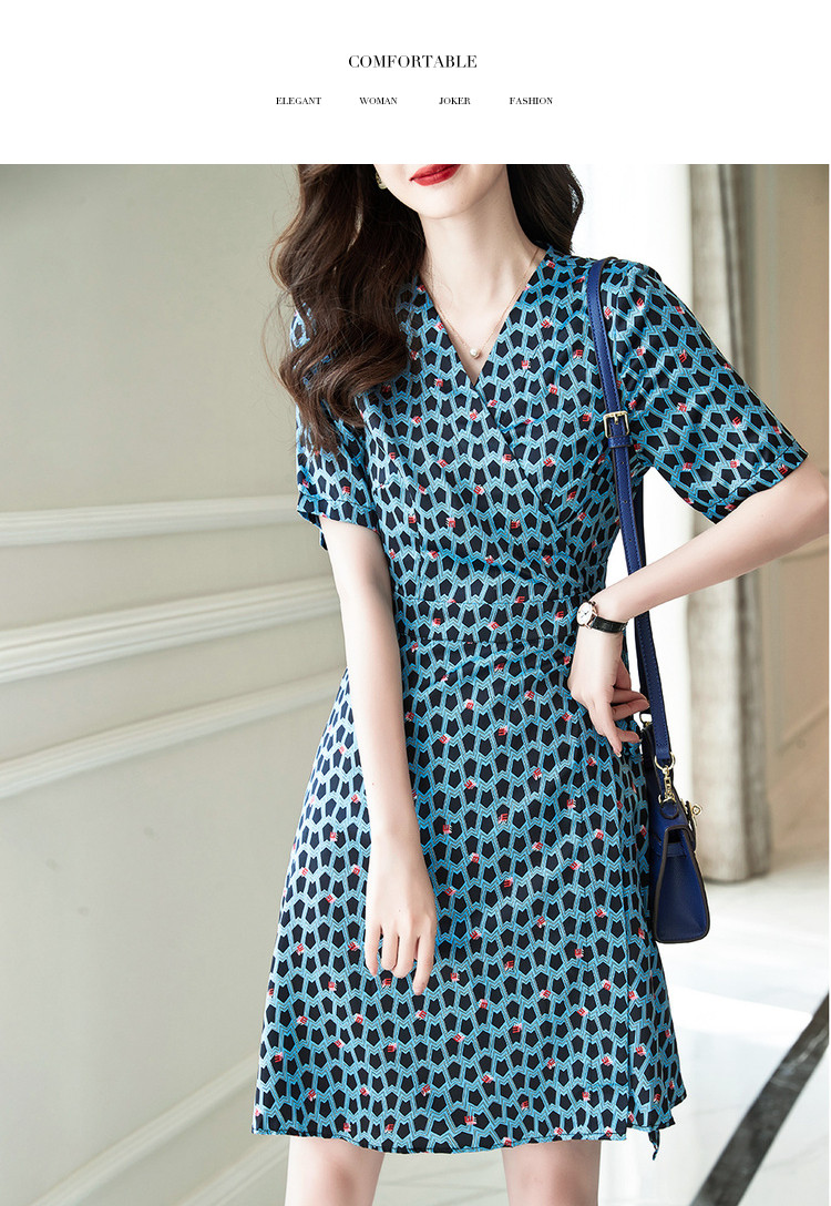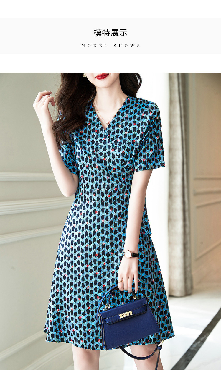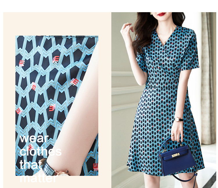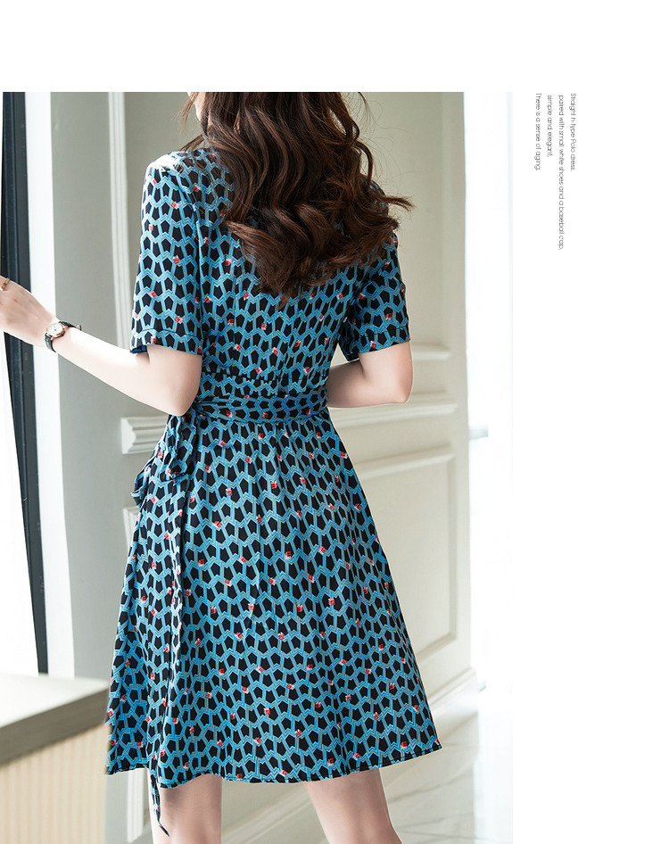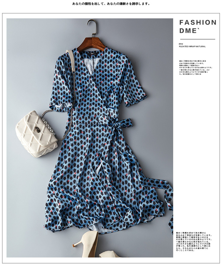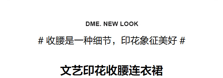 商品名称:【文艺印花】春秋V领收腰系带裙子连衣裙女 888193