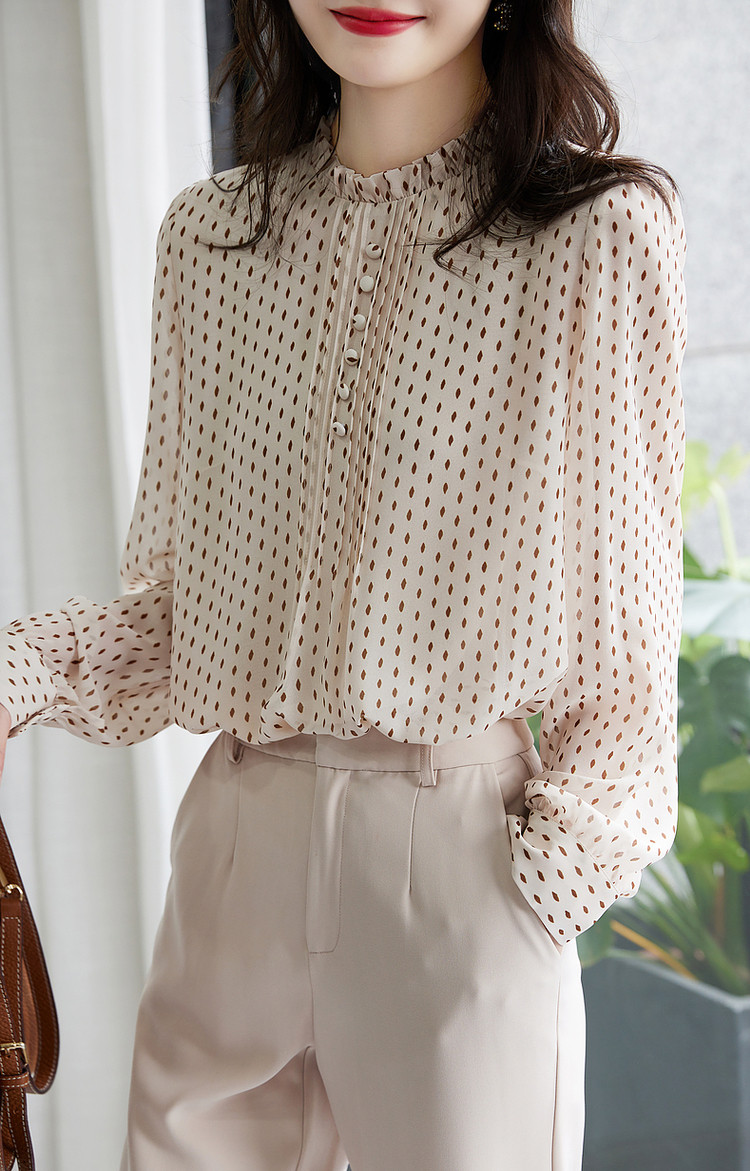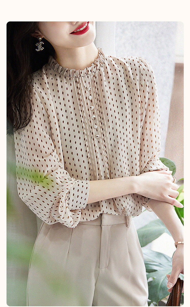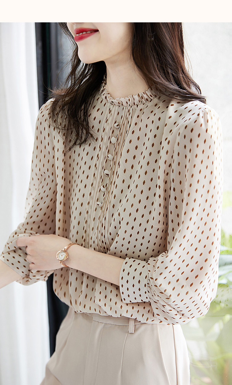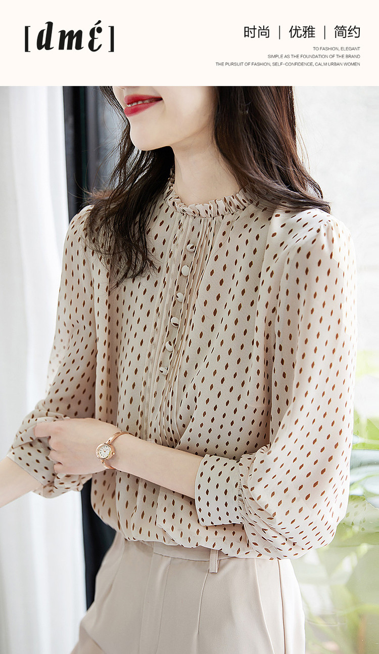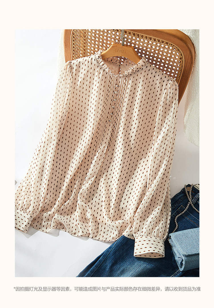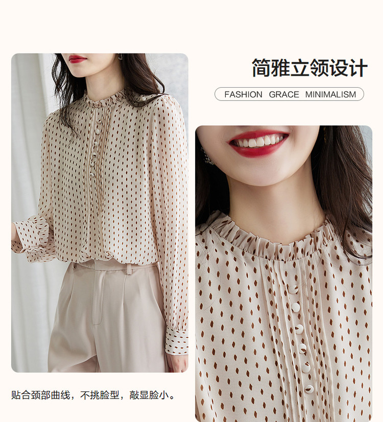 商品名称:【波点泡泡袖衬衫】春秋立领合体长袖通勤衬衣女装上衣 981697
