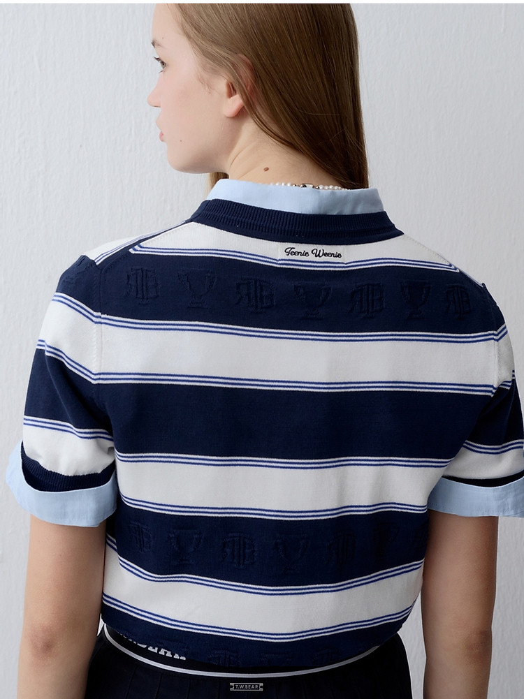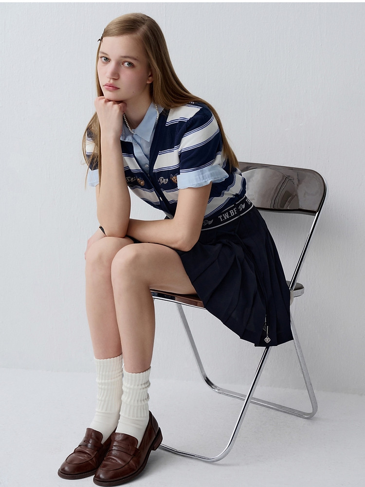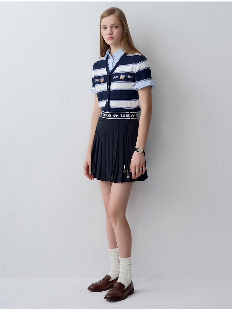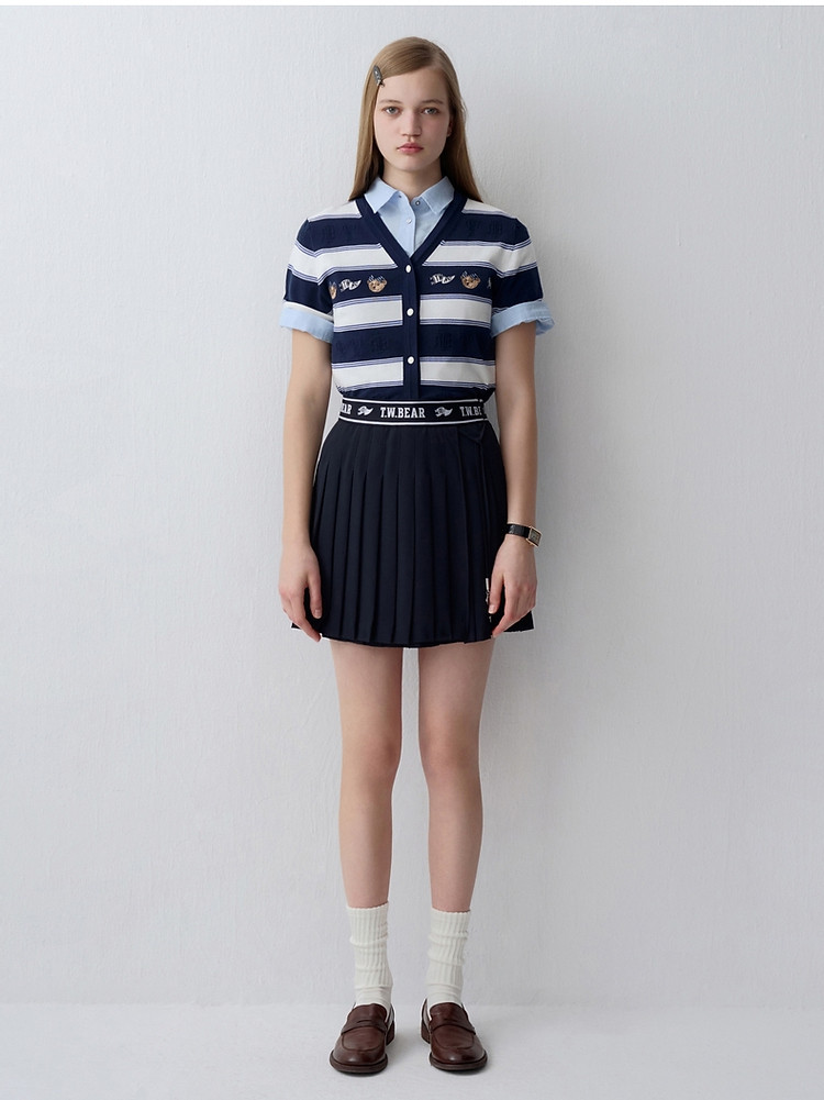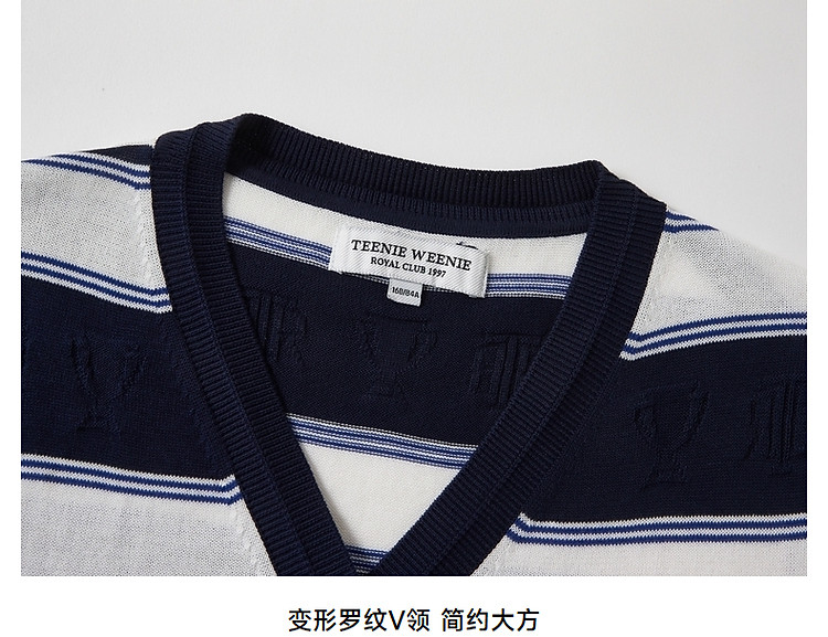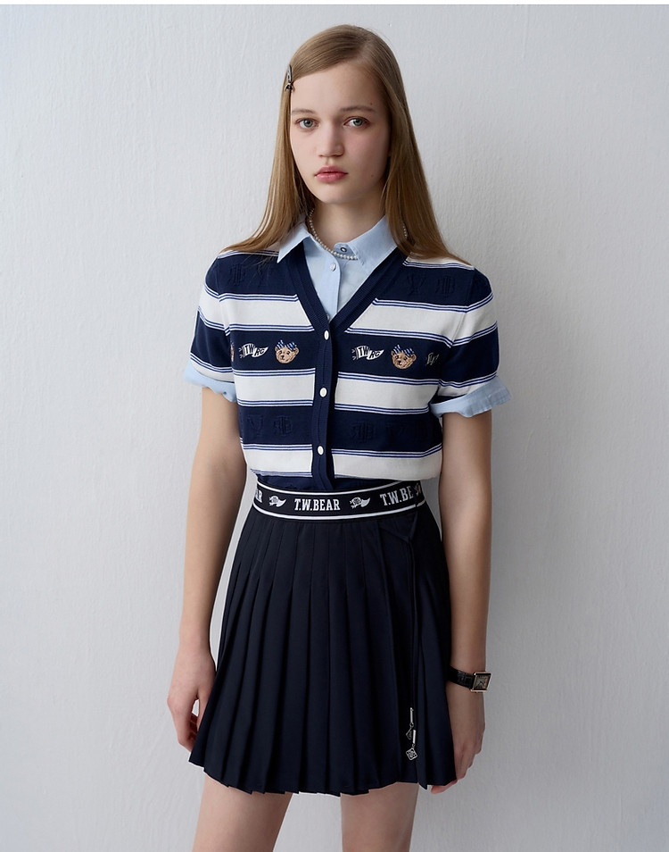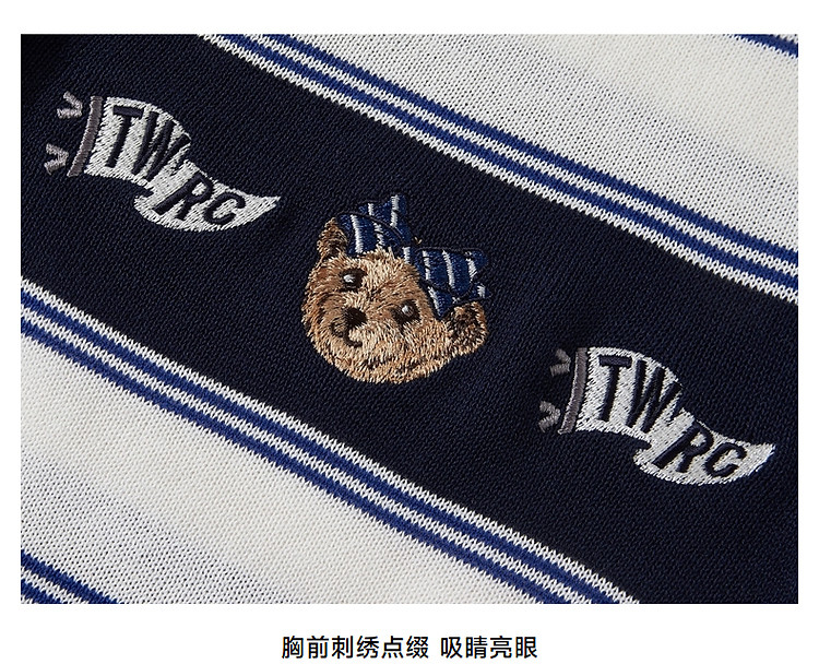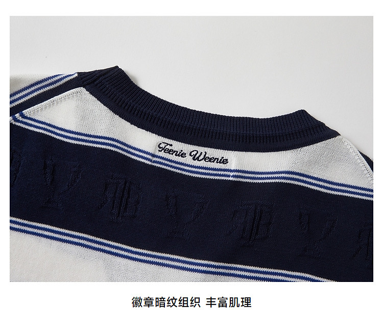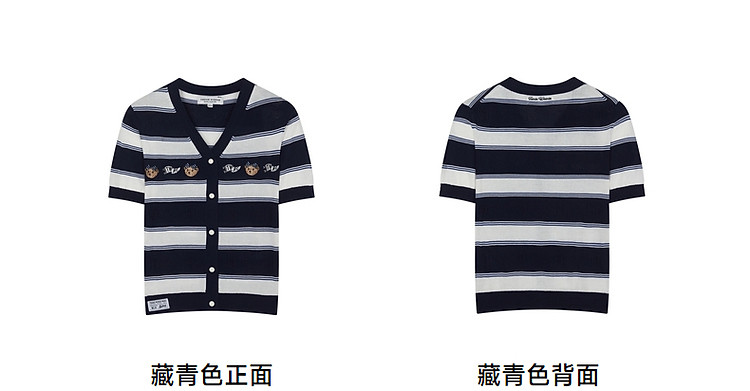 商品名称:小熊女装款夏季个性条纹V领针织开衫短袖毛衫 486593
