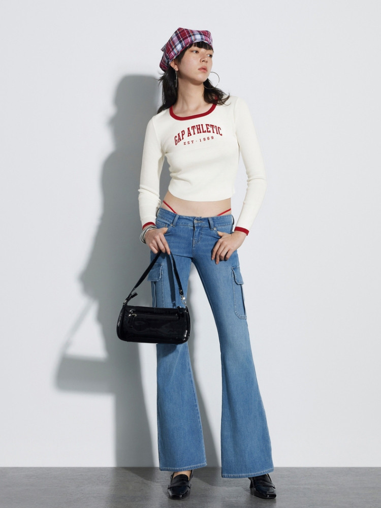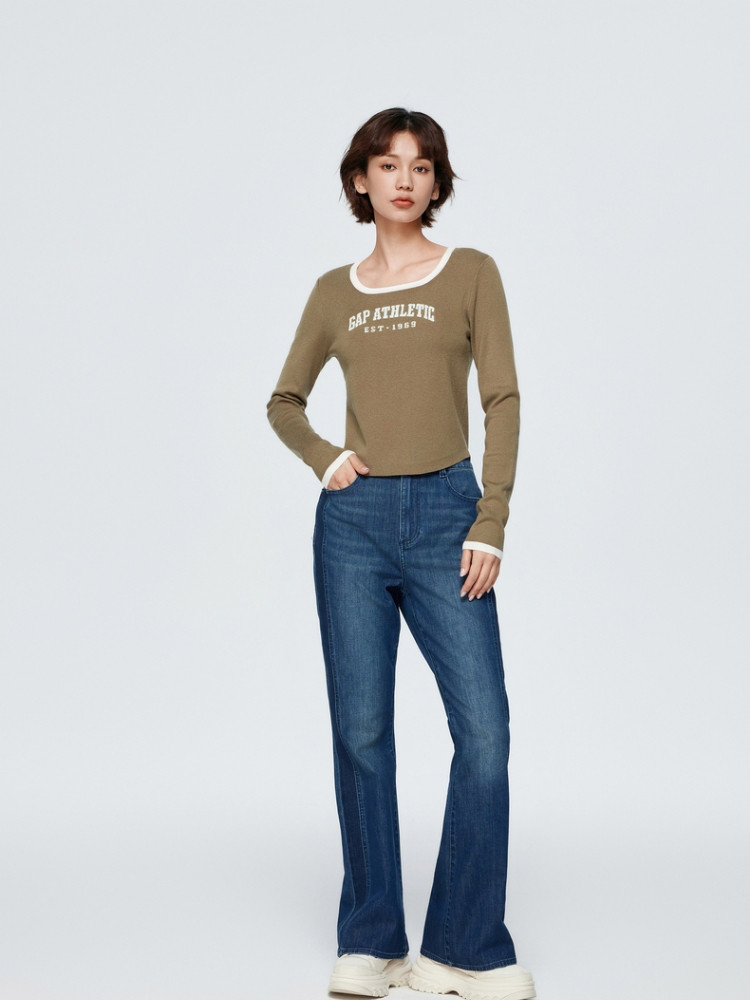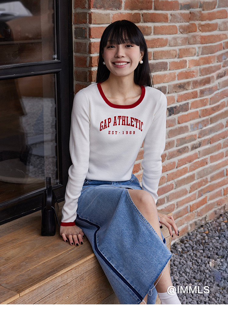 Gap女装春夏款LOGO提花休闲复古紧身圆领针织衫891639上衣 794970