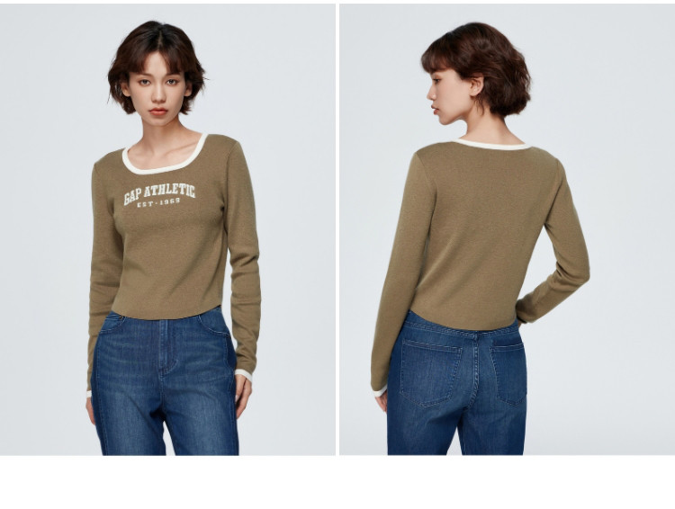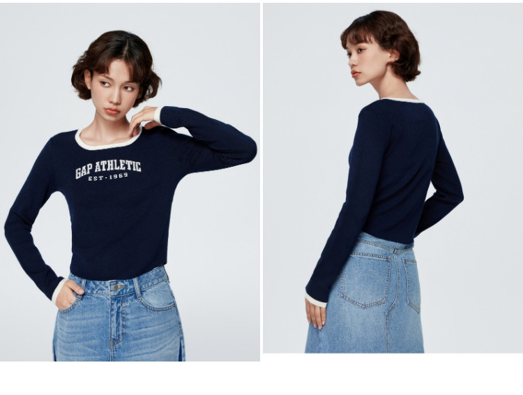 商品名称:Gap女装春夏款LOGO提花休闲复古紧身圆领针织衫891639上衣 794970