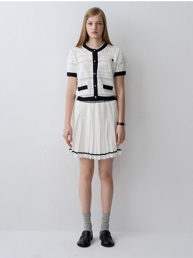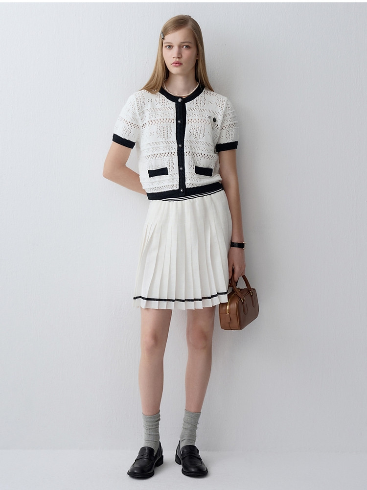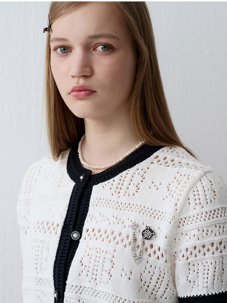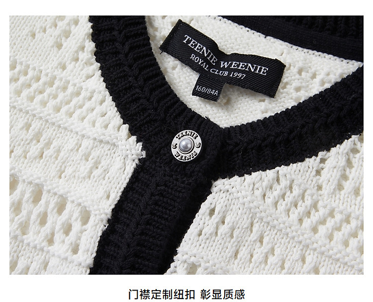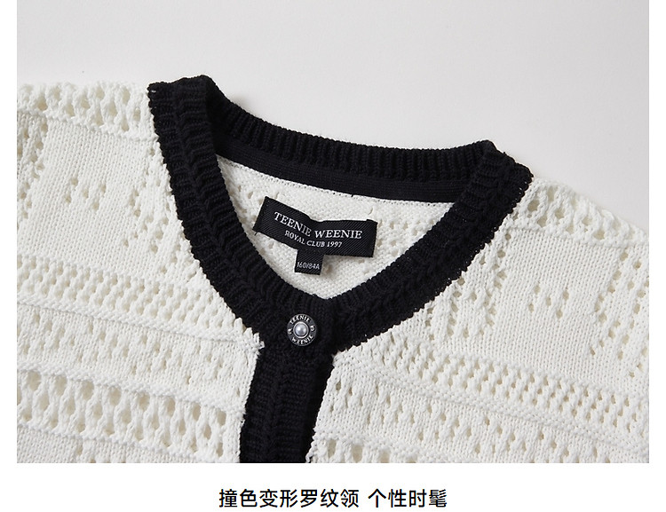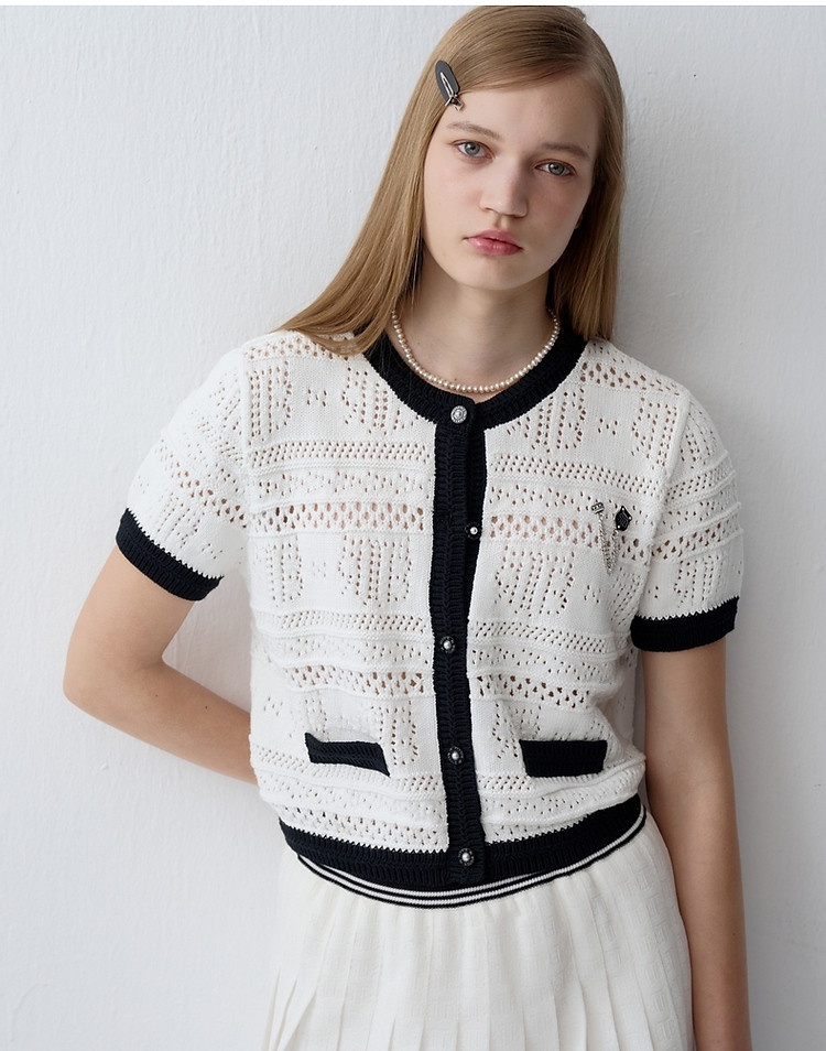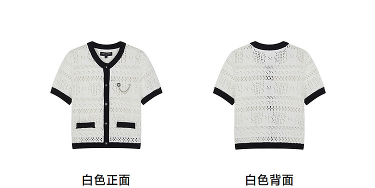 商品名称:小熊款夏季镂空肌理感撞色圆领短袖针织开衫女装 779905