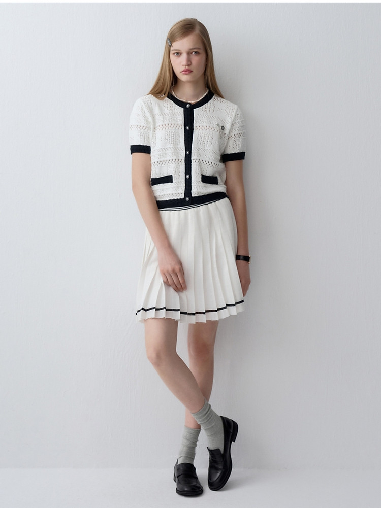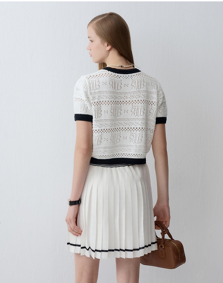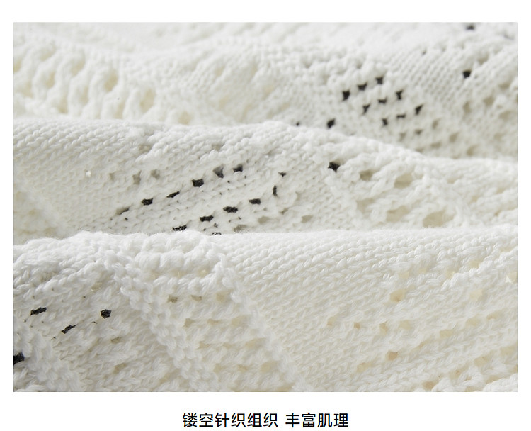 小熊款夏季镂空肌理感撞色圆领短袖针织开衫女装 779905