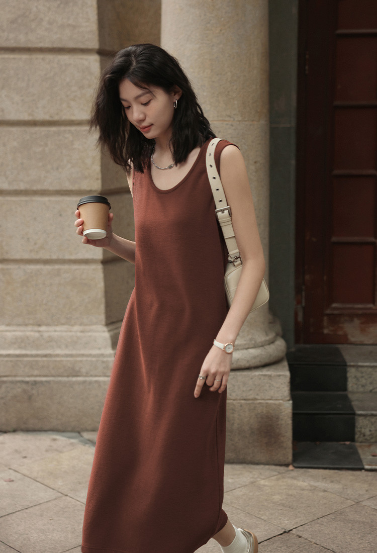 商品名称:【复古休闲背心裙】夏U领无袖基础百搭中长款连衣裙 994178