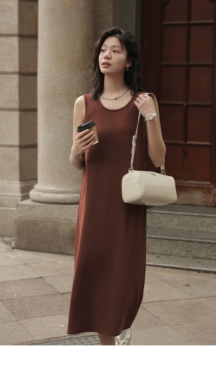 【复古休闲背心裙】夏U领无袖基础百搭中长款连衣裙 994178