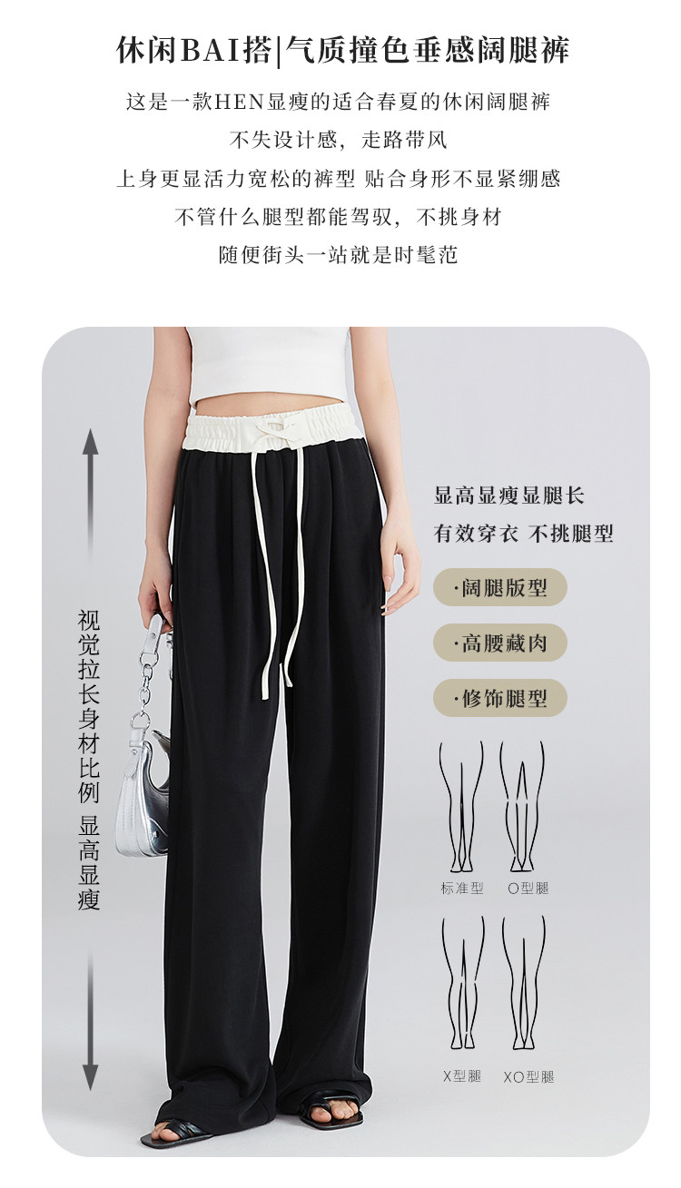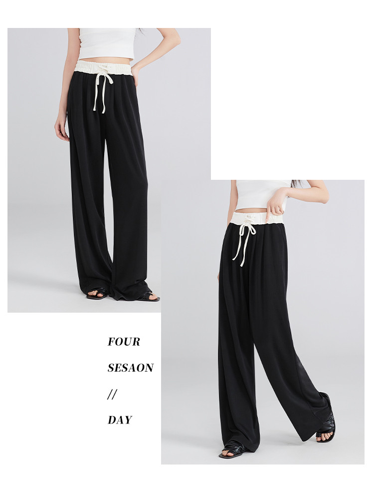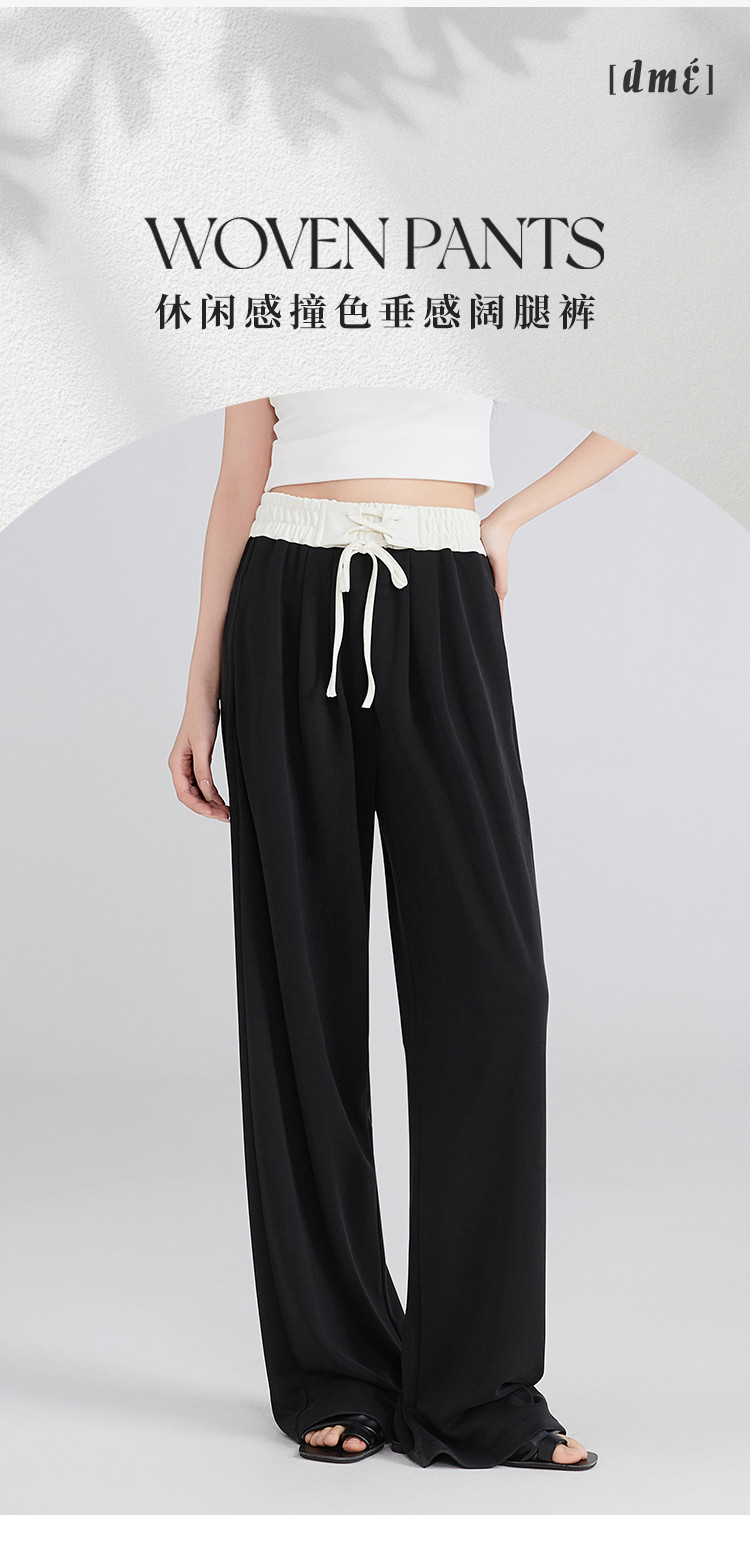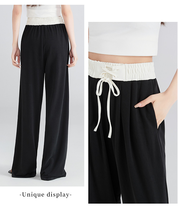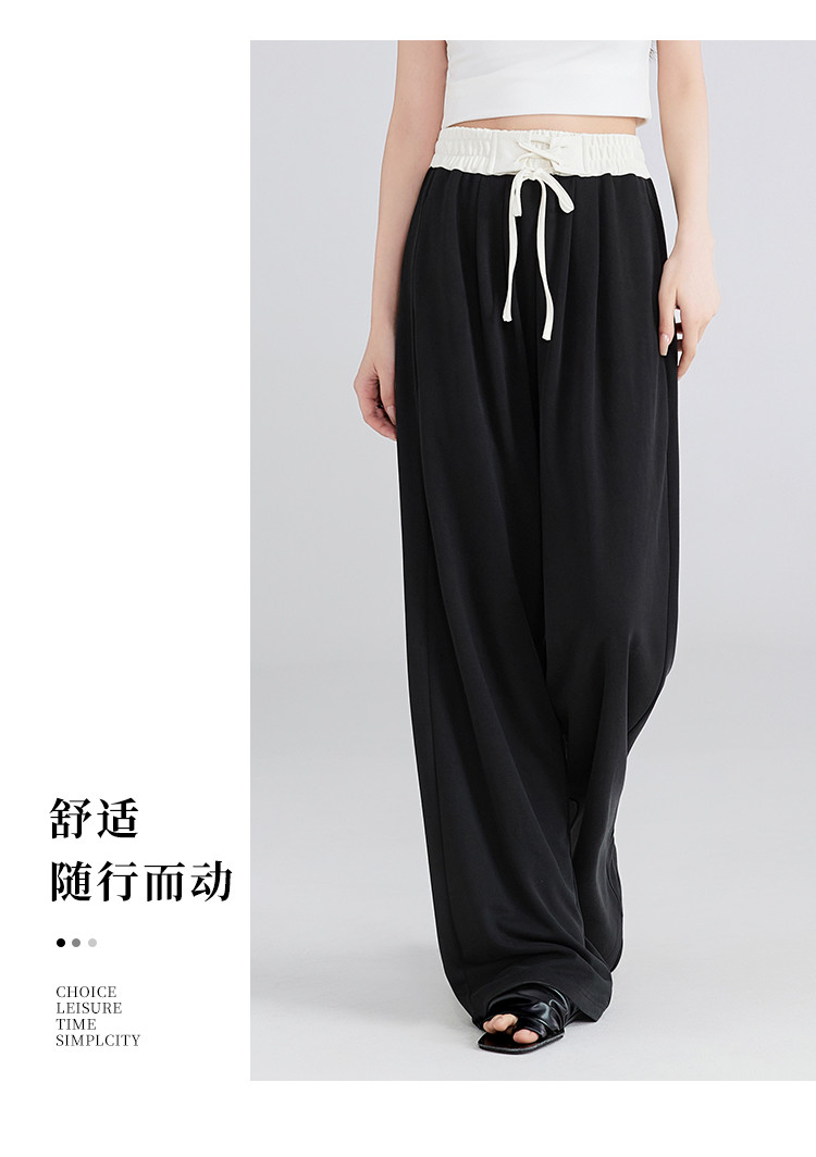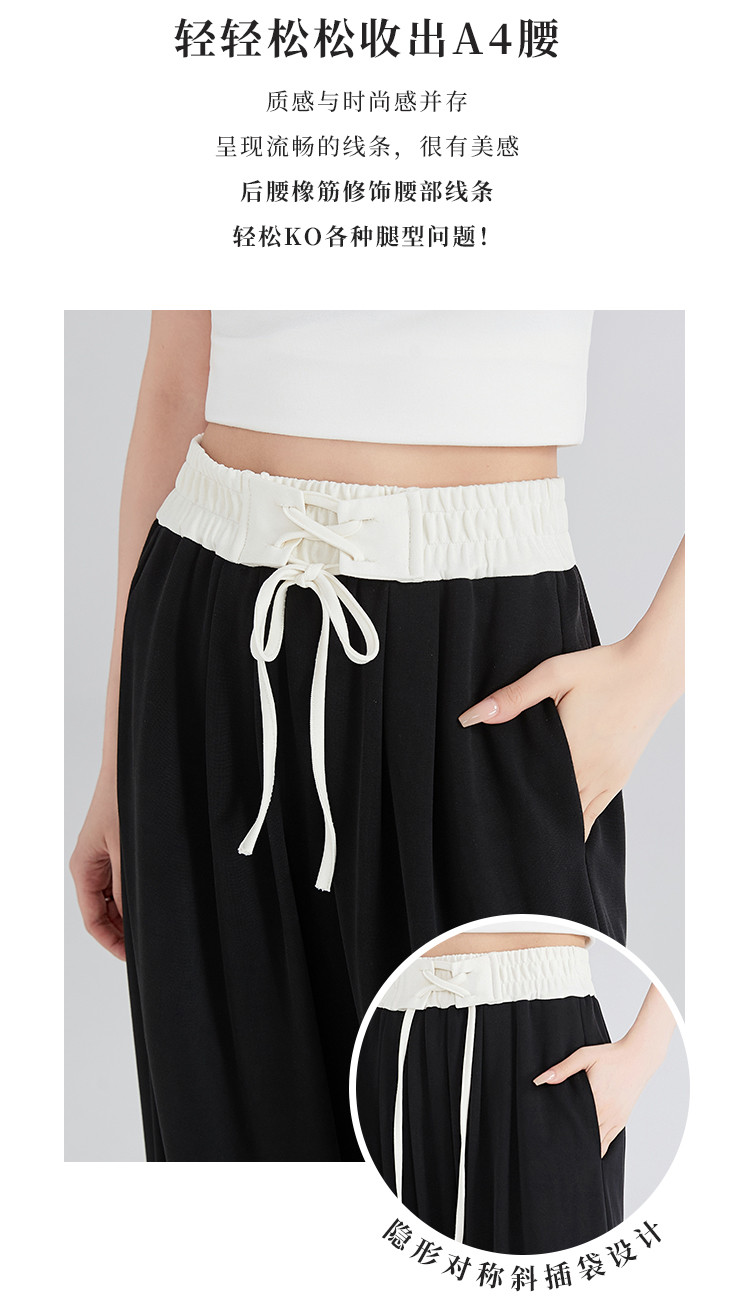 商品名称:【磨毛亲肤】垂顺撞色拼接&交叉绑带小众设计高腰阔腿女款长裤 128065