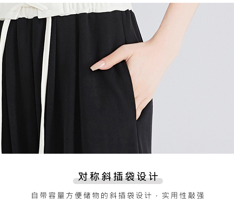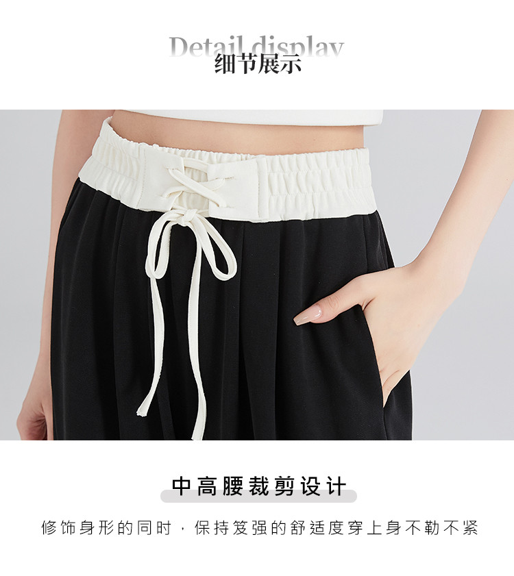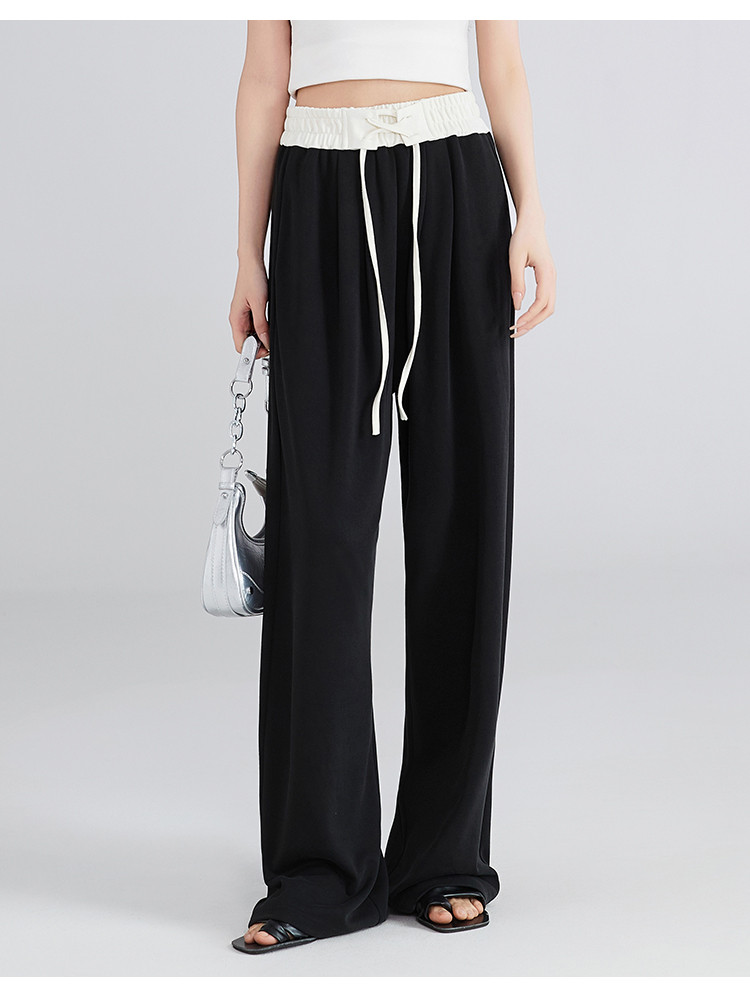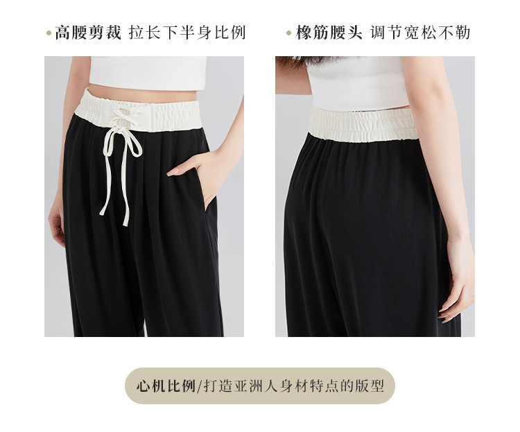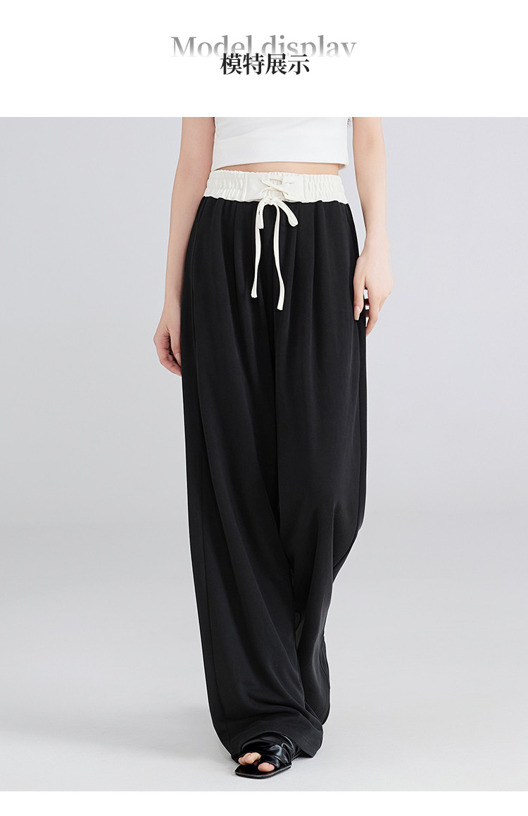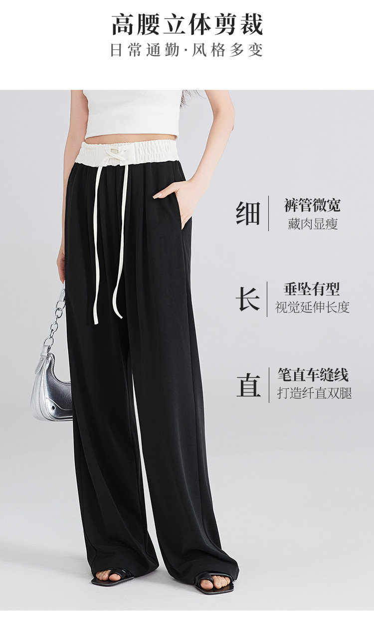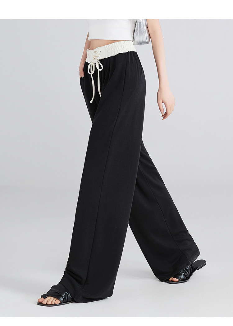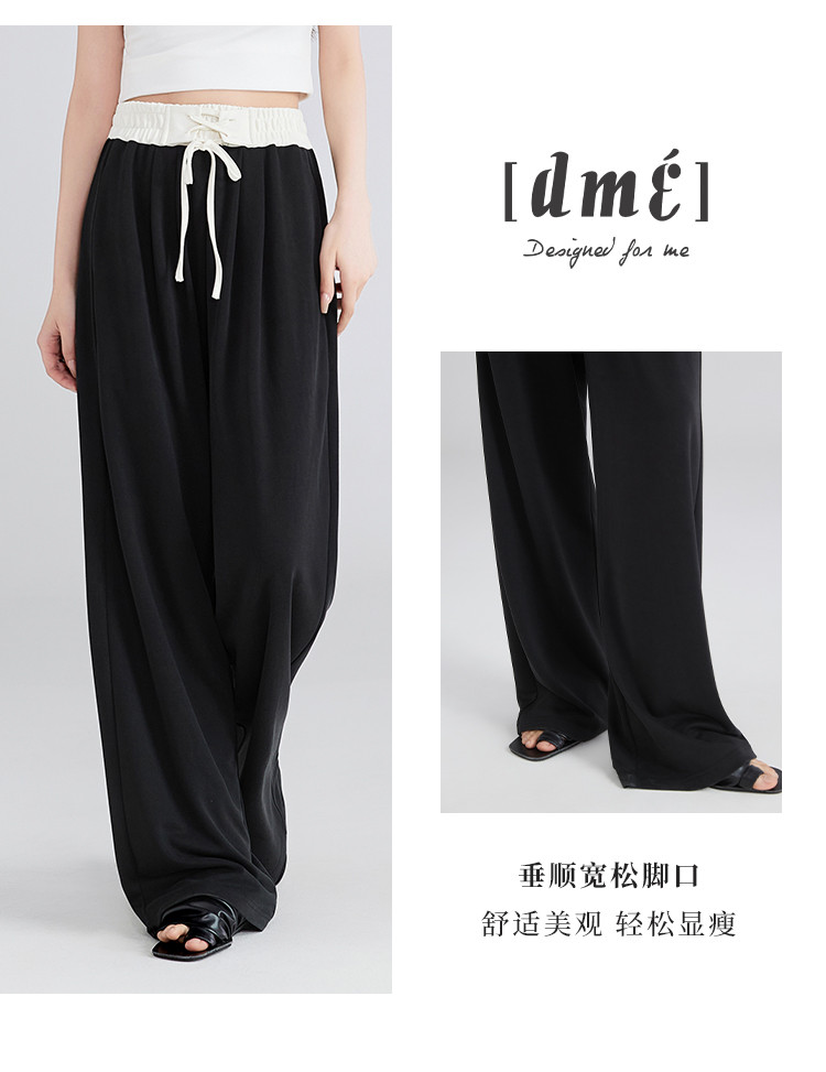 商品名称:【磨毛亲肤】垂顺撞色拼接&交叉绑带小众设计高腰阔腿女款长裤 128065