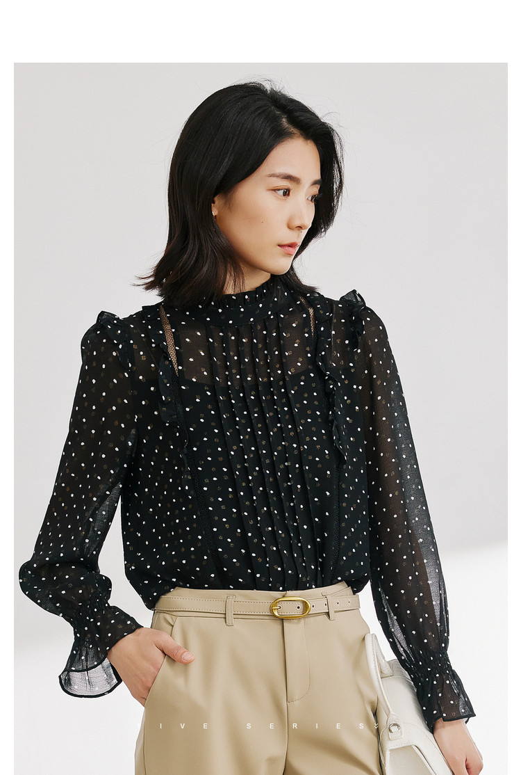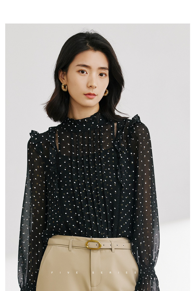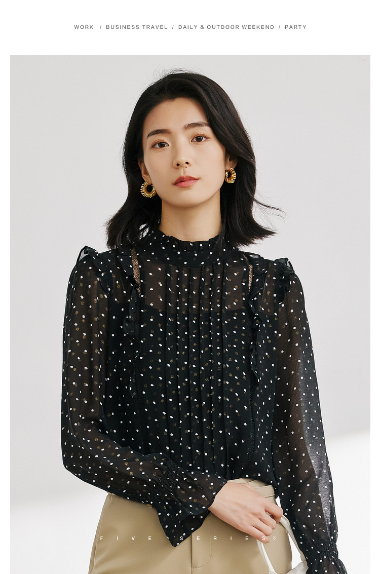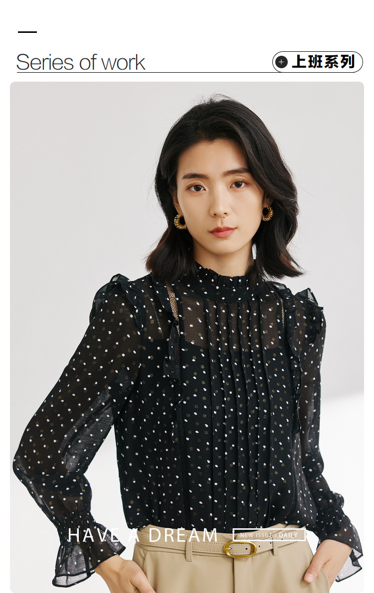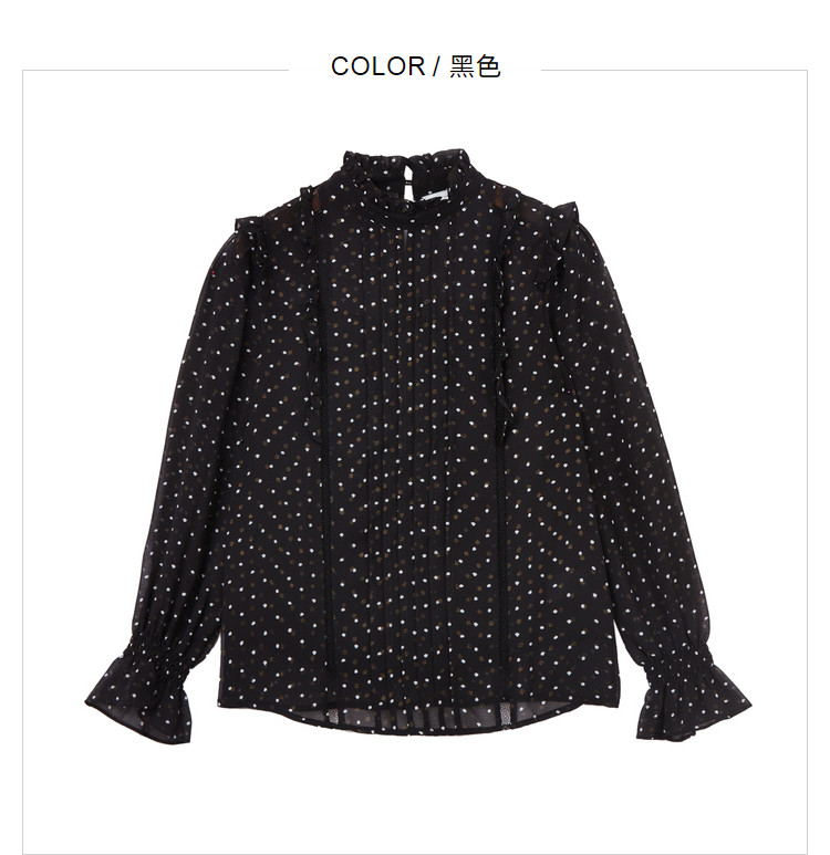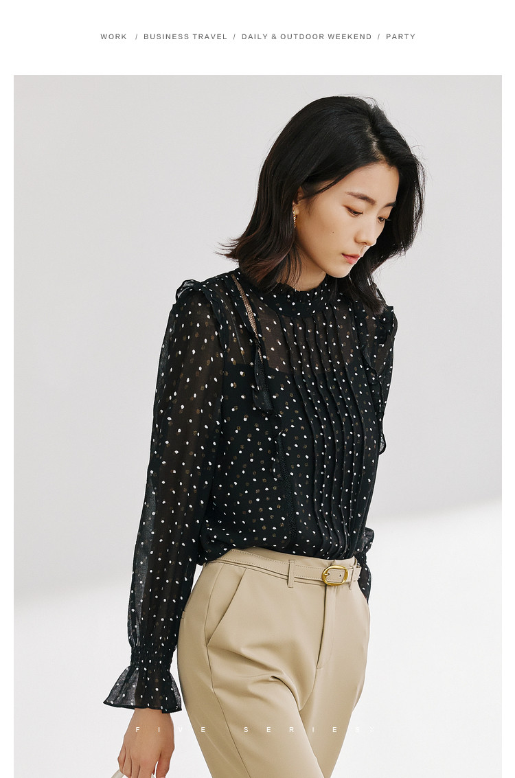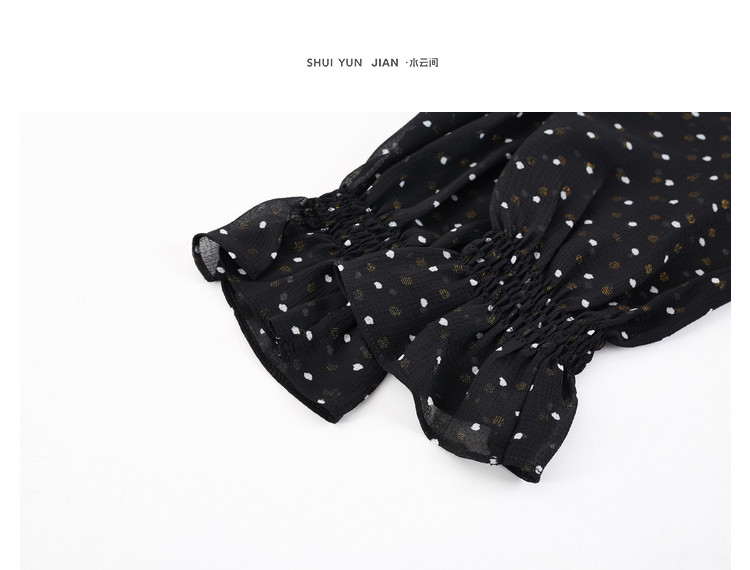 商品名称:气质波点雪纺衫女薄款通勤设计感小众百搭显瘦黑色长袖衬衫女 656515