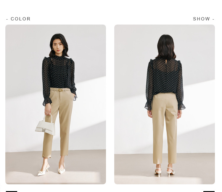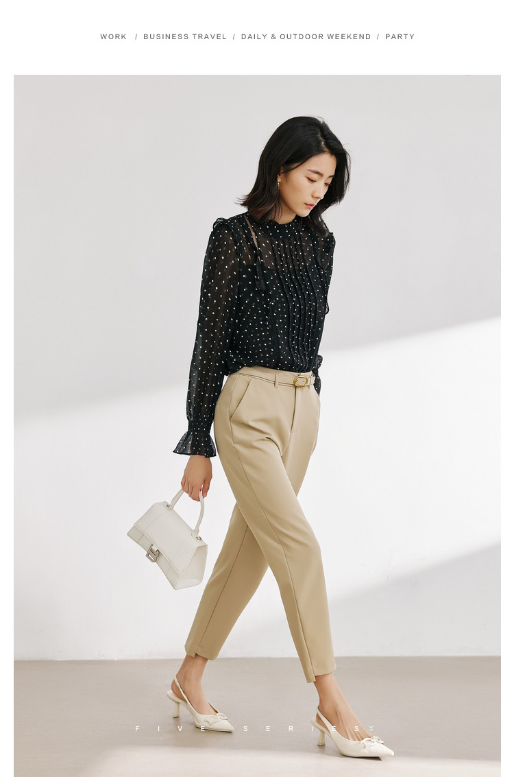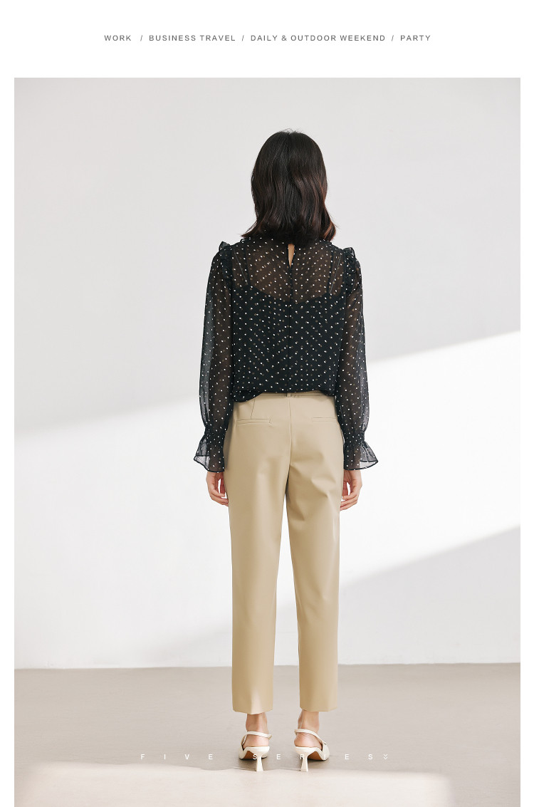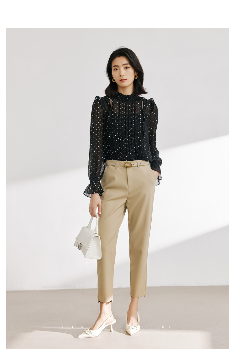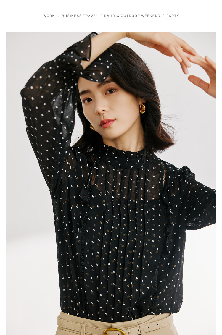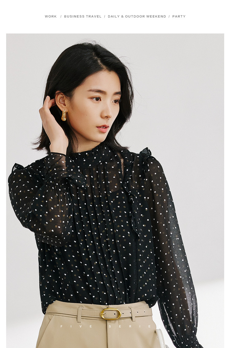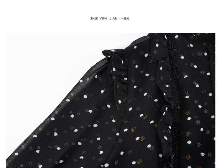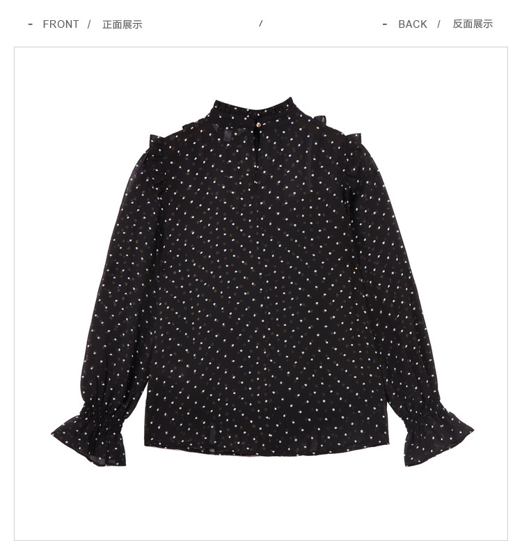 商品名称:气质波点雪纺衫女薄款通勤设计感小众百搭显瘦黑色长袖衬衫女 656515