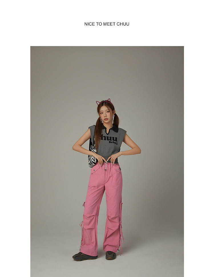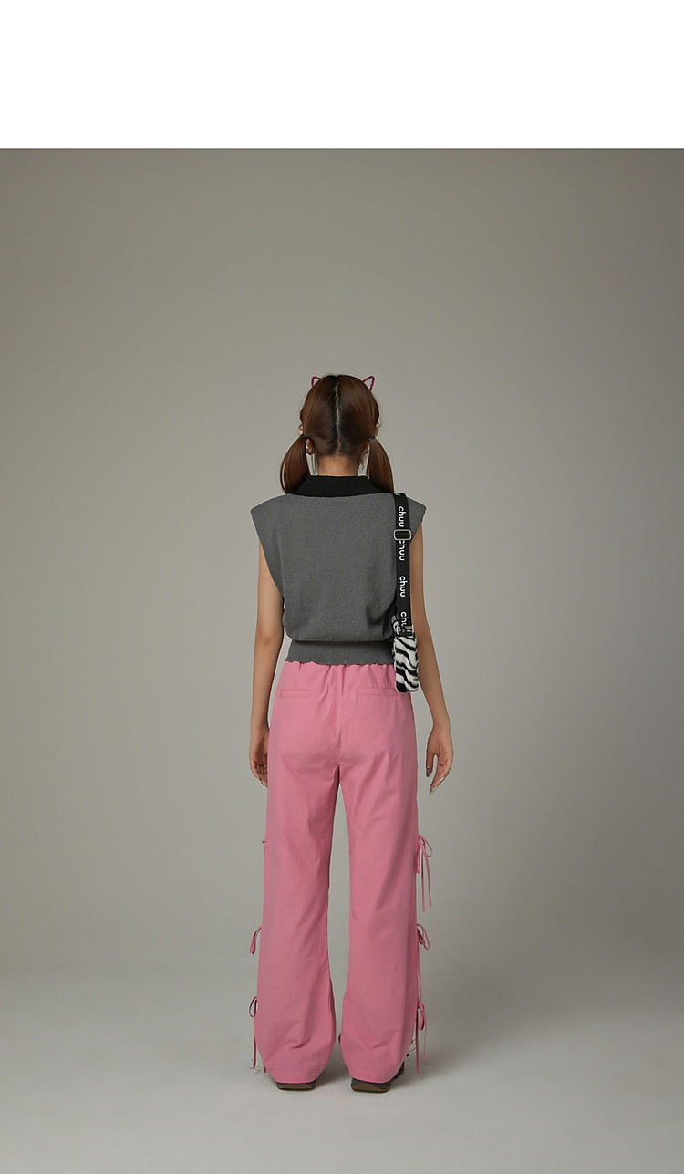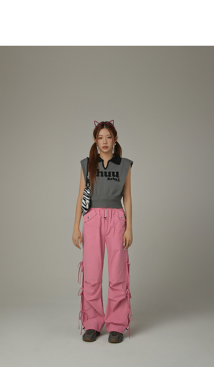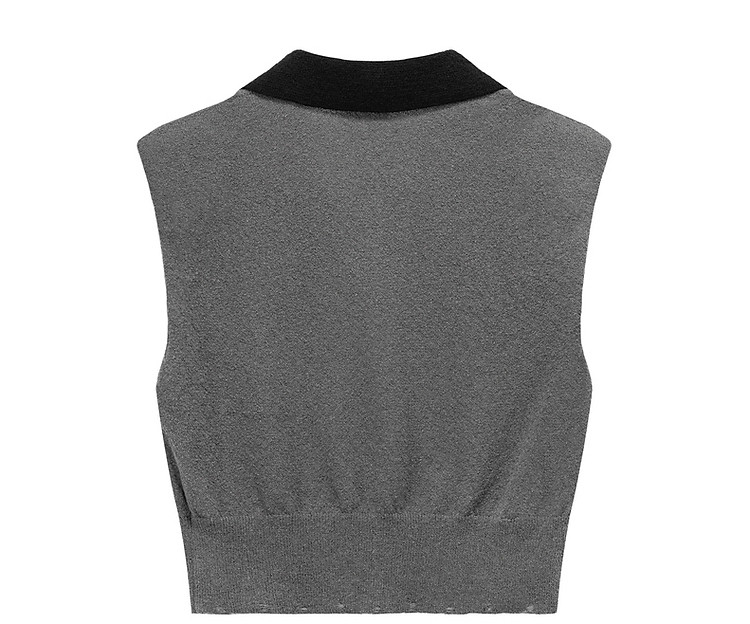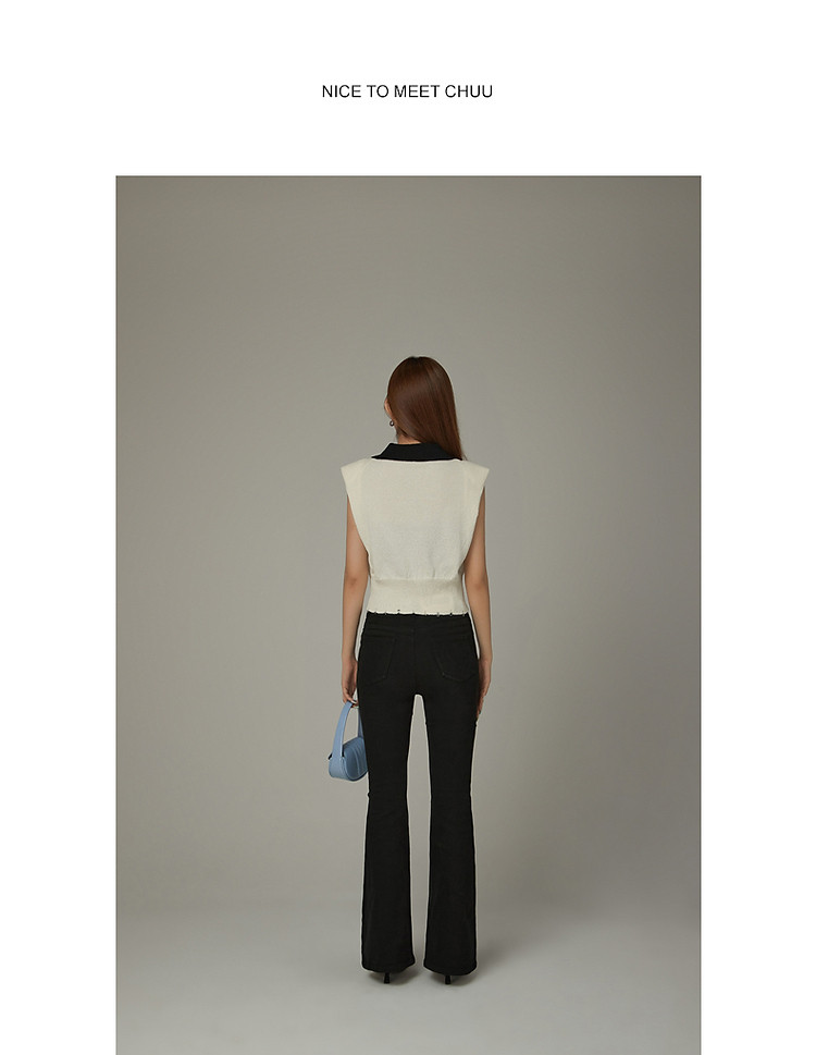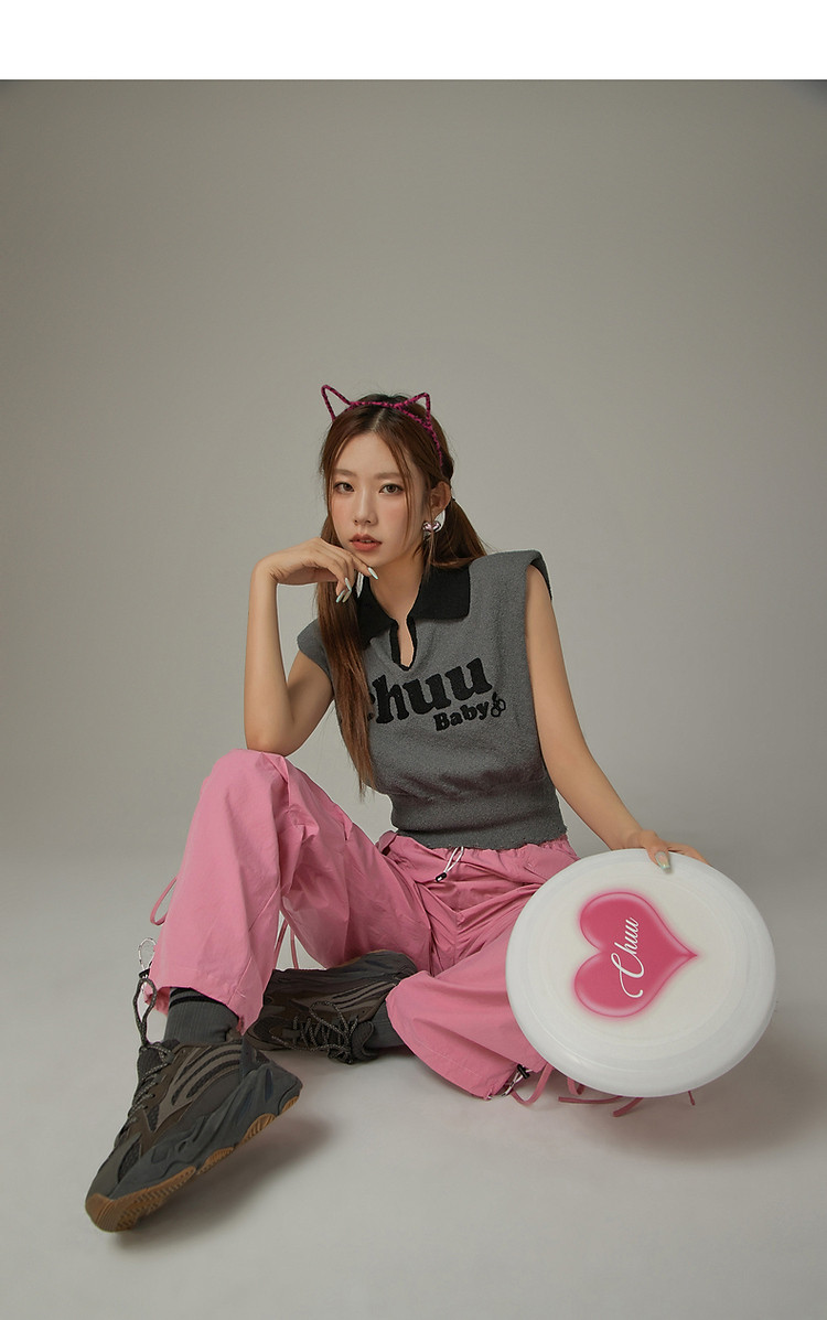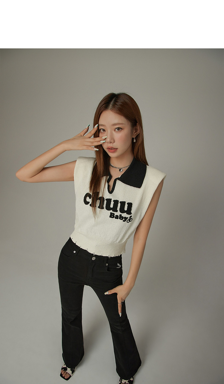 商品名称:CHUU马甲针织衫女春秋小樱桃字母提花做旧破洞上衣 045011