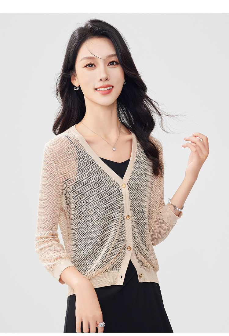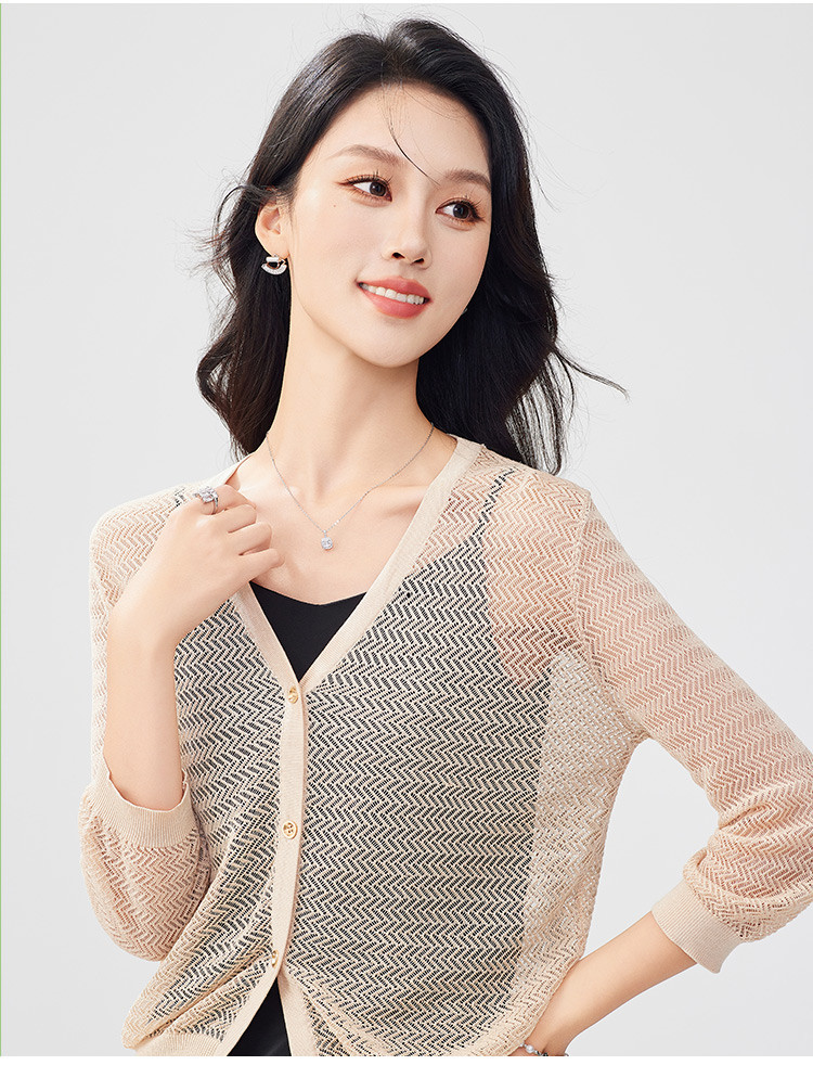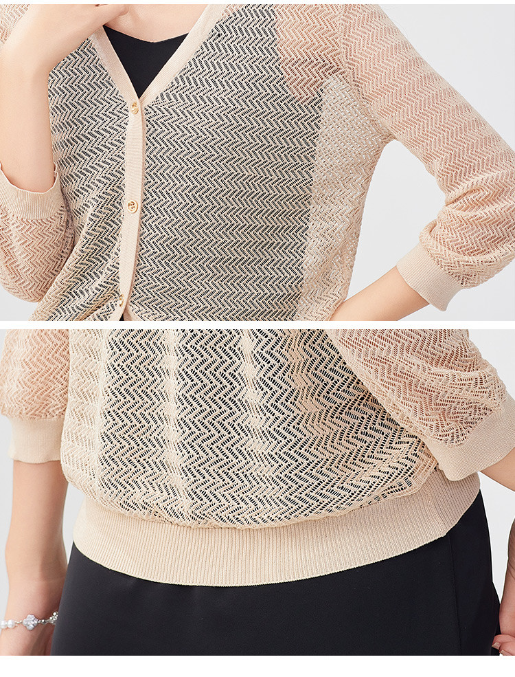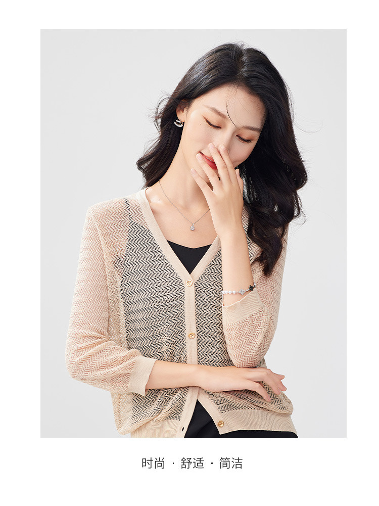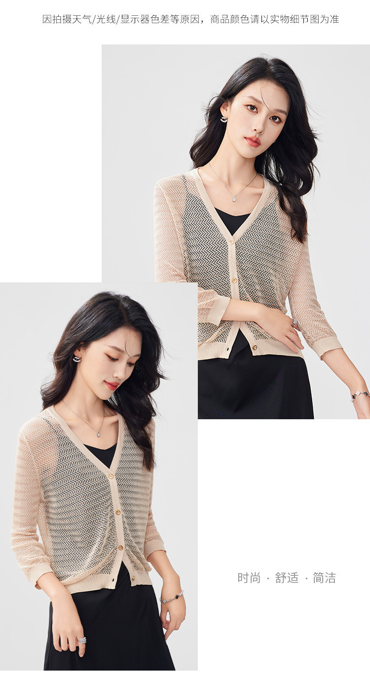 商品名称:【含桑蚕丝含莱赛尔】V领披肩外搭镂空空调衫薄款外套女轻薄夏季 245919