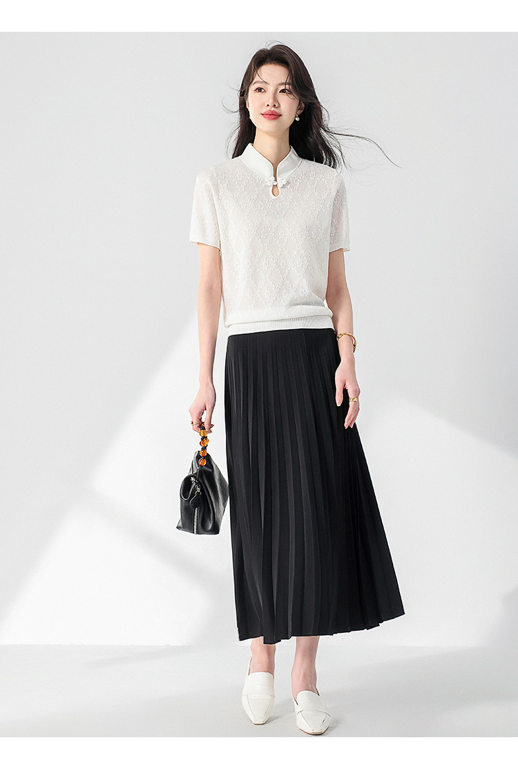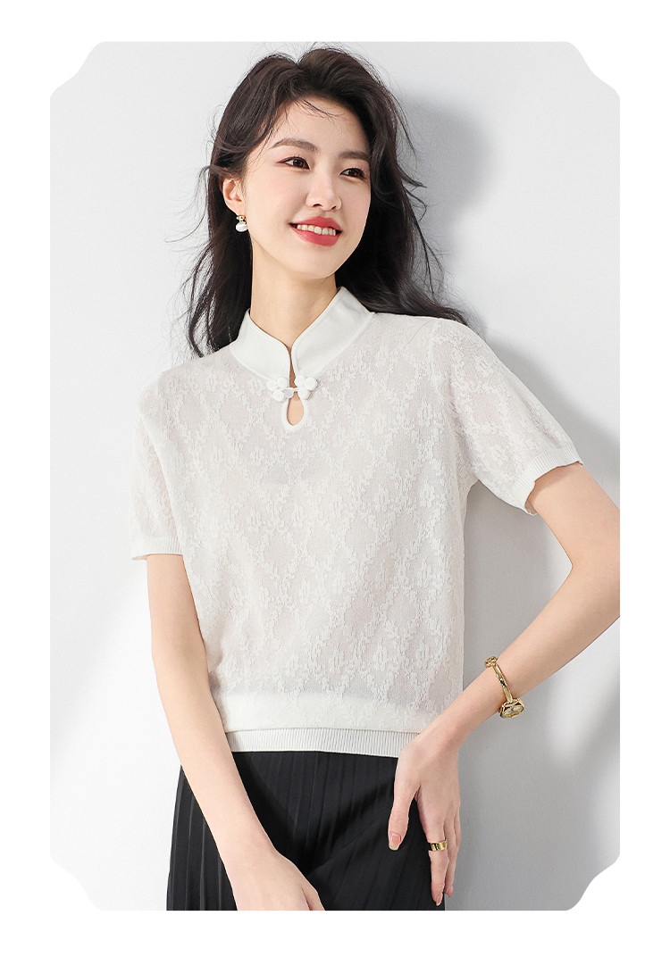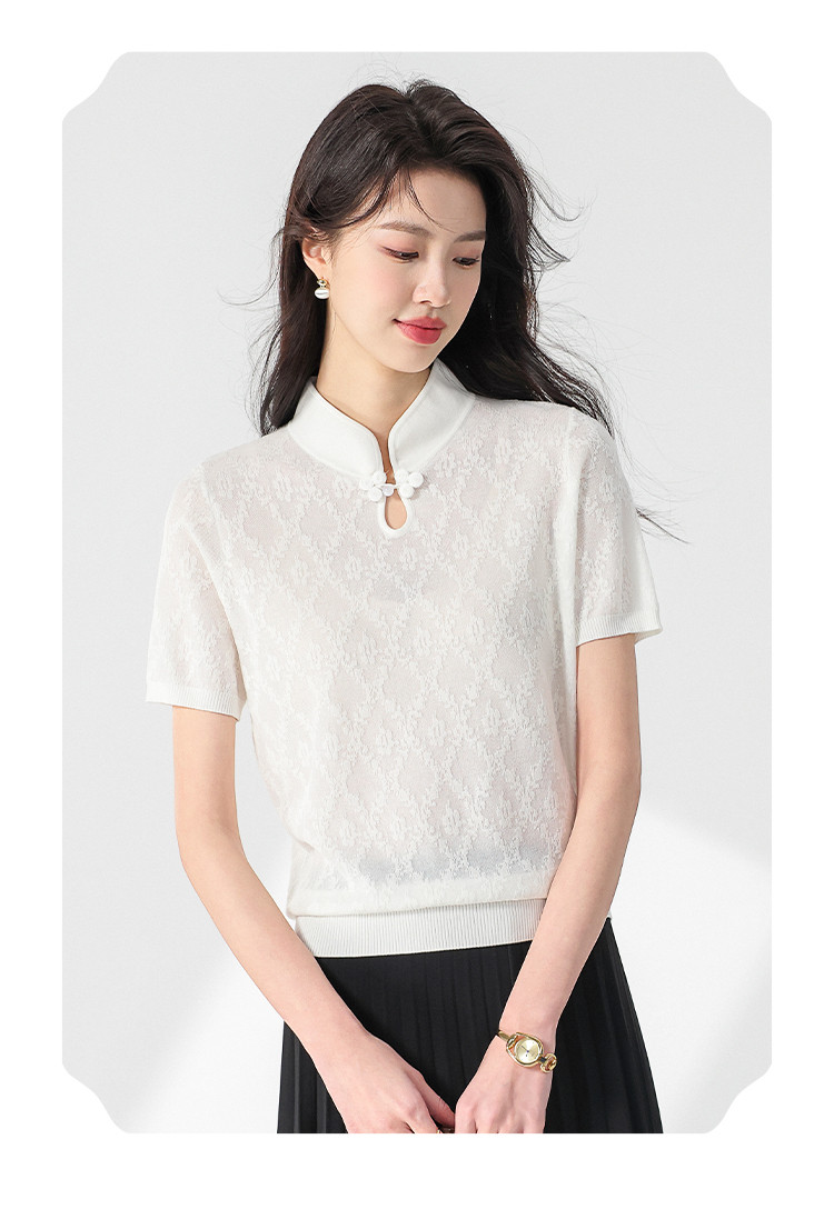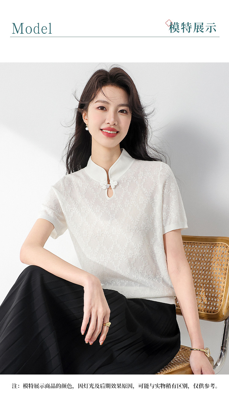 商品名称:国风~轻薄透气含桑蚕丝立领打底衫短袖T恤针织衫女夏妈妈装上衣 293267