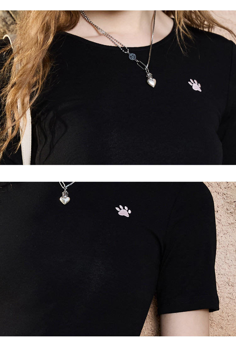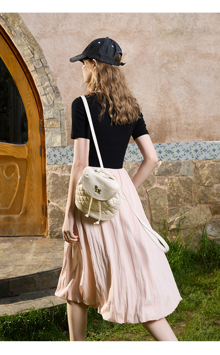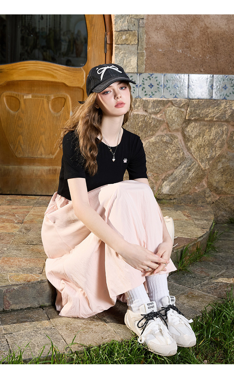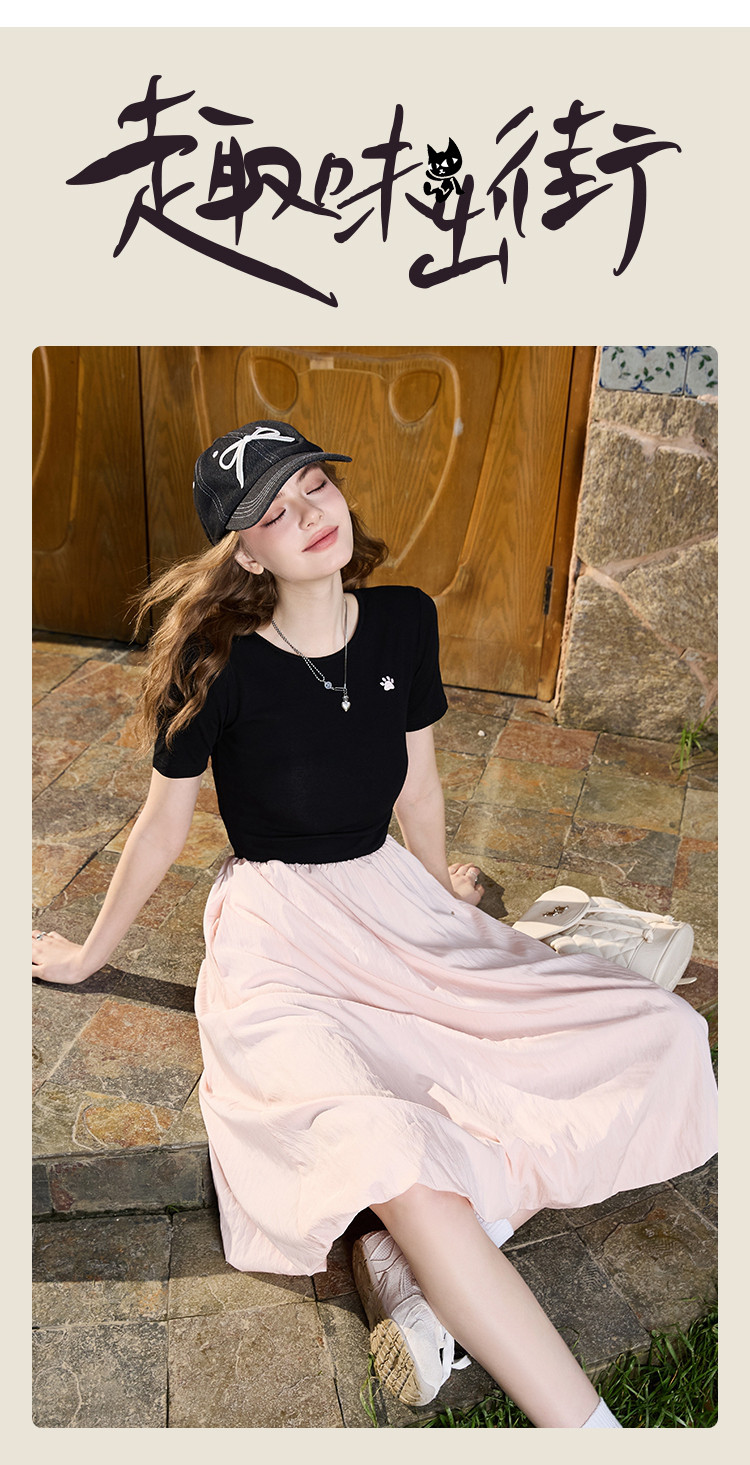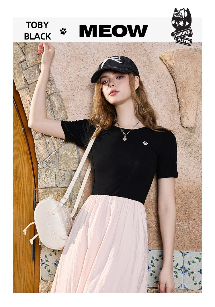 针织拼接假两件法式设计花苞中长裙夏季气质短袖连衣裙 179997