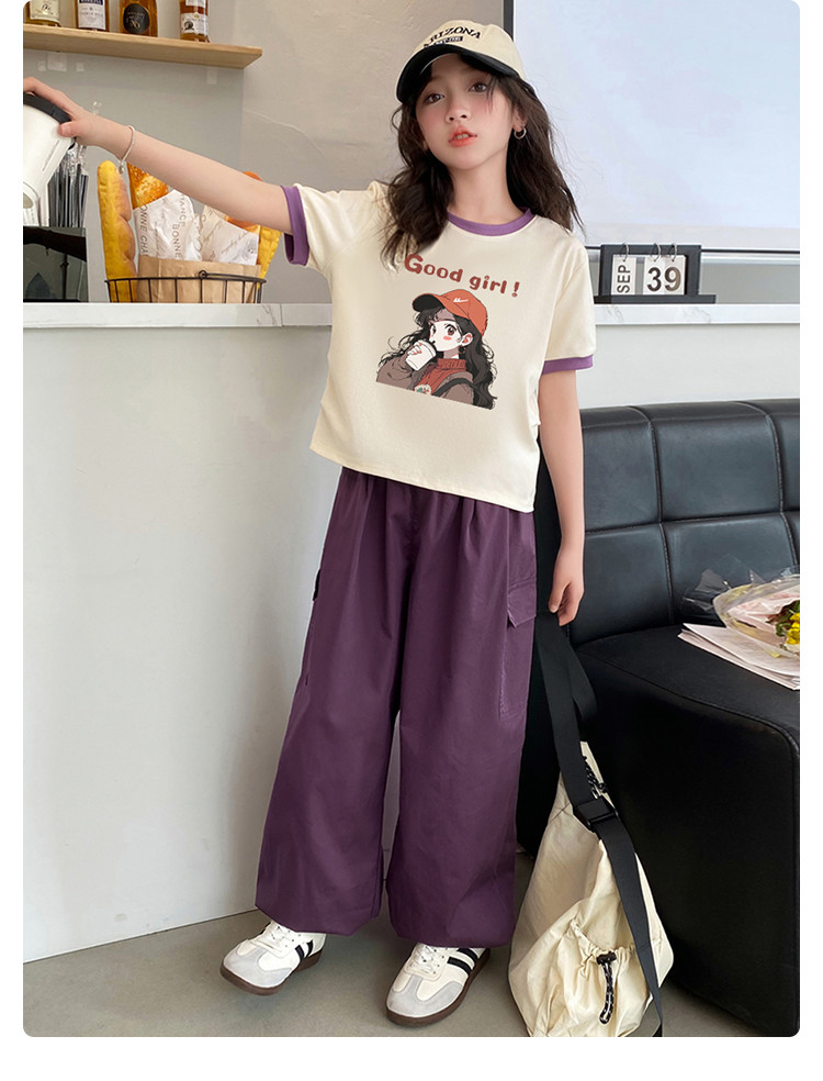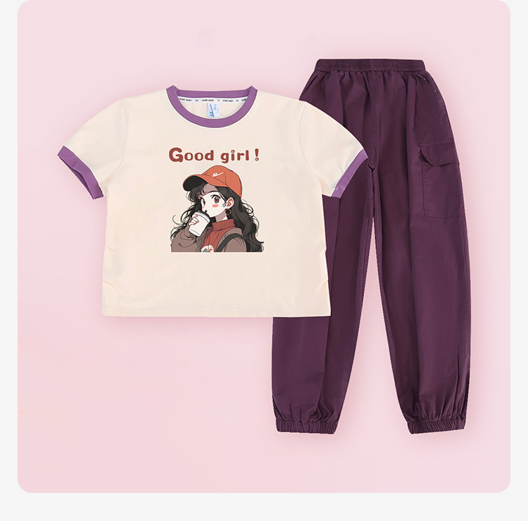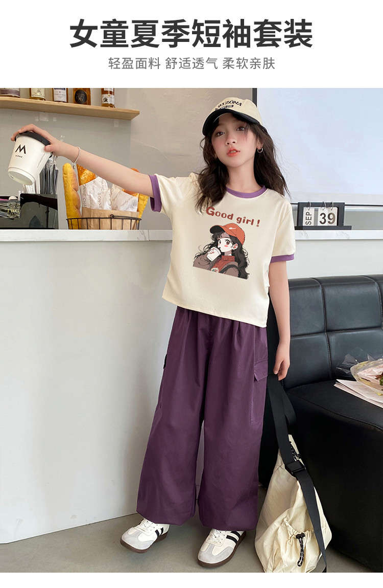 商品名称:童装女童套装24夏季儿童中大童时尚短袖长裤两件套休闲百搭 955731