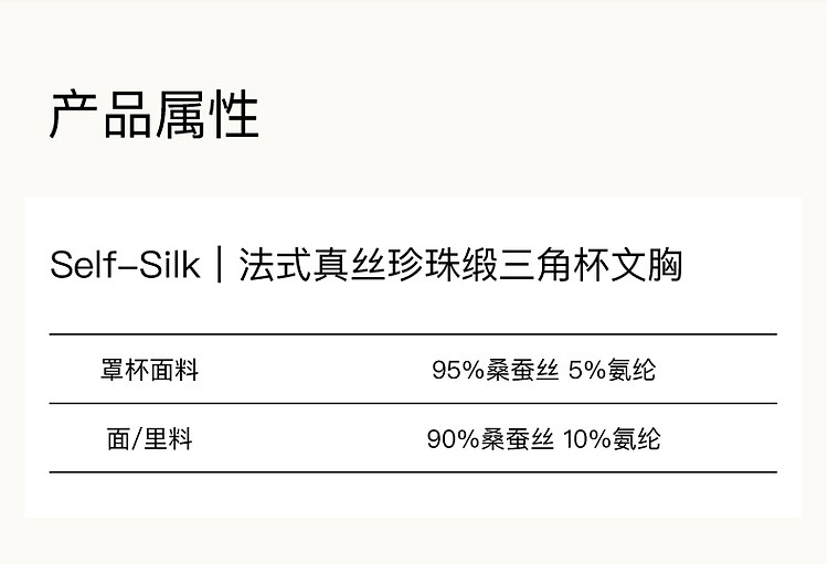商品名称:NEIWAI内外Self-Silk法式桑蚕丝珍珠缎三角杯文胸 555658