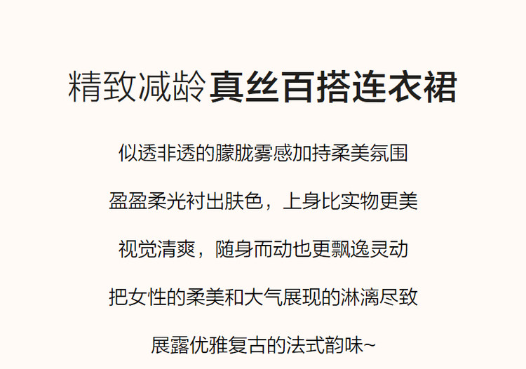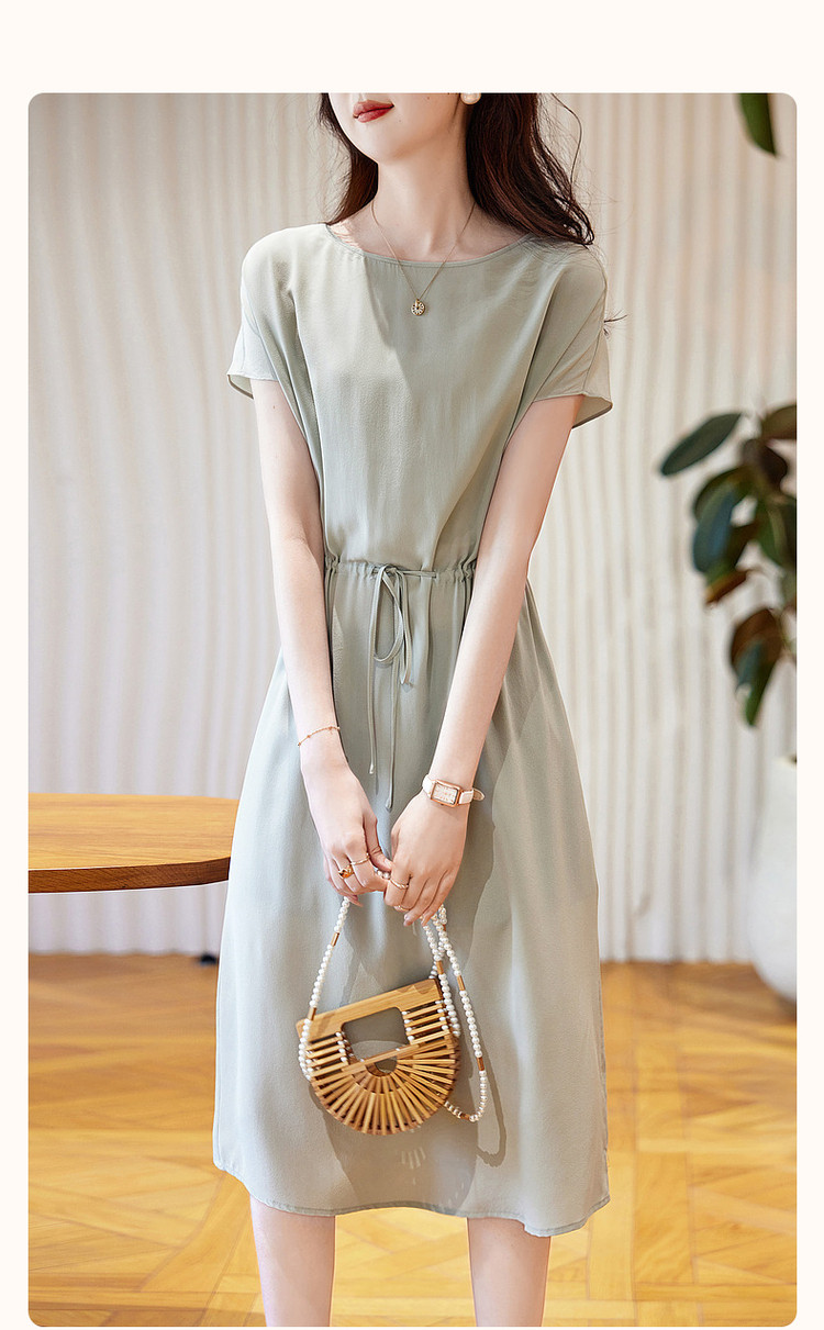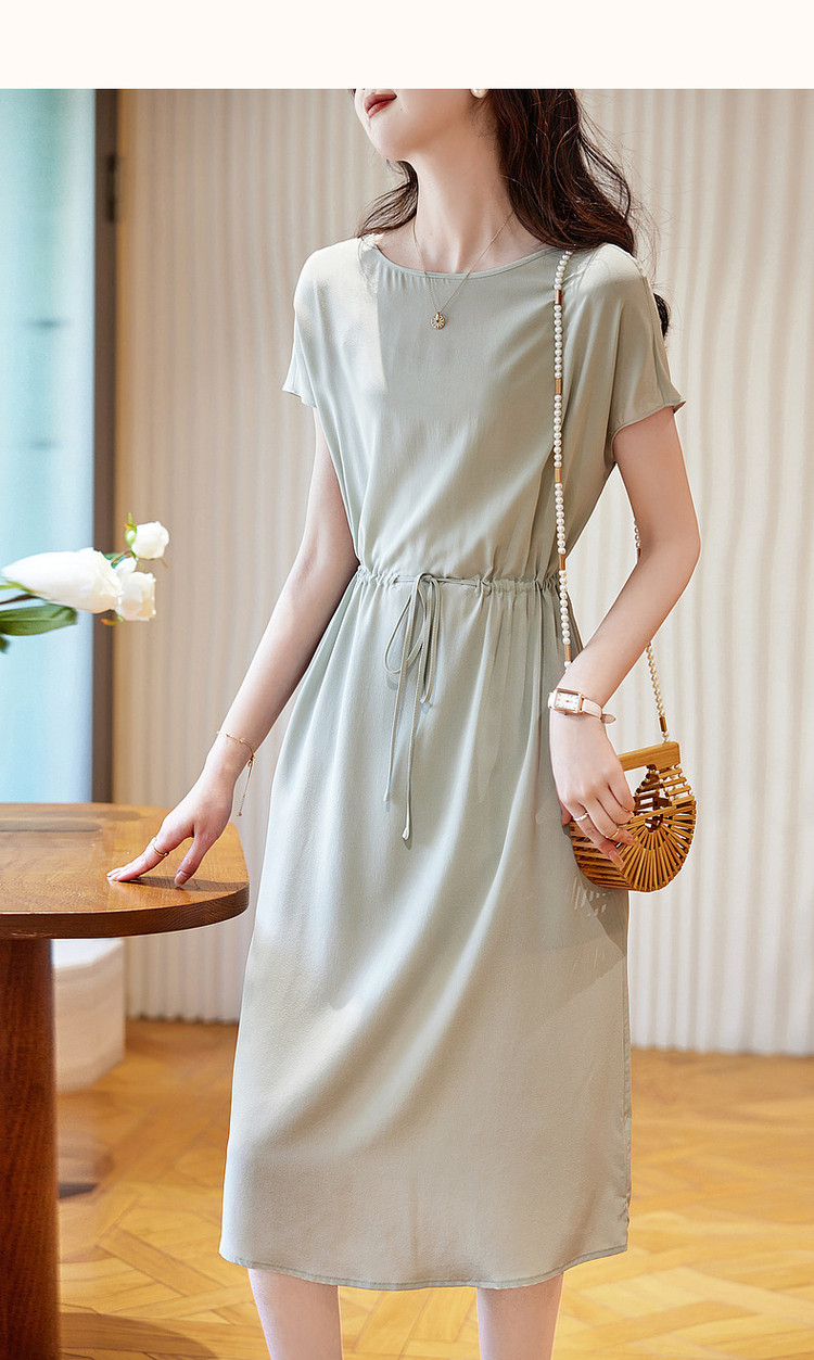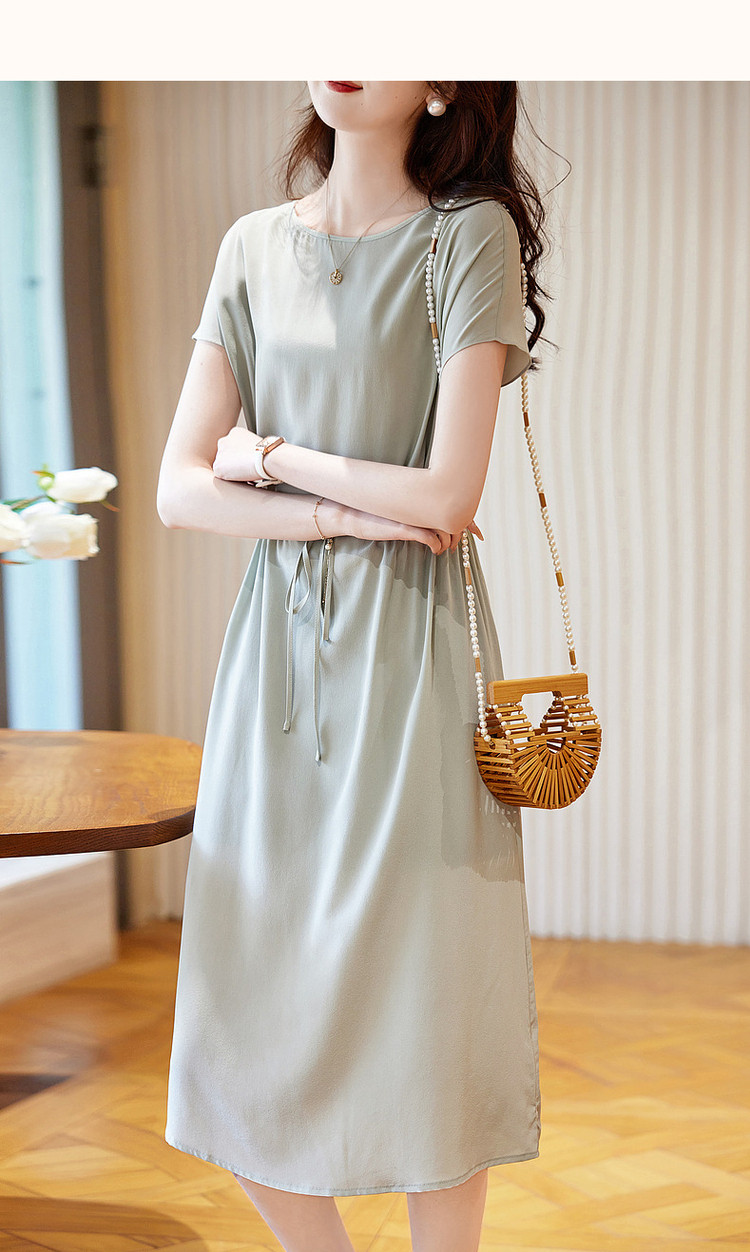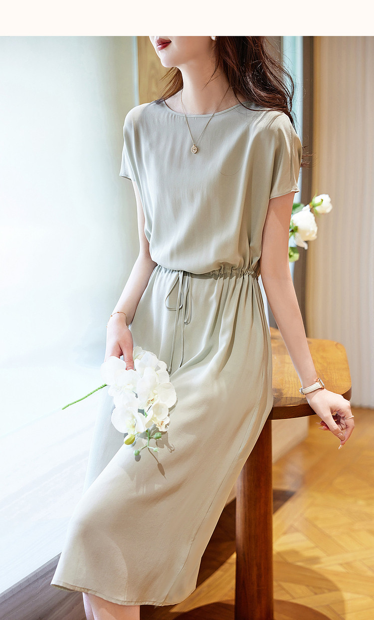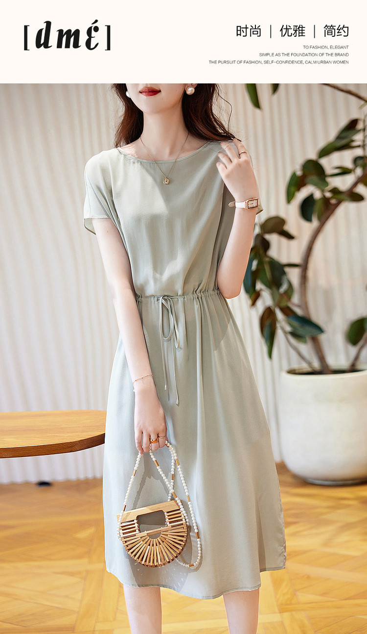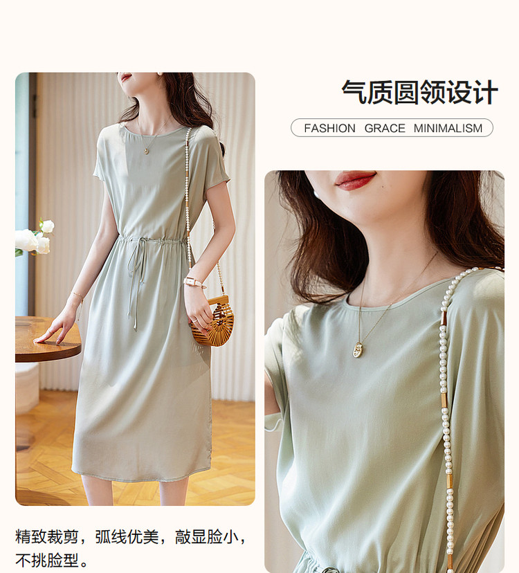商品名称:【步步清风】夏季贵感100桑蚕丝圆领连肩小个子中长女式连衣裙 487745