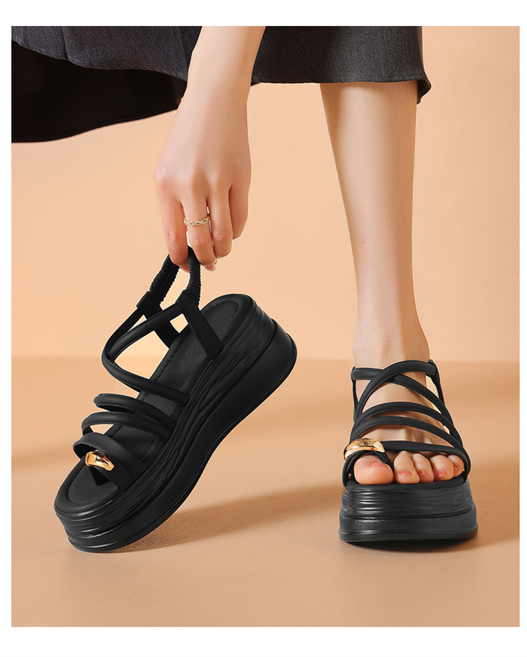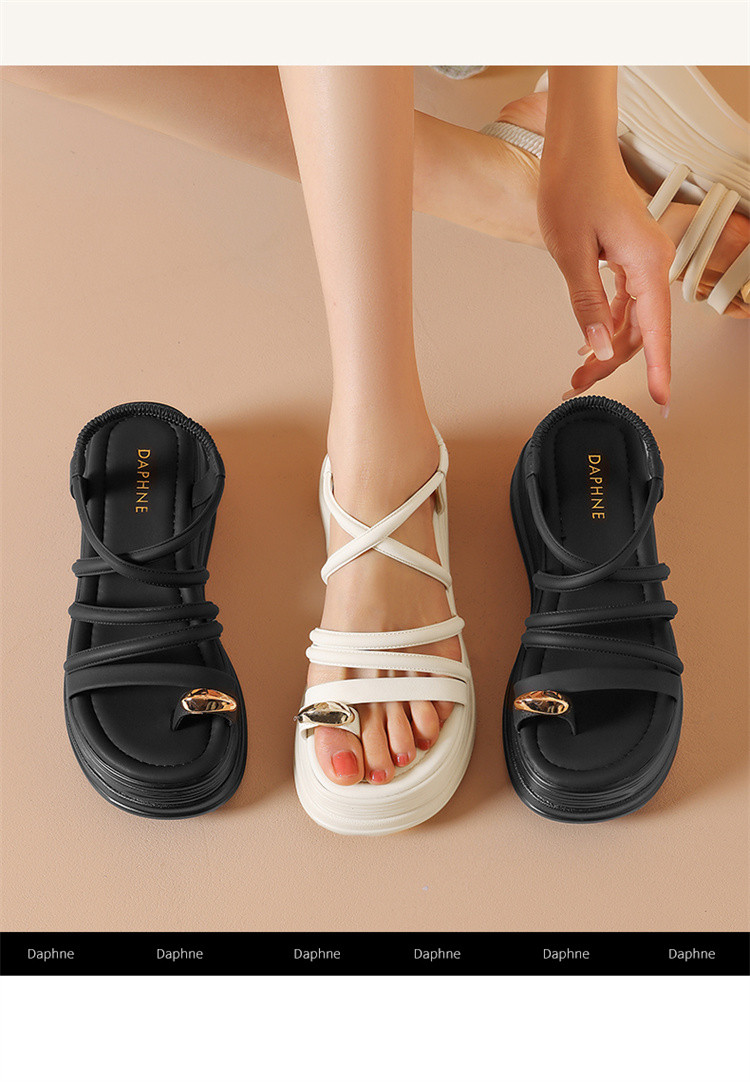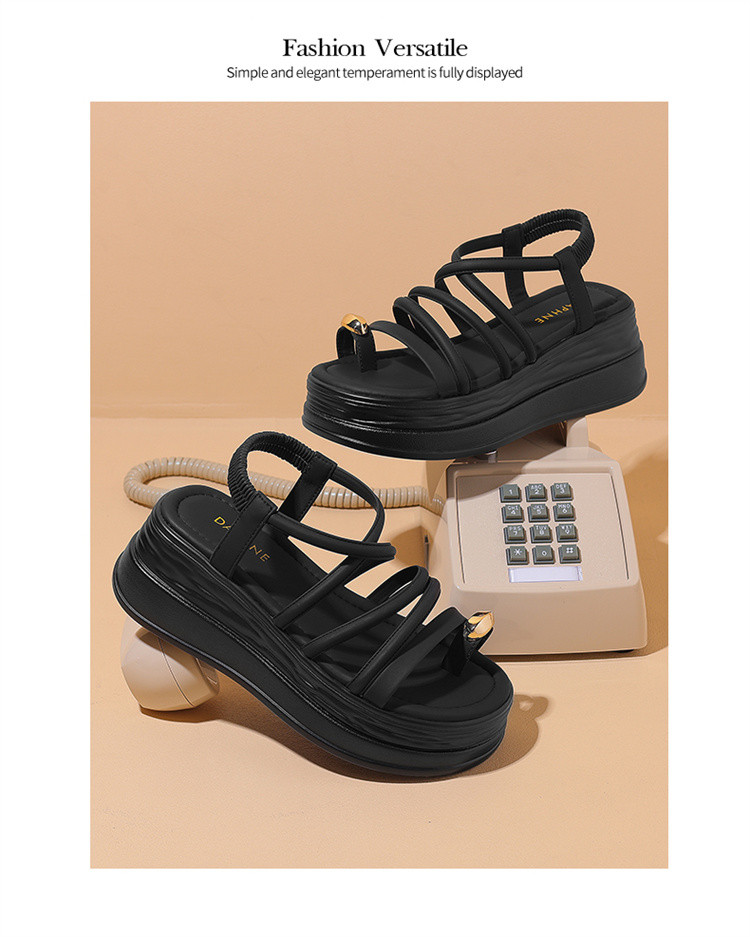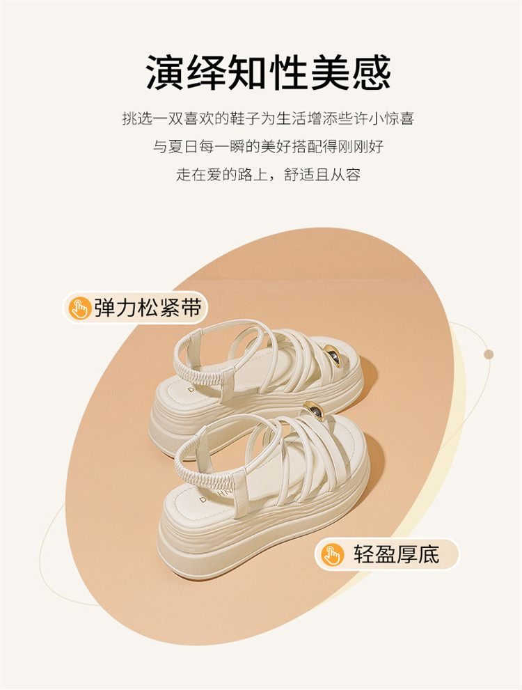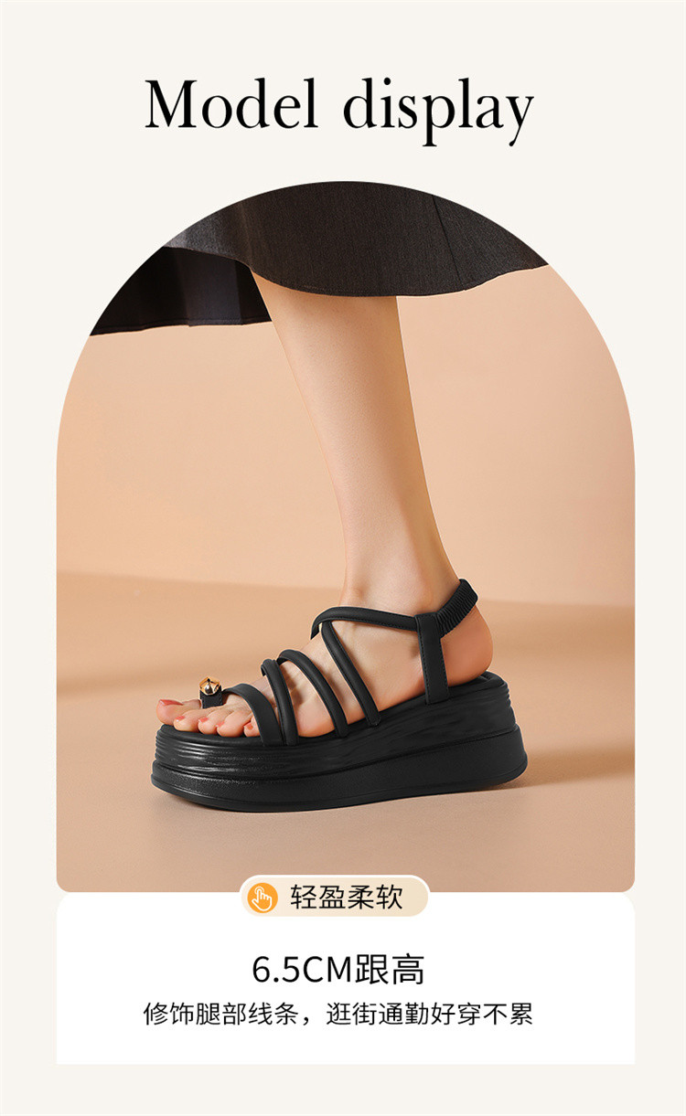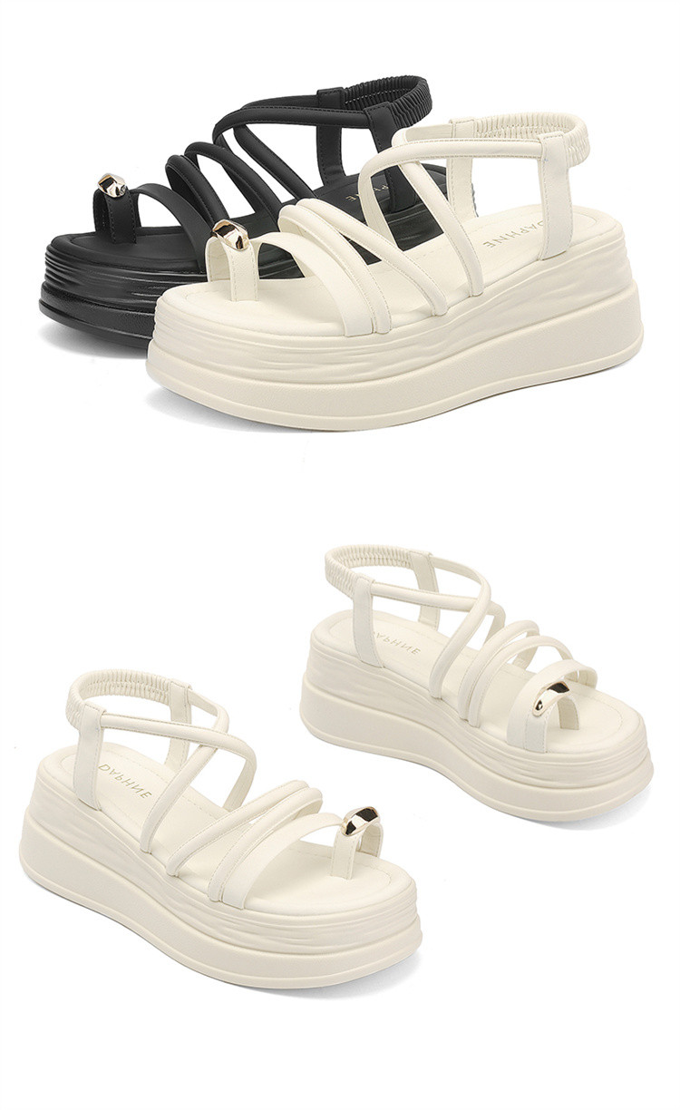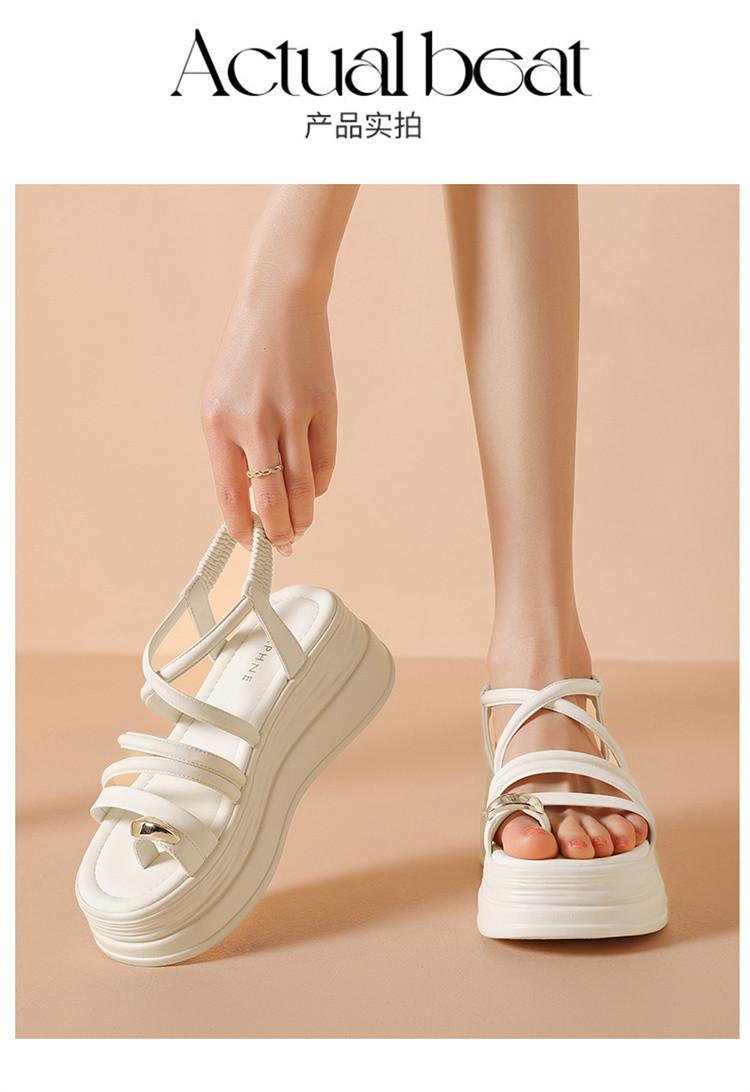 商品名称:夏季一字带凉鞋韩系百搭罗马凉鞋女中空凉鞋厚底增高舒适时装凉鞋 629975